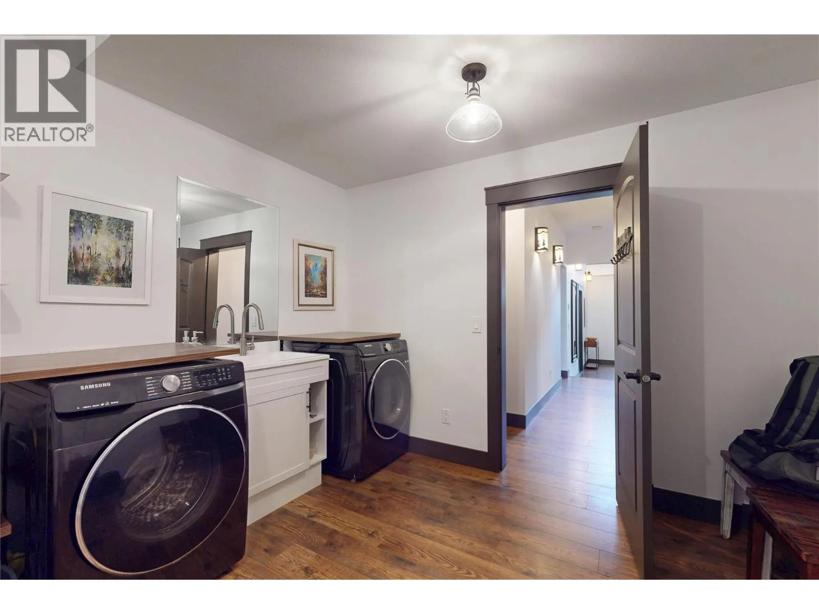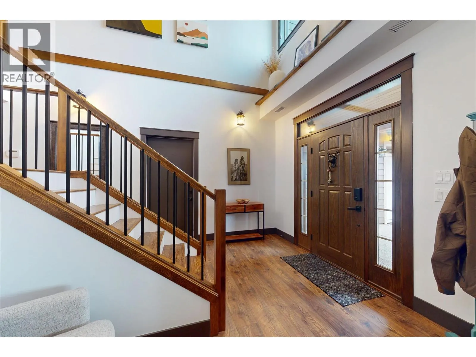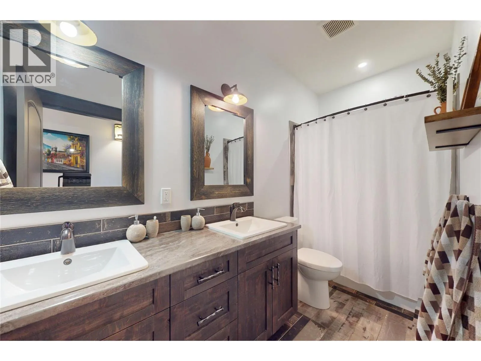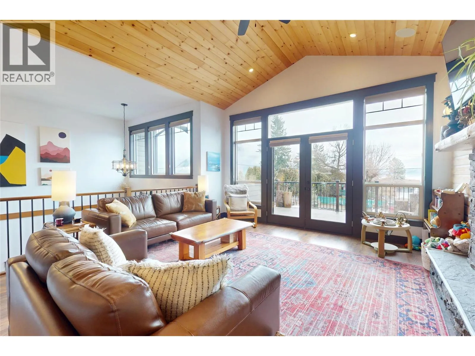 This 2018 custom farmhouse showcases quality craftsmanship and thoughtful design throughout. Warm and inviting, this 4-bedroom, 3-bathroom home offers 3,089 sq. ft. of beautifully finished living space. The open-concept main level is ideal for family living and entertaining, featuring vaulted ceilings, a stunning rock-faced gas fireplace, and oversized windows that frame spectacular mountain views. Step outside to the expansive front patio to take it all in. The gourmet kitchen is a showstopper with custom ceiling-height walnut cabinetry, gas range, cherry wood countertops, a live-edge island, farmhouse sink, and pantry. The spacious primary bedroom features vaulted ceilings, in-floor heating, and a luxurious ensuite complete with a soaker tub, Italian-tiled shower, double vanity, and large walk-in closet. The lower level offers a cozy family room with gas fireplace, an impressive âman caveâ with a 10-foot live-edge bar, and a generous laundry/hobby room. Outdoors, enjoy a fully fenced, private backyard designed for entertainingâcovered patio with gas BBQ hookup, hot tub pad and wiring, a 20â x 10â shop, plus mature cherry and plum trees. Additional highlights include alley access with carriage home potential, an oversized heated double garage with space for toys, RV parking, and a driveway accommodating up to six vehicles. Premium upgrades include an air purifier, saltwater softener, full water filtration system, and Navien hot water on demand. (id:27476)