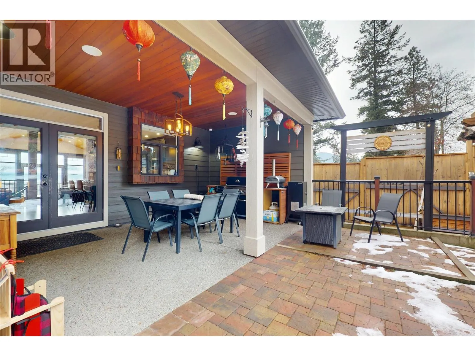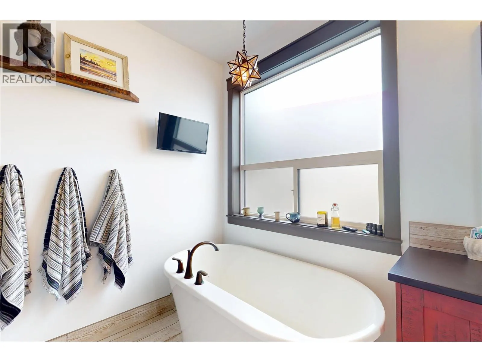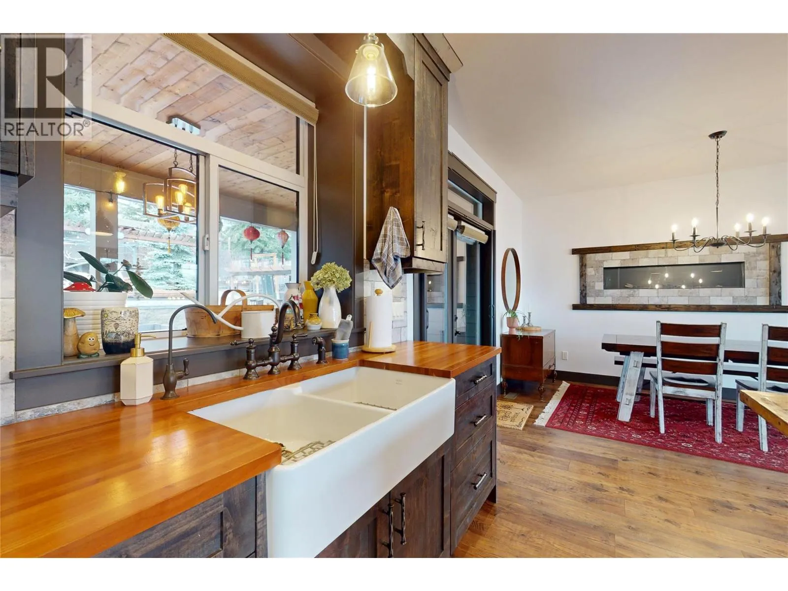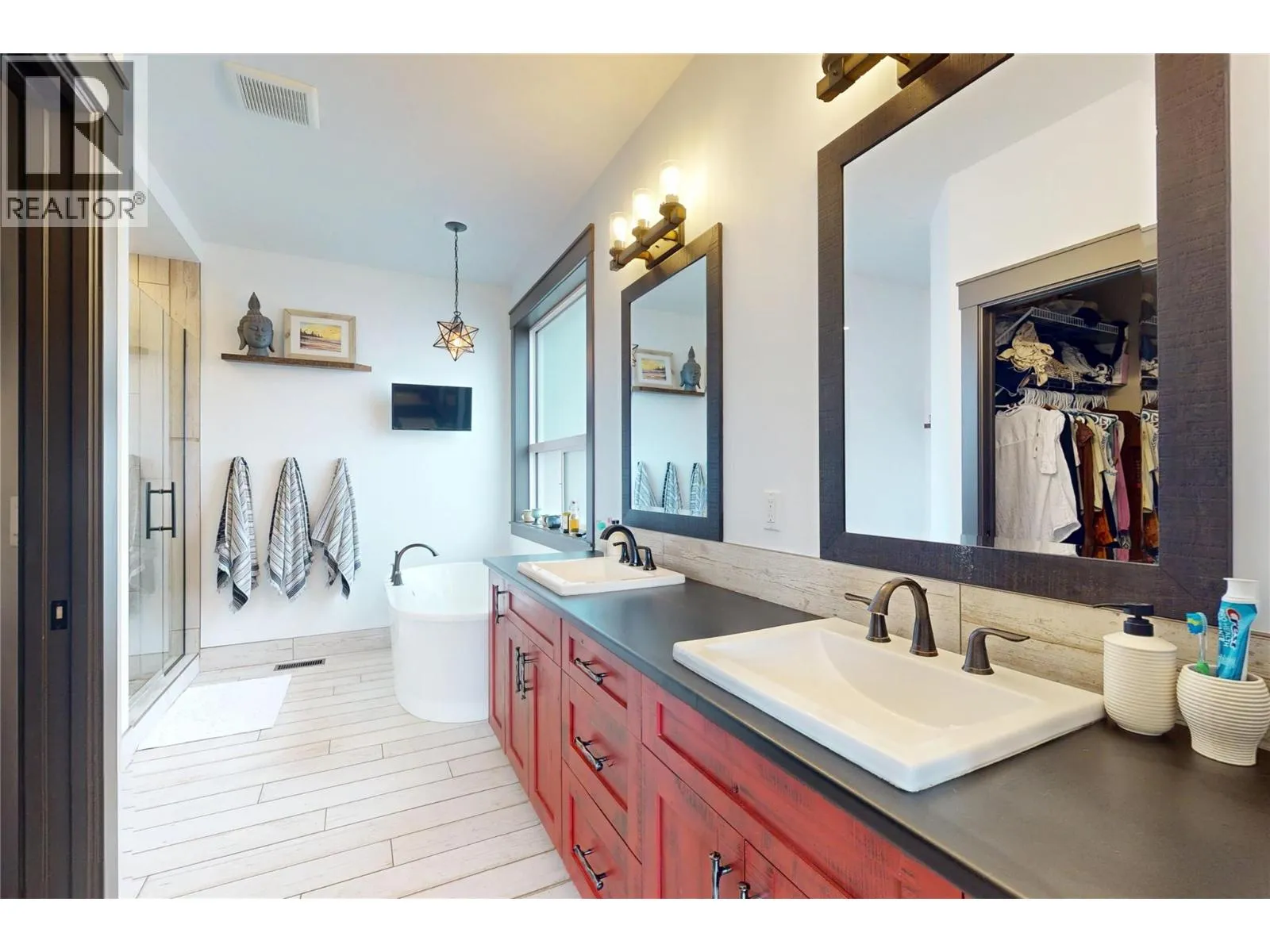 This 2018 custom farmhouse showcases quality craftsmanship and thoughtful design throughout. Warm and inviting, this 4-bedroom, 3-bathroom home offers 3,089 sq. ft. of beautifully finished living space. The open-concept main level is ideal for family living and entertaining, featuring vaulted ceilings, a stunning rock-faced gas fireplace, and oversized windows that frame spectacular mountain views. Step outside to the expansive front patio to take it all in. The gourmet kitchen is a showstopper with custom ceiling-height walnut cabinetry, gas range, cherry wood countertops, a live-edge island, farmhouse sink, and pantry. The spacious primary bedroom features vaulted ceilings, in-floor heating, and a luxurious ensuite complete with a soaker tub, Italian-tiled shower, double vanity, and large walk-in closet. The lower level offers a cozy family room with gas fireplace, an impressive âman caveâ with a 10-foot live-edge bar, and a generous laundry/hobby room. Outdoors, enjoy a fully fenced, private backyard designed for entertainingâcovered patio with gas BBQ hookup, hot tub pad and wiring, a 20â x 10â shop, plus mature cherry and plum trees. Additional highlights include alley access with carriage home potential, an oversized heated double garage with space for toys, RV parking, and a driveway accommodating up to six vehicles. Premium upgrades include an air purifier, saltwater softener, full water filtration system, and Navien hot water on demand. (id:27476)