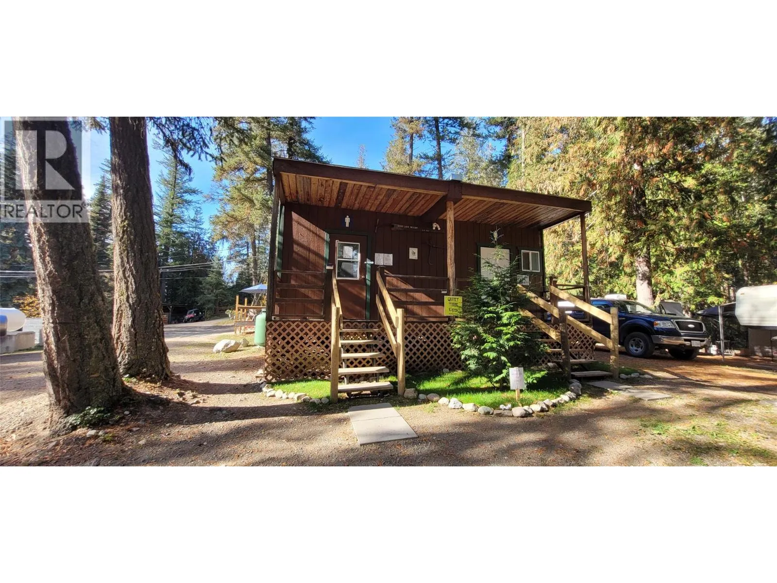 Set along 2,300 feet of pristine shoreline within Echo Lake Provincial Park, this 7.41-acre leasehold resort rests on the clear, spring fed waters of Echo Lake, framed by mature cedar and fir and the dramatic Monashee Mountains. Located 40 to 45 minutes southeast of Vernon via Lumby, the resort operates May through Thanksgiving under a renewable Park Use Permit. Improvements include 9 rental cabins, 7 of which are true lakefront with private docks, 10 serviced seasonal RV sites generating consistent annual income, 17 additional camping sites, a central wash house, store and office, dedicated shop with treated well water system, and a renovated 3-bedroom, 2-bathroom ownerâs residence suitable for full time living. Echo Lake is widely recognized for its strong rainbow trout, kokanee, and lake trout fishery, supported by annual stocking, with trophy class fish landed each season. Guests enjoy on site boat rentals, a gradual walk-in shoreline, and sweeping sunset views from private cabin decks. With loyal repeat clientele, established seasonal revenue streams, and identified areas for future expansion subject to approvals, this is a rare opportunity to step into a proven Okanagan lakefront operation in an extraordinary natural setting. **DO NOT attempt to view the resort without the presence of an agent scheduled ahead of time** (id:27476)