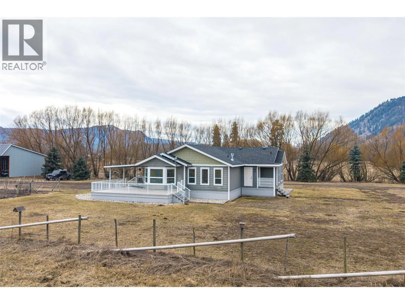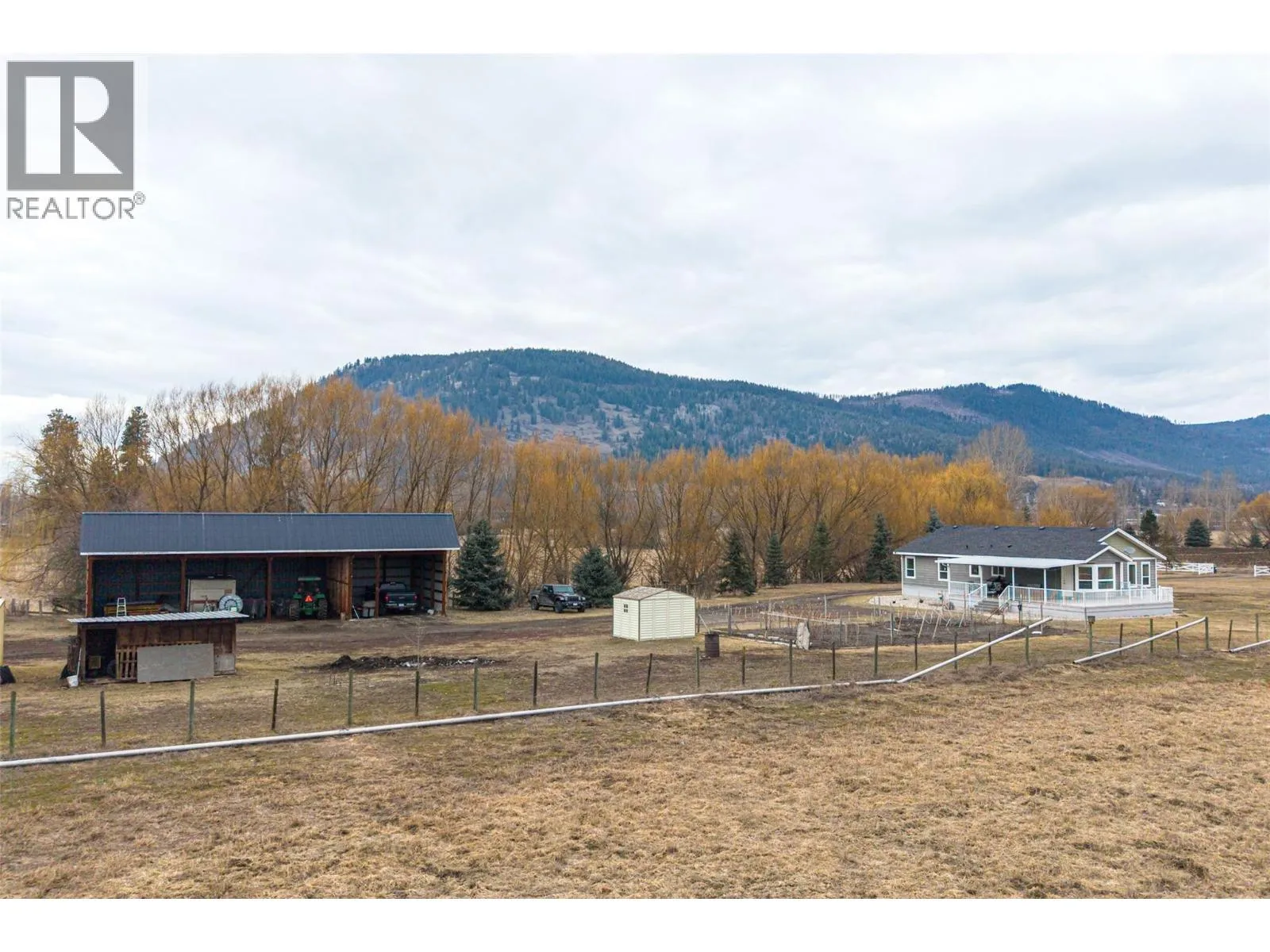 Great little farm property, 21.2 fertile acres with 3 bed/2 bath well kept modular home. Land is all level with approximately 17 acres used for hay production. Level living home has a large country kitchen open to the living and dining rooms. The primary bedroom offers a full, 4 pce. ensuite bath. There are 2 additional bedrooms with ample space and another full bath. Enjoy those summer BBQ's under the 12'x36' covered deck overlooking the farm. Outbuildings include a 26' x 62' Machine Shed and 31' x 64' Hayshed. Water is supplied by 2 excellent drilled wells, house well indicating 20 GPM and farm well indicating 90 GPM powered by solar panels. Private rural location on a no-through road, with a quick 5 minute drive into Lumby. (id:27476)