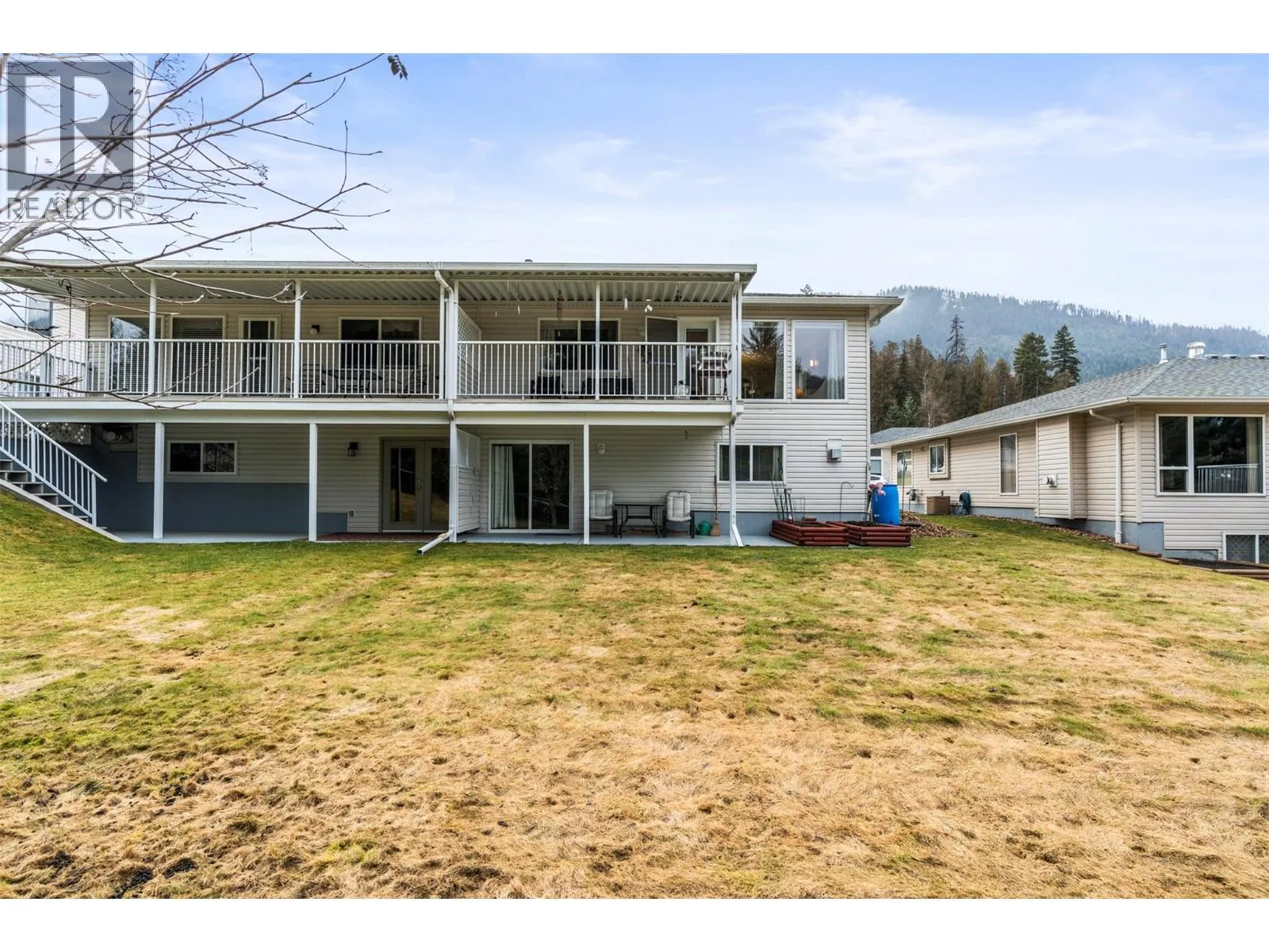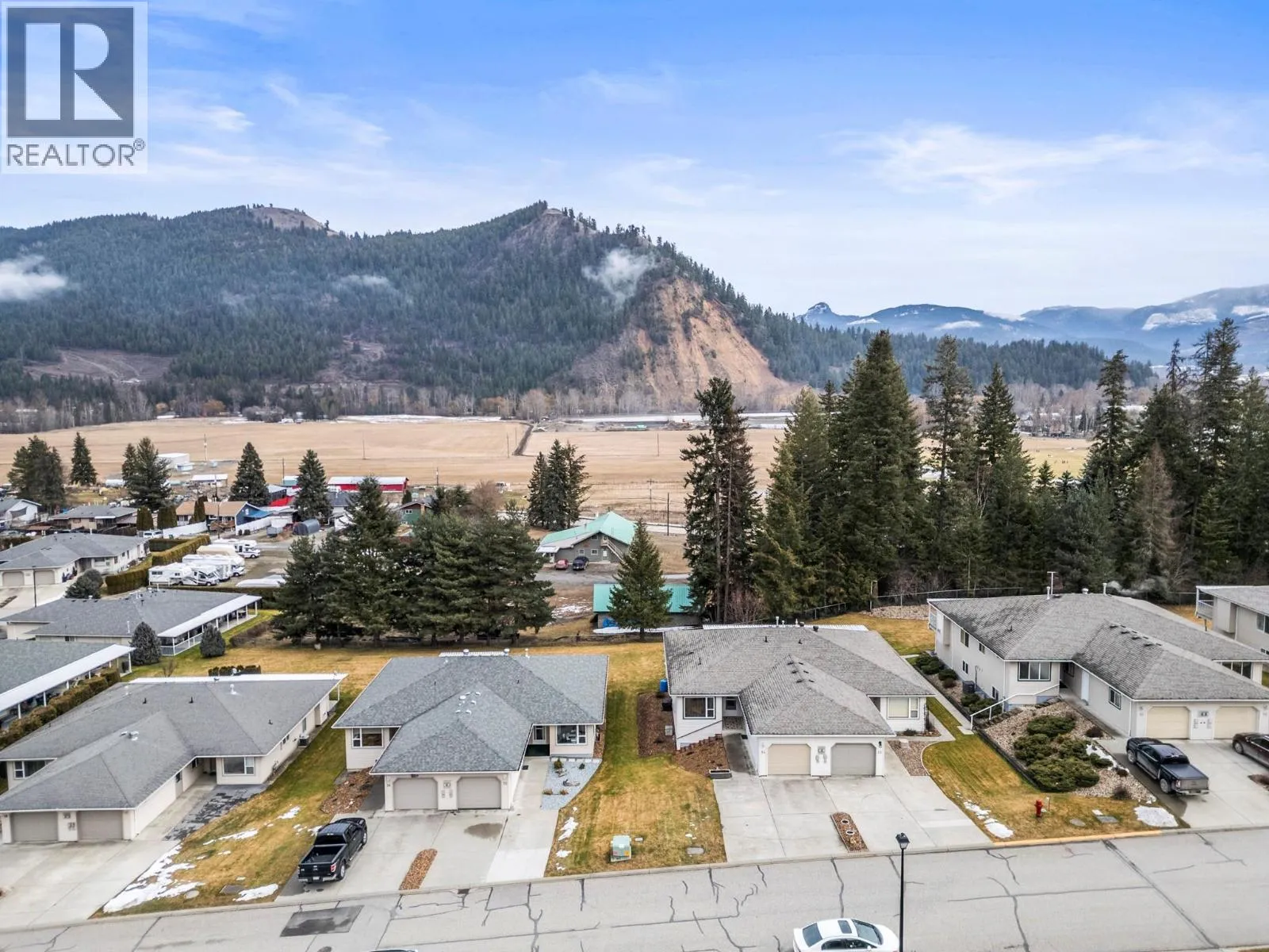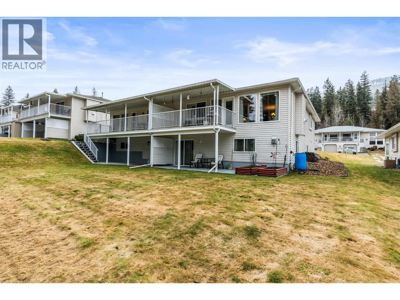 Welcome to The Villas â retirement living at its finest in a quiet, park-like setting. Pet-friendly and welcoming, the strata allows 2 dogs, 2 cats, or one of each, so your four-legged companions can feel right at home too. From the moment you enter the complex, youâll notice the meticulously maintained grounds and the pride of ownership that defines this peaceful community. This beautifully cared-for home offers comfort, functionality, and scenic views in every season. The bright kitchen features generous cupboard space and a cozy eat-in area â the perfect spot to start your day. While doing the dishes, you may even catch the unique sight of paragliders launching from nearby Cooperâs Launch. The spacious living room opens onto a covered upper deck, ideal for morning coffee or year-round relaxation while taking in stunning mountain and valley views. The main floor includes a large primary bedroom, a convenient home office(just add a murphy/sofa bed for the guests) with main-floor laundry, and a full bathroom â allowing for easy single-level living. Downstairs, the fully finished lower level offers a second oversized bedroom, an additional full bathroom, sliding glass doors to a covered patio, and a dedicated workshop area perfect for hobbies, projects, or extra storage. Outside, enjoy your own small raised garden bed surrounded by green space that provides privacy and a serene backdrop. Inside, two cozy gas fireplaces add warmth and ambiance, while abundant storage ensures everything has its place. A rare and valuable bonus in this complex is direct access to the garage from inside the home, along with an exterior man door. With low monthly strata fees and a quiet, well-maintained community, this is an exceptional opportunity to enjoy comfortable, carefree retirement living at The Villas. (id:27476)