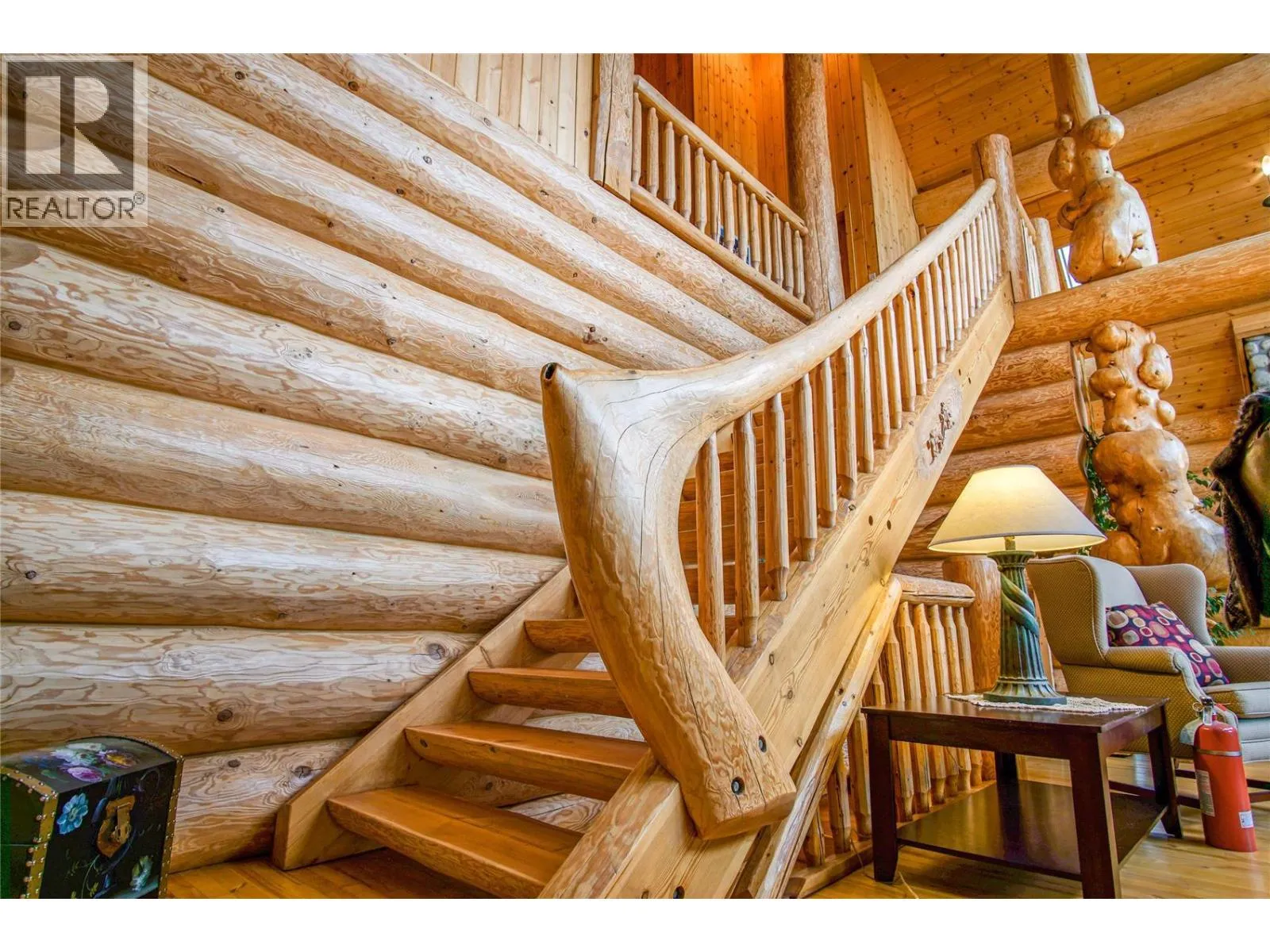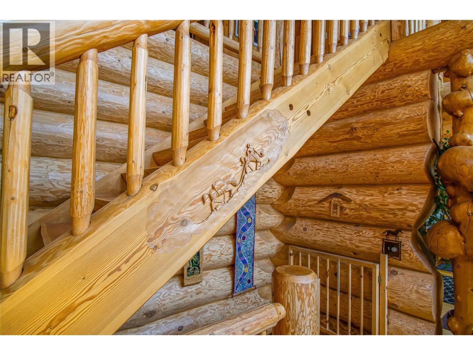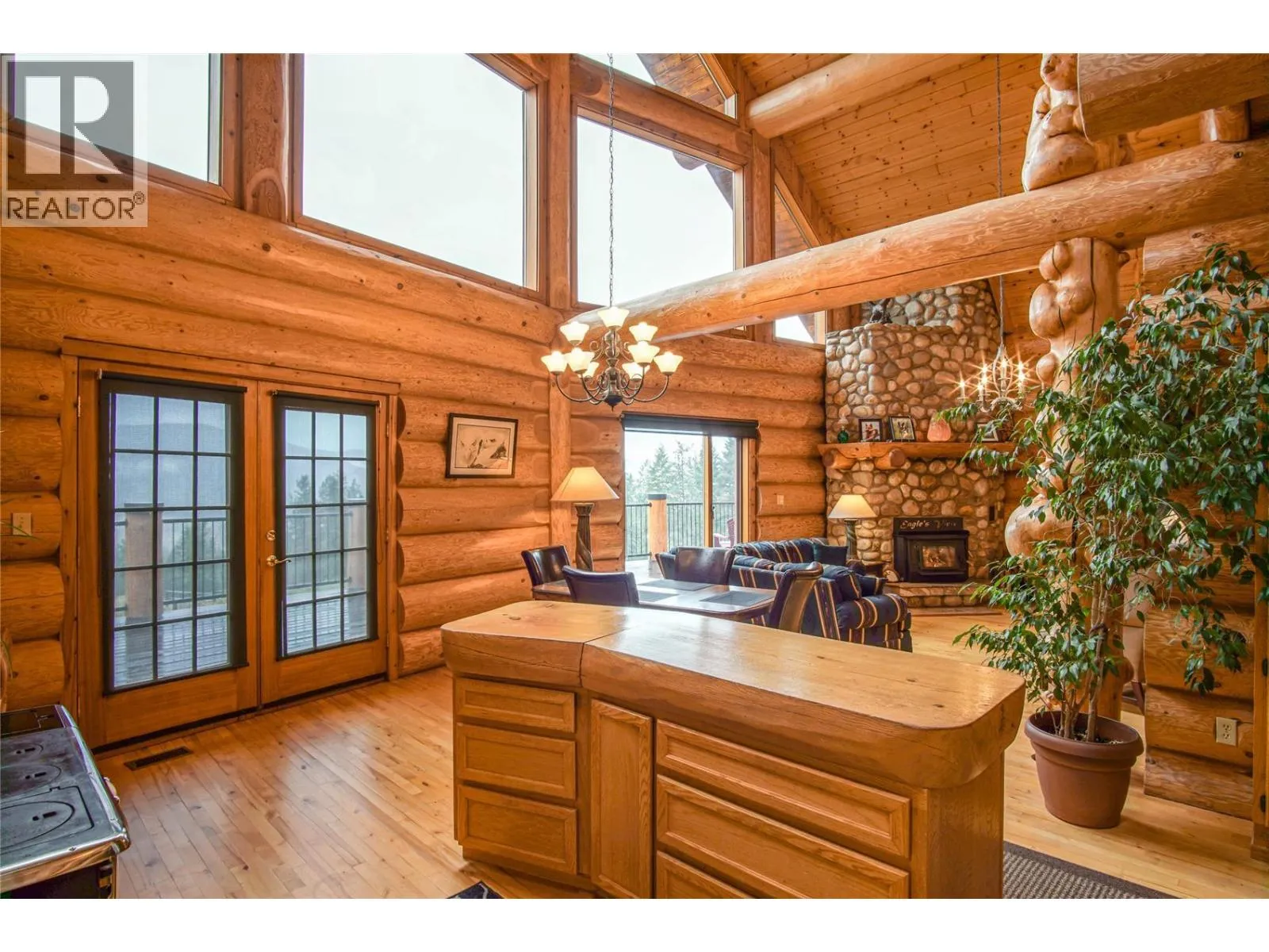 Former show home for Monashee Azekura Ltd, this hand-crafted log home boasts an entirely custom interior with a show stopping view of the Coldstream Valley showcased in its floor to ceiling windows. Positioned on 4.9 gated, fenced, and cross fenced acres, this park-like property offers privacy and opportunity for livestock with a detached garage/shop and multiple outbuildings. Inside, a spectacular open-concept layoutspans the majority of the main floor with endless views and access to the lovely wrap-around deck for al fresco dining. The kitchen contains stainless steel appliances, a log countertop island, and handsome Elmira wood-burning cook stove with stone chimney, in the adjacent living area an impressive river rock masonry corner fireplace adds warmth and ambiance. Beautiful pine feature posts and spruce purlins span theentire area. Also on the main floor, the master bedroom grants patio access, and an ensuite bathroom with antique claw foot bathtub. Upstairs, a large open space family room awaits, along with a second bedroom and bathroom. Below the main floor, a fully finished basement contains a second family room, third bedroom & 3 piece bathroom. This home also features Telus high speed fibre optic internet. Outside, an authentic stone circle awaits with fire-pit and horseshoe pits, as well as a 3-bay horse shelter with watering station and pastures, small animal buildings with pens, a utility shelter and a 30â x 44â garage with upstairs potential expansion. (id:27476)