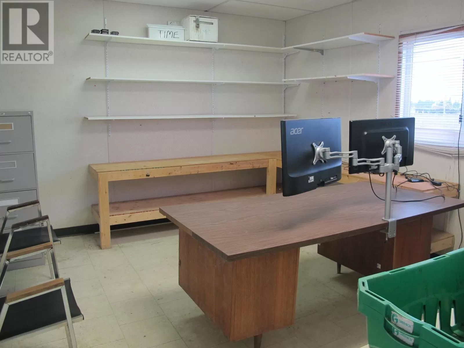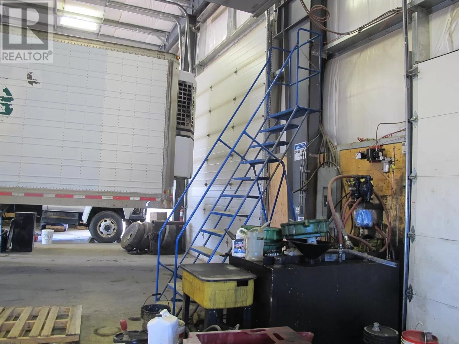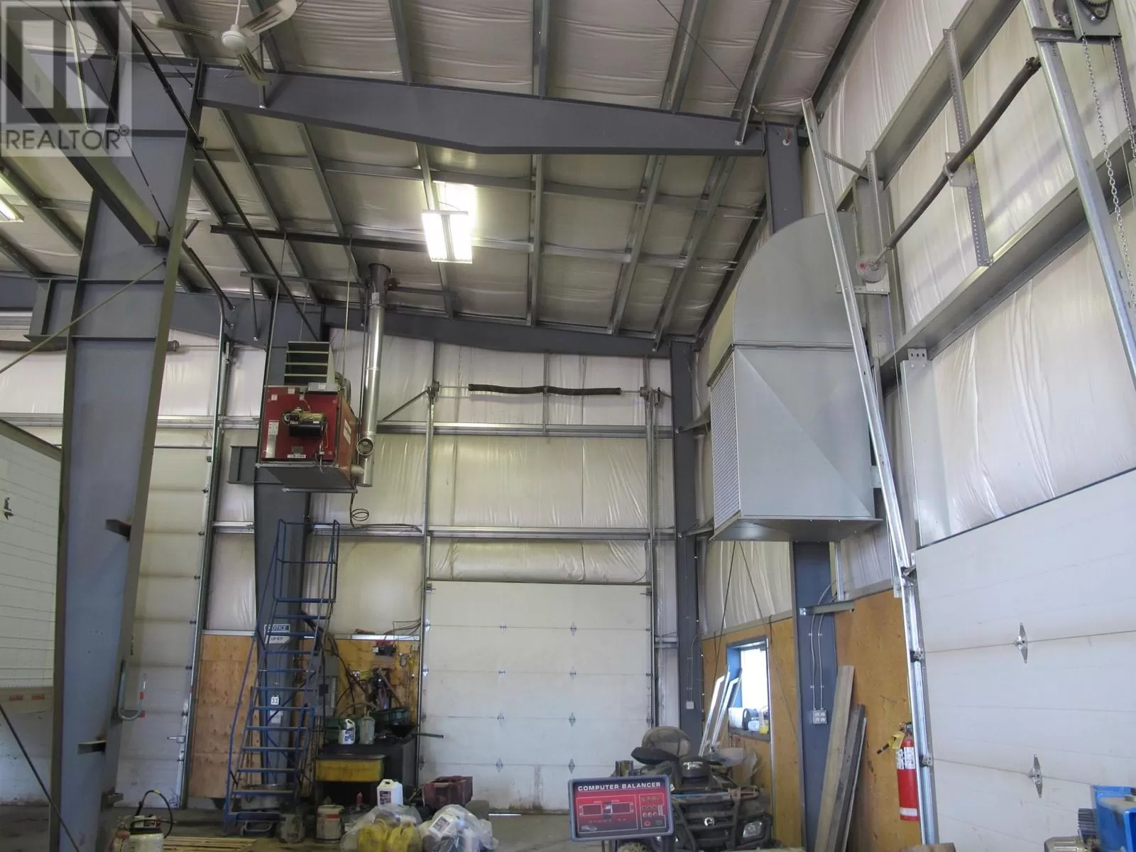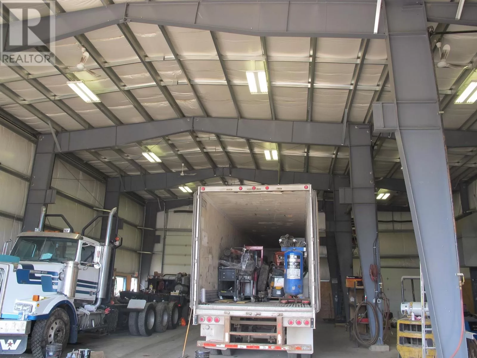 Construction completed 2015. 60 X 80 steel frame engineered shop and mezzanine. Two overhead doors approx. 20' high and 12' wide (logging truck assessable) and man door access. Concrete floor. Oil fired radiant heat. Wired and all doors insulated. 10 X 40 mobile on site for office use (with propane furnace). Outside wiring for all trucks for winter plug ins. Septic field and drilled well. Storage container. Central location in the industrial area with paved road access to mills. 10.67 acres, chain link fenced and gated. (id:27476)