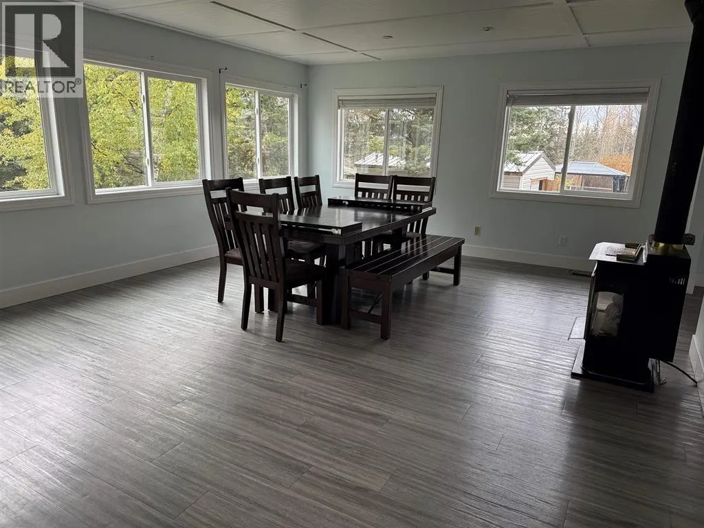 Three level split with large greenspace back yard, short walk to Morfee Lake. Main features large living room with n/gas fireplace, open concept kitchen adjacent to large eating/family room addition with another gas fireplace. Access to yard. Three bedrooms up, full bath. Down with 3pc bath and large bedroom plus laundry room. Updated windows, siding, roof approx. 2019. Single carport plus detached shop. Offers subject to Court approval. (id:27476)