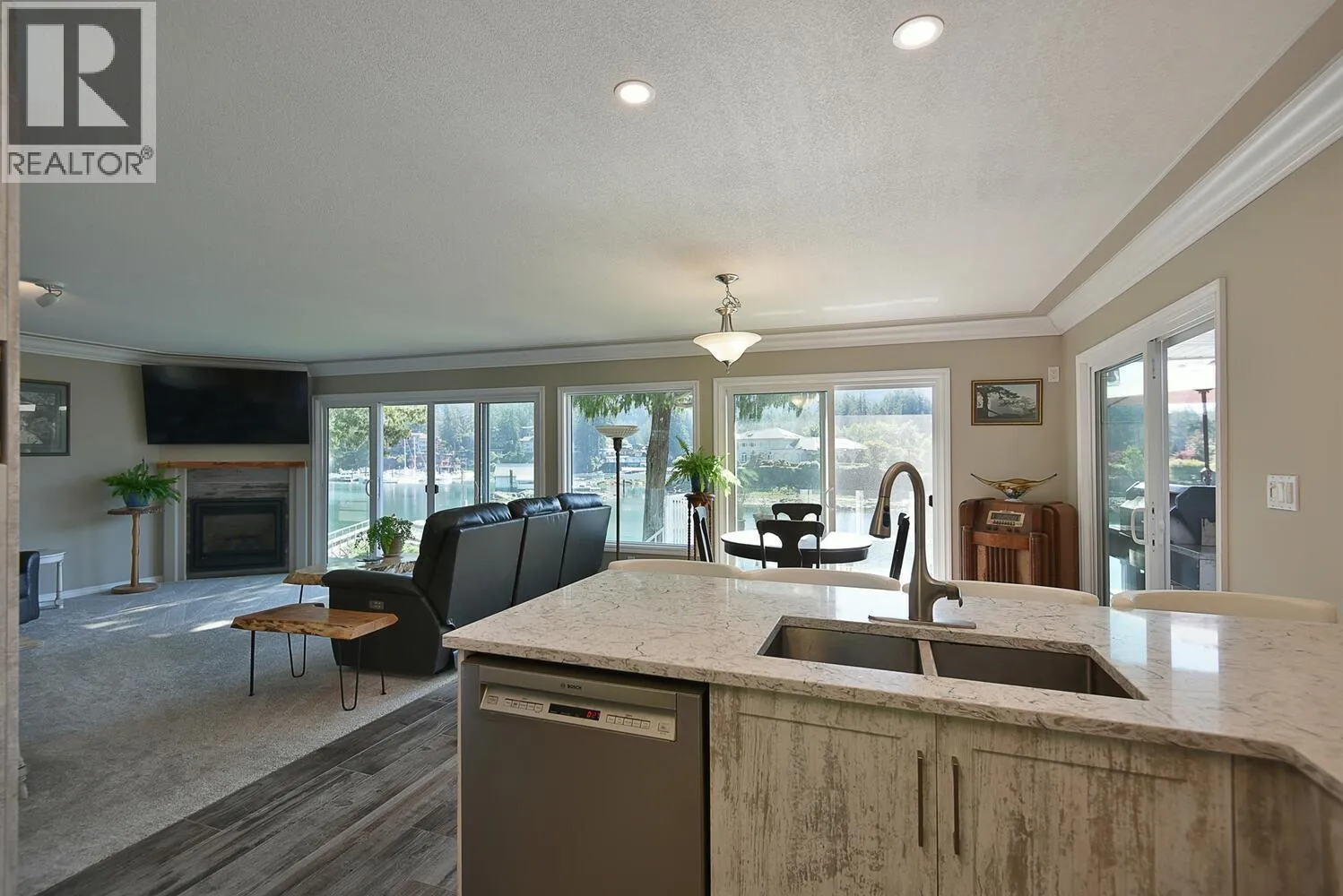 WOW! The perfect waterfront retreat! This low-bank waterfront rancher with a walkout basement sits on a 19,000+ sq. ft. lot with a private dock and boathouse. The main level offers two bedrooms, an open living & dining area with new windows to capture stunning views, and a modern kitchen with Bosch & Fisher Paykel appliances, updated cabinets, flooring, and more. Step onto the covered sun porch or expansive back deck to enjoy the serene setting. The walkout basement features a summer kitchen, dining, 3rd bedroom, bath, and plenty of storage. Plus, an impressive 1,000+ sq. ft. workshop/3-car garage with 200-amp service. Updates include a metal roof, A/C, heat pump, new propane tanks, new h/w tank and 2019 septic. A must-see! Nothing to do but to move in. (id:27476)