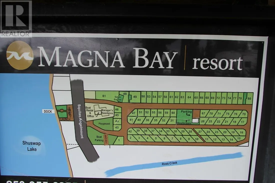 The time is right to get your own little piece of The Shuswap in Magna Bay Resort. This resort offers you an amazing opportunity to life your best life on The Shuswap. Fully serviced RV lot with lake access just across the street. This resort offers the convenience of being able to launch your boat daily and store it when not in use right on site. There is a playground for the kids and the resort is pet friendly. Annual dues for 2024 were $1678.52 and taxes were $394.27. As this is an Undivided interest title, traditional financing is not available. Zoning provides for temporary use ( 180 calendar days in a year ). (id:27476)