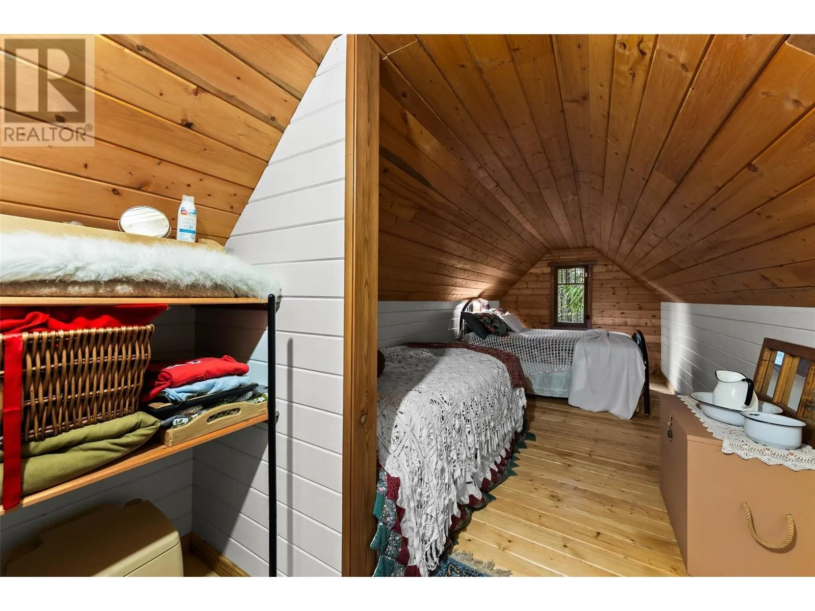 Remarks **6057 Line 17 Rd, Magna Bay** Step back in time and embrace the charm of this 1930s log cabin, perfectly nestled in the peaceful surroundings of Magna Bay. This cozy, off-grid retreat offers 15 x 24 feet of living space with a loft bedroom, combining rustic simplicity with a serene atmosphere. The kitchen is equipped with a nostalgic wood-burning cook stove, a wall of cupboards, plenty of counter space, and an old-fashioned ice box to keep your essentials cool. A second wood stove in the living area provides warmth, creating the perfect spot to curl up with a good book or prepare for your next fishing trip. Water is supplied by a well with a hand pump outside, and the property even includes a delightful, spotless outhouse. Surrounded by towering trees, this private haven is the perfect escape from the hustle and bustle of modern life. Host unforgettable gatherings in the covered outdoor kitchen, complete with plenty of room for RV parking and family reunions. Situated on nearly 5 acres, the property offers ample space for outdoor activities and the potential to build your dream home with lake views. Conveniently located on a paved road for year-round access, this cabin is a gateway to tranquil mornings with the sound of birdsong and afternoons spent exploring nature. Shuswap Lake fun and fishing is steps away and Sledding up Crowfoot Mountain is mins away! If you're looking for privacy, charm, and the ultimate escape, this Magna Bay gem is your perfect retreat! (id:27476)