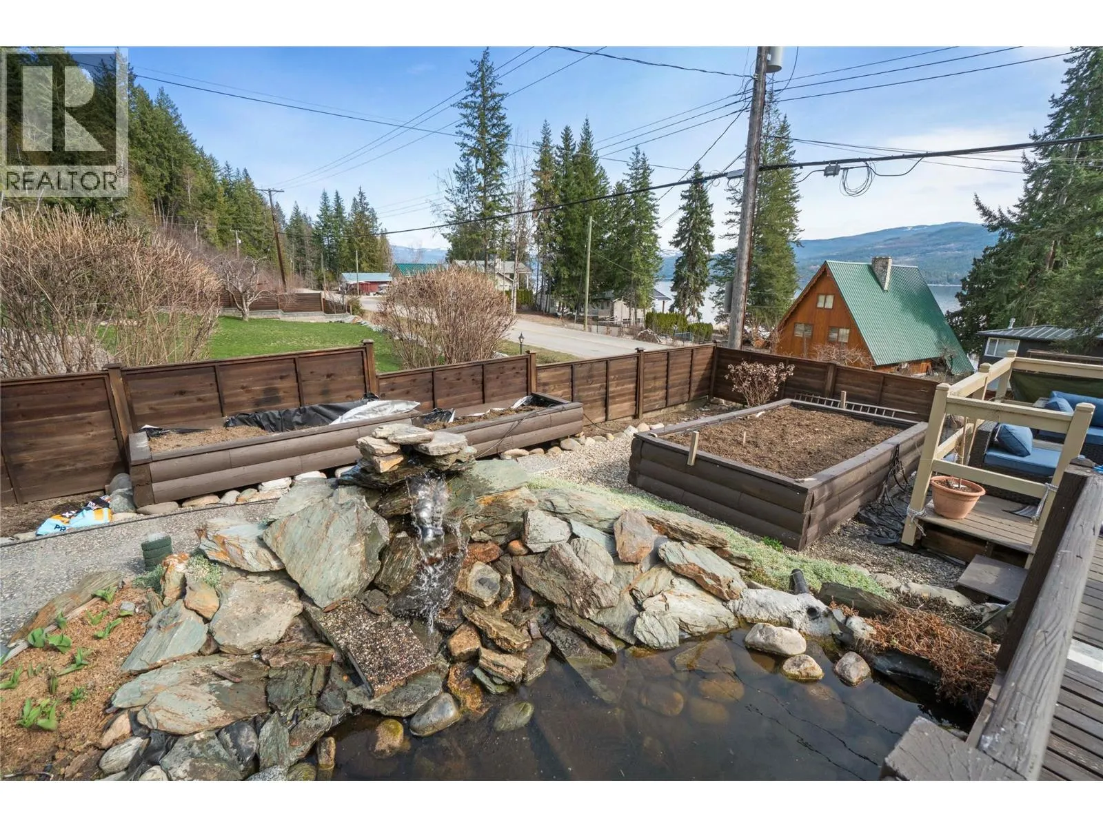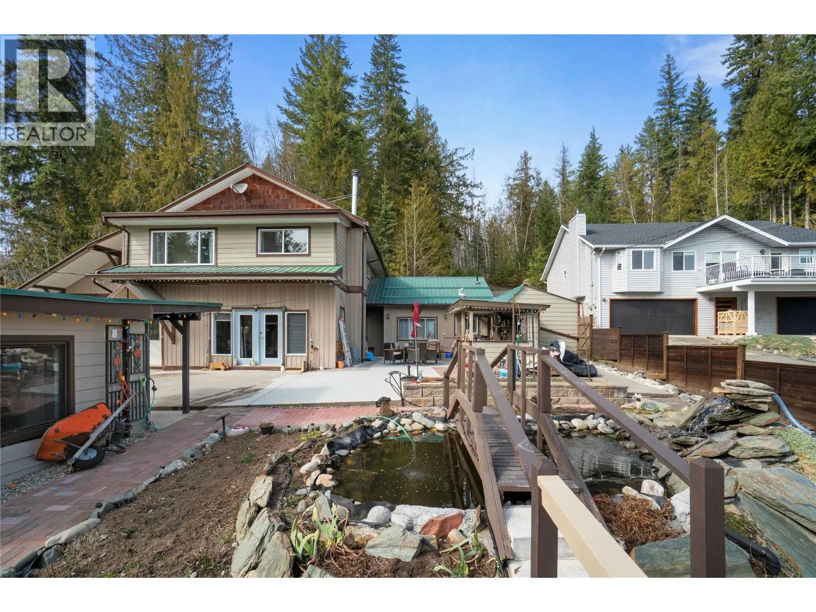 Welcome to Magna Bay! Looking for multi generational living, an investment opportunity or mortgage helper? check this out! Built in 2003 w/oversized garage on a 0.42 sized lot. Spacious 2bdrm/2bth non conforming suite w/views of the Shuswap lake currently renting out at $1650/mth. 1bdrm/1bath open concept down. Property also has a cozy 1bdrm/1bth B & B suite currently not registered but has been renting out for $1000- $1200/mth. Step onto your frontyard oasis, designed for easy living and relaxation. Ideal for morning coffee or evening relaxation. Offering a picturesque landscape with mature flowers, perennials, garden beds, adding aesthetic charm with a rock pond bridge, but it doesn't stop there, also has a 10X14 guesthouse for guests, 2 separate spacious patio areas, patio bar, & a fire pit for all your entertaining needs. Has electric gate for secured entry. Lots of room for parking. Easy access to beach & Shuswap Lake right across the street. Artesian well. No info on Septic from Interior Health. Don't miss out on this opportunity to own a piece of the Shuswap. World class boating, fishing, golf, dining, wining, hiking trails, lakes, marinas, beaches, and so much more. Have list of all the recent upgrades that have been done. Measurements done by Matterport. (id:27476)