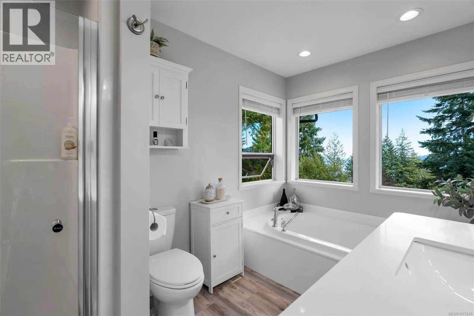 OCEAN VIEW RANCHER WITH HUGE SHOP ON 4.49 ACRES - This property is the complete package! Beautiful 3 bed/3 bath rancher with triple garage on approx 2 acres, overheight detached workshop, covered RV parking, large quonset, and an additional 2.5 acres of peaceful, mostly wooded land with trails and a creek offering the opportunity to build a detached suite (Buyer to verify with CVRD). Recent upgrades include a new roof, new heat pump, new primary ensuite, updated main bath, interior paint, and lovely improvements in the kitchen with newer quartz countertops and appliances. Large windows soak up the ocean views from the kitchen, living room and primary bedroom. Sprawling deck accessed from the dutch door off the kitchen and french doors from the living room and primary. Huge crawlspace offering tons of storage. Detached workshop boasts 14â ceilings, car lifts, plenty of storage, a washroom, and 220 plugs - a dreamy space for a car enthusiast! This property is private and located just minutes to Langford or Mill Bay for convenient shopping, restaurants and marina. A rare find! (id:27476)