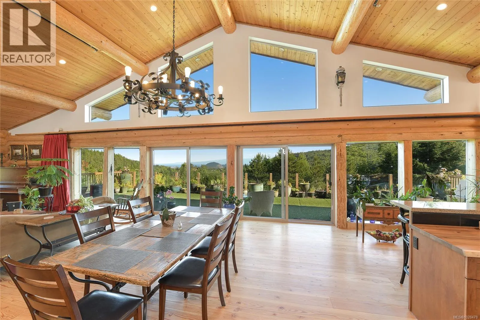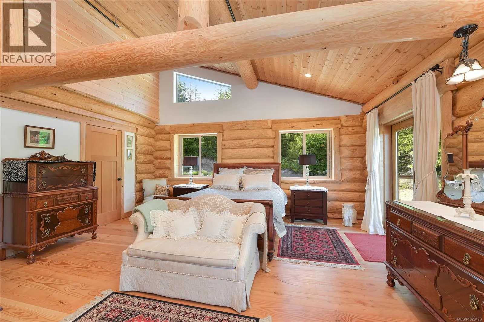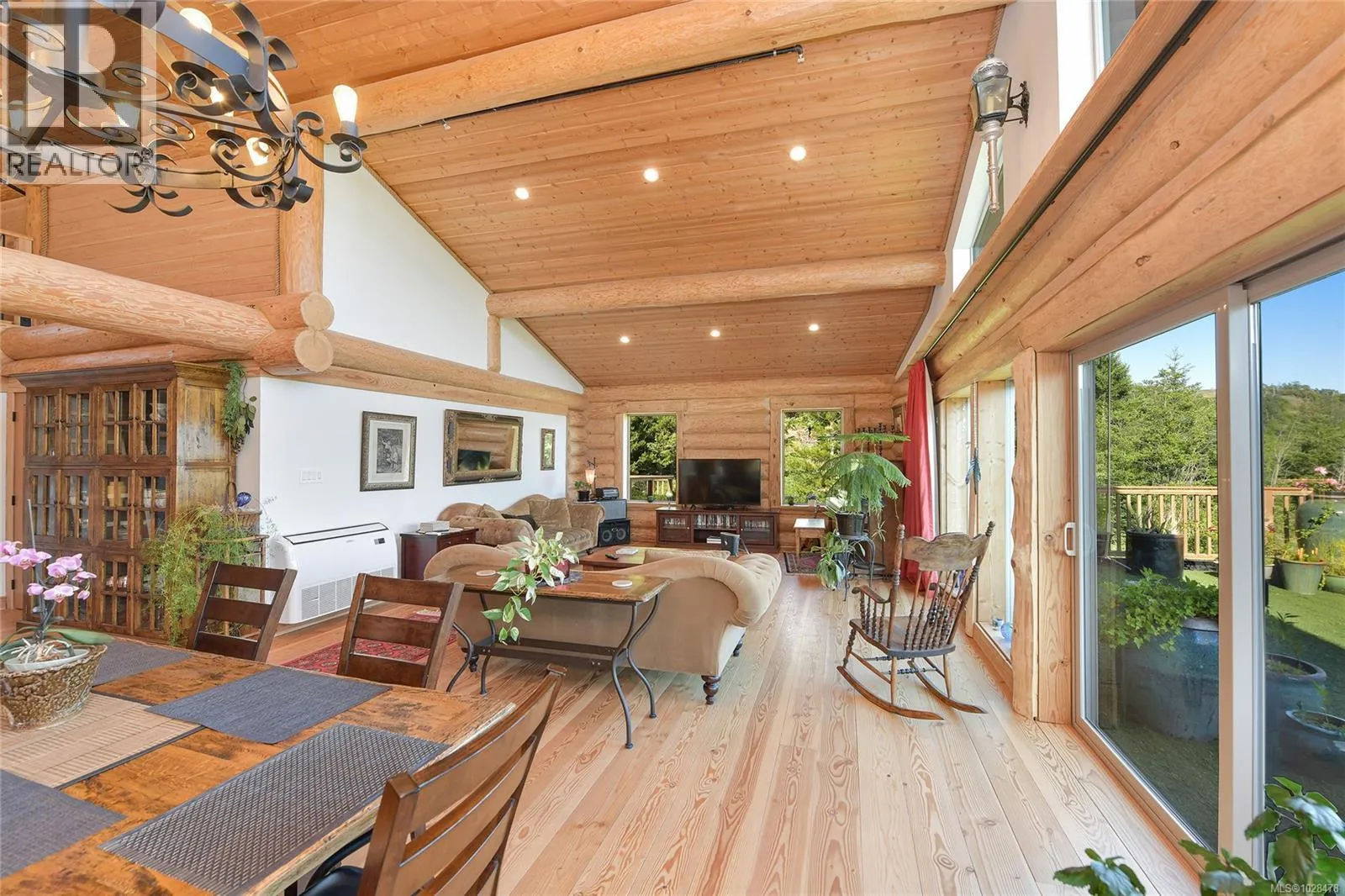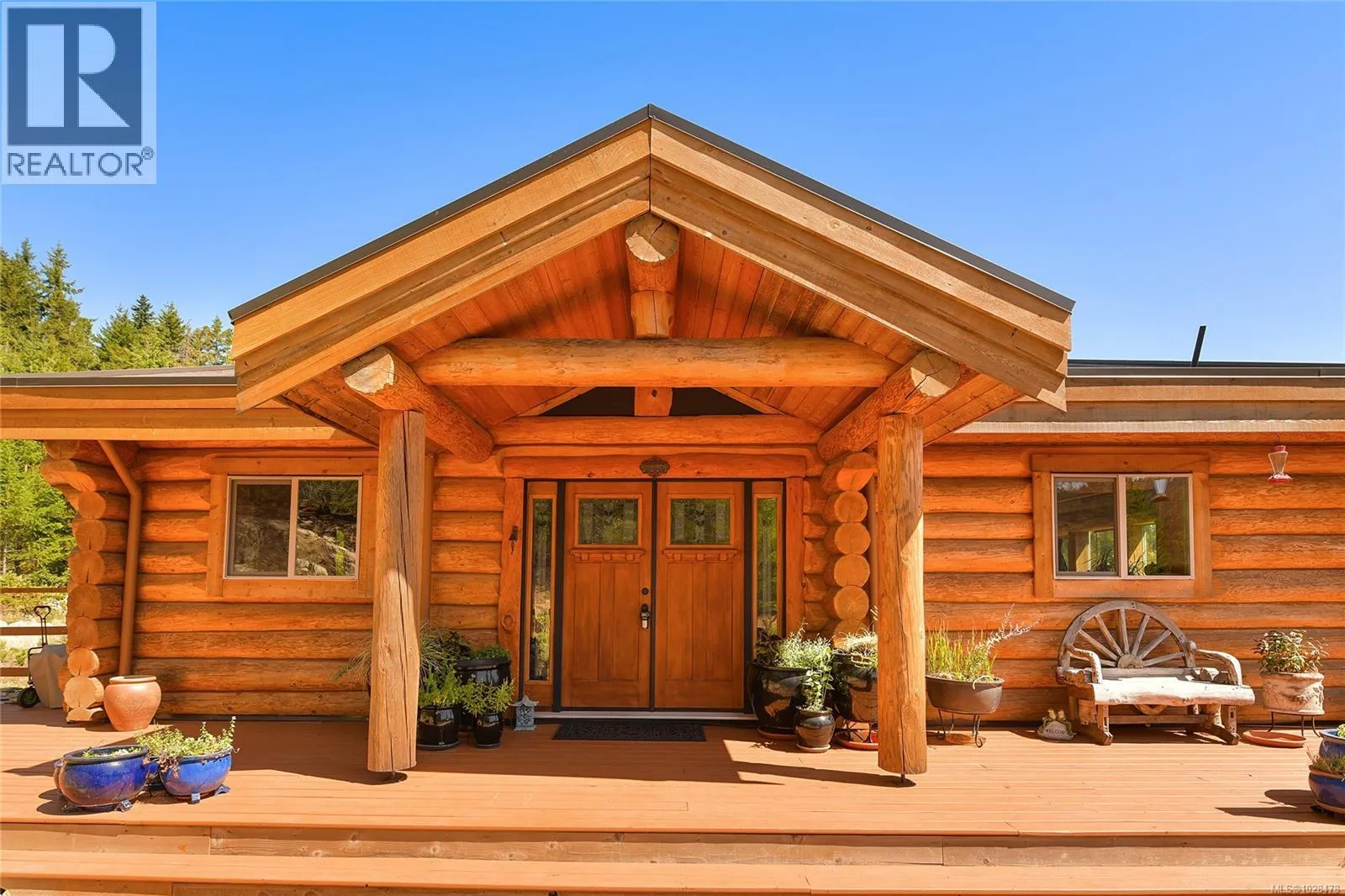 A luxurious log home of exceptional craftsmanship and presence, this dramatic 6.5+ Acre estate is revealed at the end of a long, tree-lined driveway, where grand timber architecture, soaring 17â1'' vaulted ceilings, and sweeping floor-to-ceiling windows showcase the beauty of the West Coast landscape in unforgettable fashion. Sun-drenched open-concept living is elevated by refined finishes, a chefâs kitchen, heated floors, and an impressive wood-burning fireplace, while the private main-level primary suiteâwith its spa-inspired ensuite and deck accessâcaptures golden west-facing light. The lower level extends the luxury with a suite with separate entrance, den/music room and a generous hobby/rec room, all anchored by an expansive 4-car garage and abundant parking. Detached outbuildings and a greenhouse complete this rare, resort-like sanctuary where privacy, elegance, and natural grandeur come together in a truly remarkable offering. (id:27476)