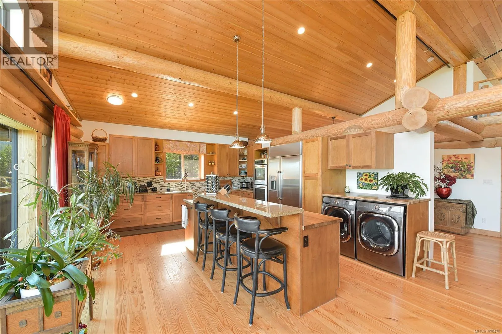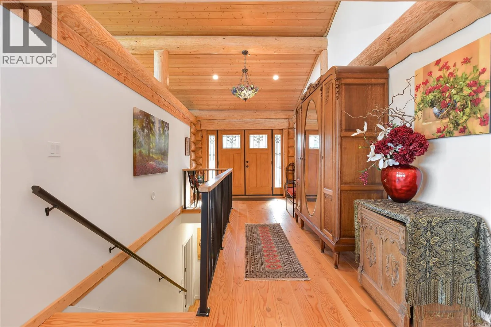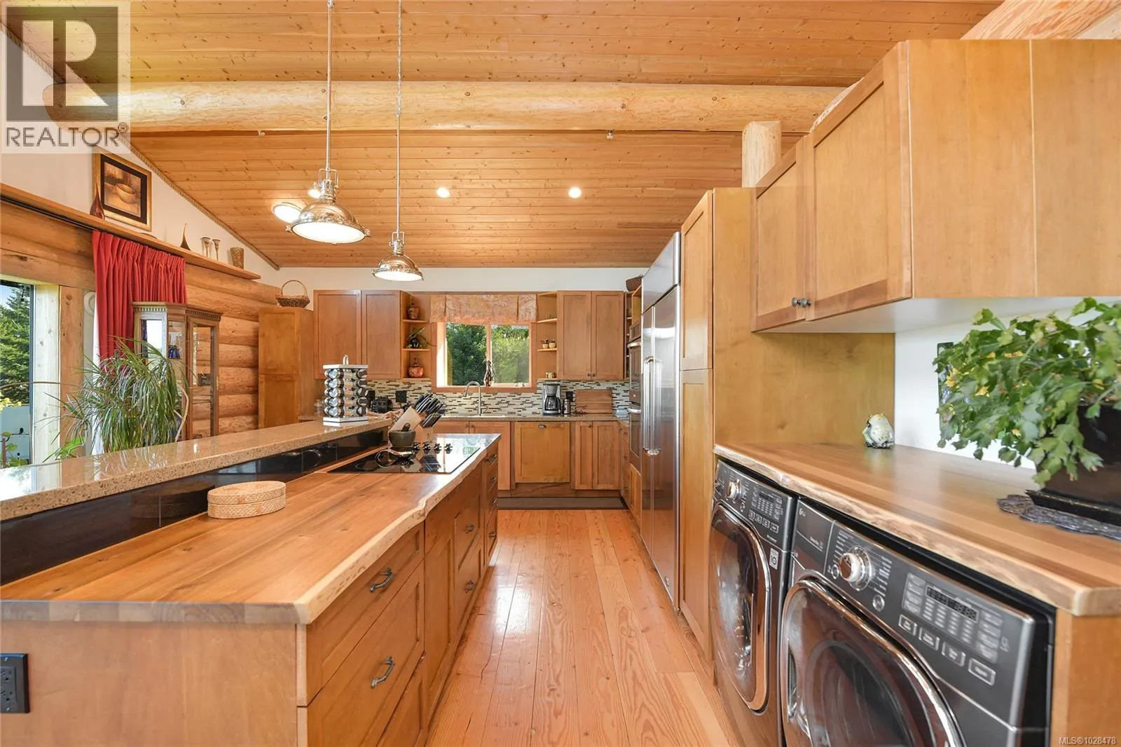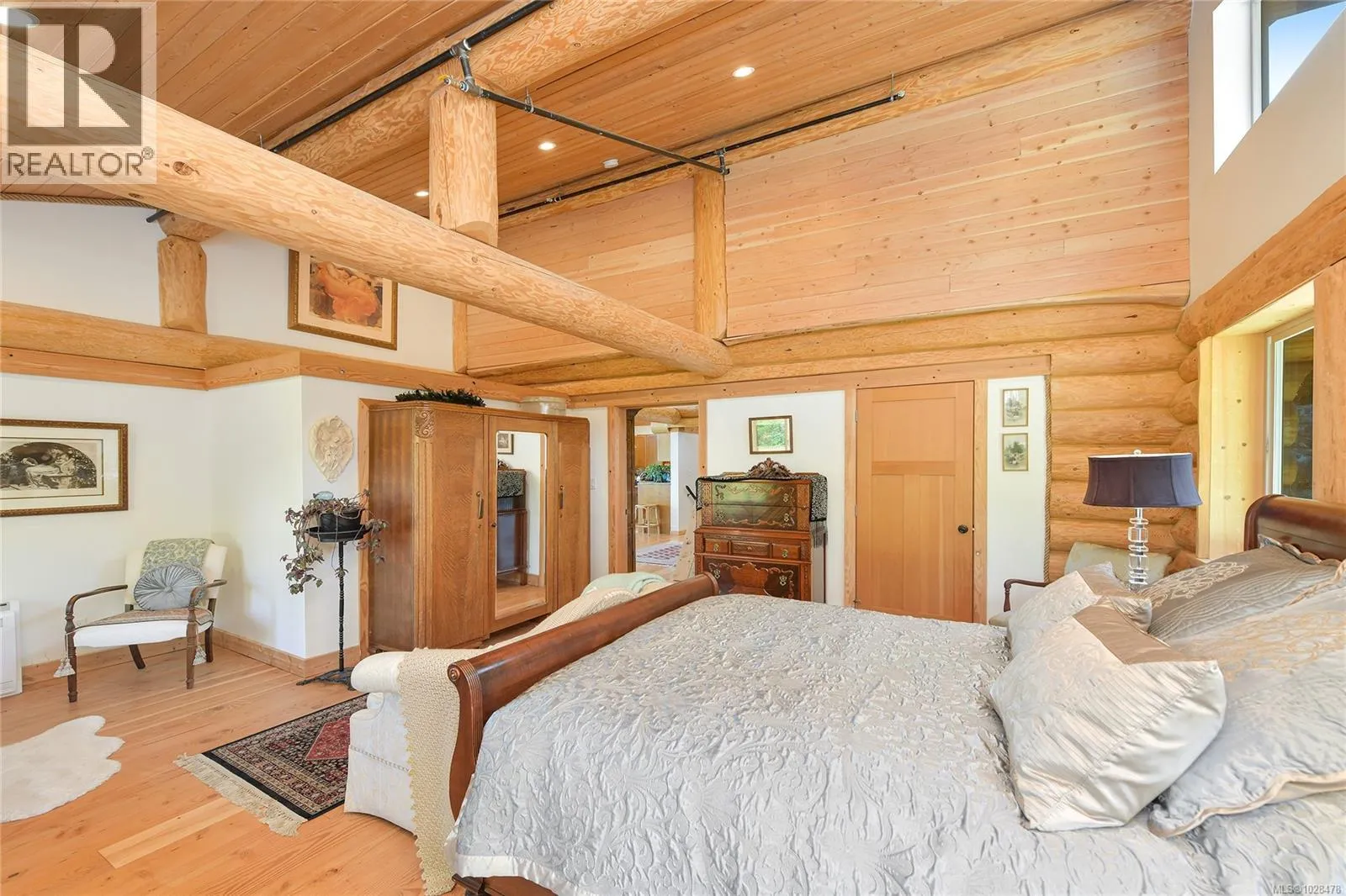 A luxurious log home of exceptional craftsmanship and presence, this dramatic 6.5+ Acre estate is revealed at the end of a long, tree-lined driveway, where grand timber architecture, soaring 17â1'' vaulted ceilings, and sweeping floor-to-ceiling windows showcase the beauty of the West Coast landscape in unforgettable fashion. Sun-drenched open-concept living is elevated by refined finishes, a chefâs kitchen, heated floors, and an impressive wood-burning fireplace, while the private main-level primary suiteâwith its spa-inspired ensuite and deck accessâcaptures golden west-facing light. The lower level extends the luxury with a suite with separate entrance, den/music room and a generous hobby/rec room, all anchored by an expansive 4-car garage and abundant parking. Detached outbuildings and a greenhouse complete this rare, resort-like sanctuary where privacy, elegance, and natural grandeur come together in a truly remarkable offering. (id:27476)