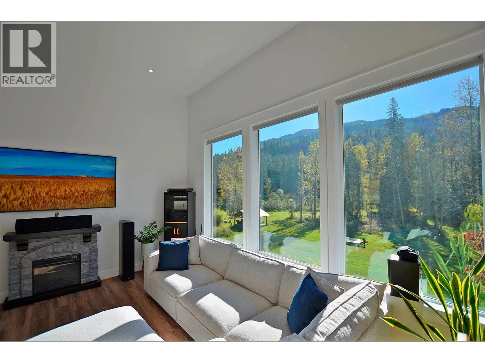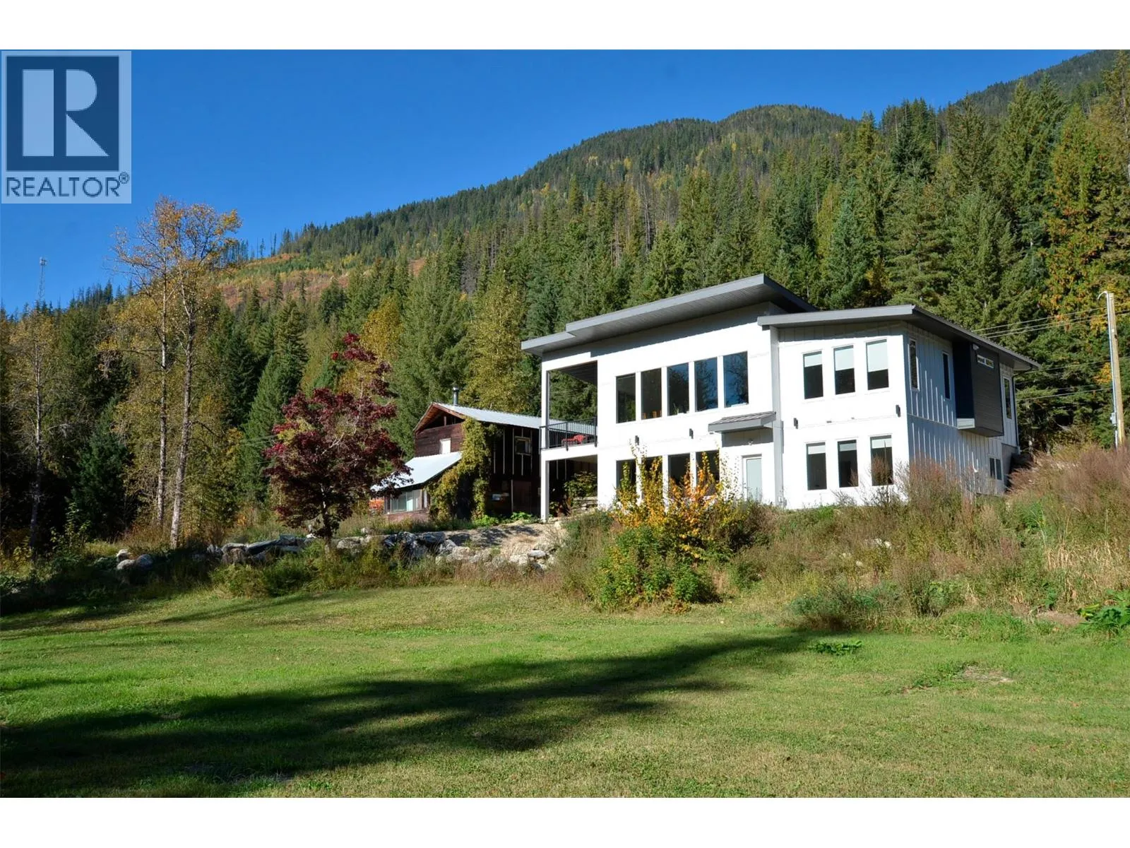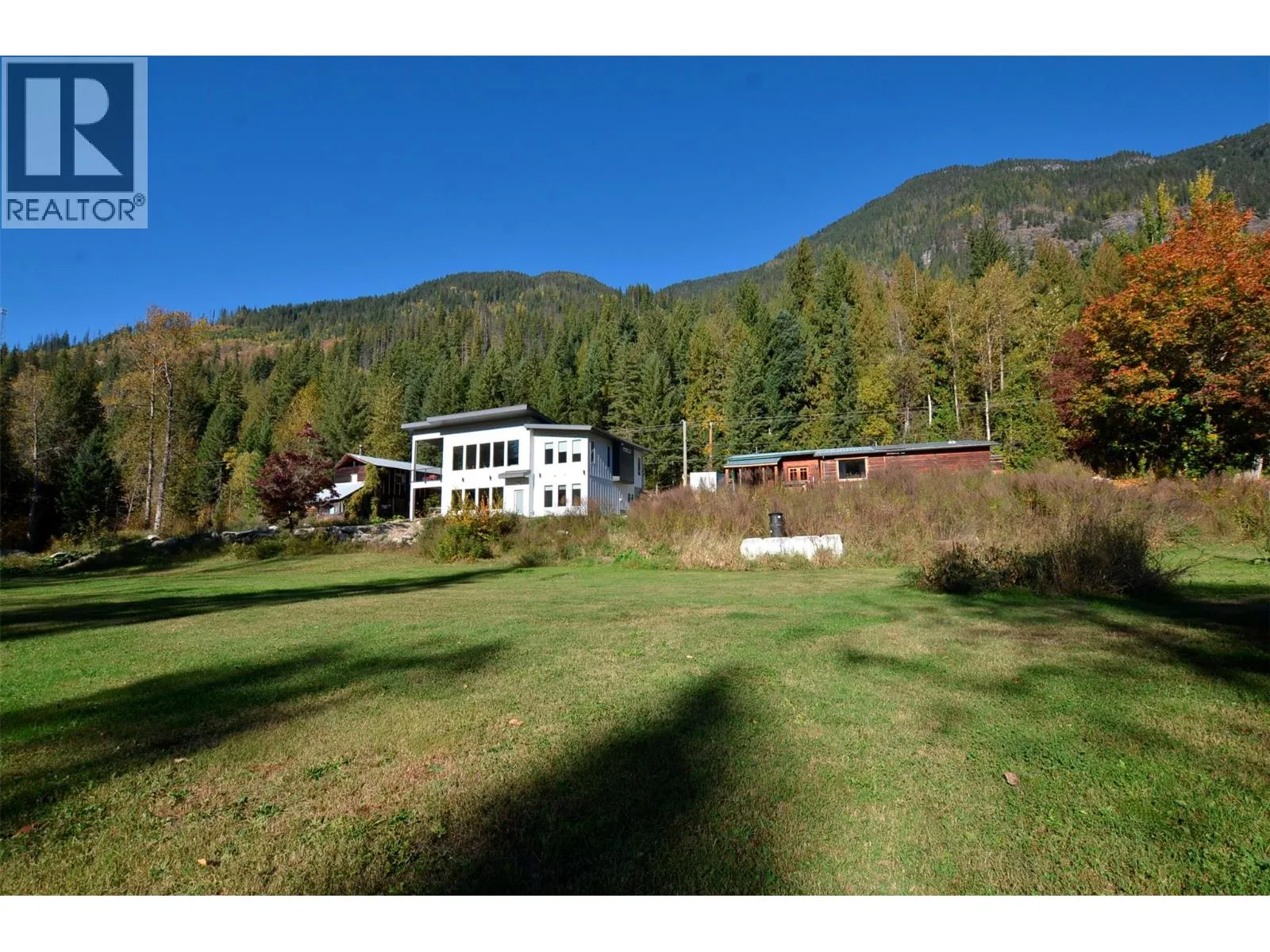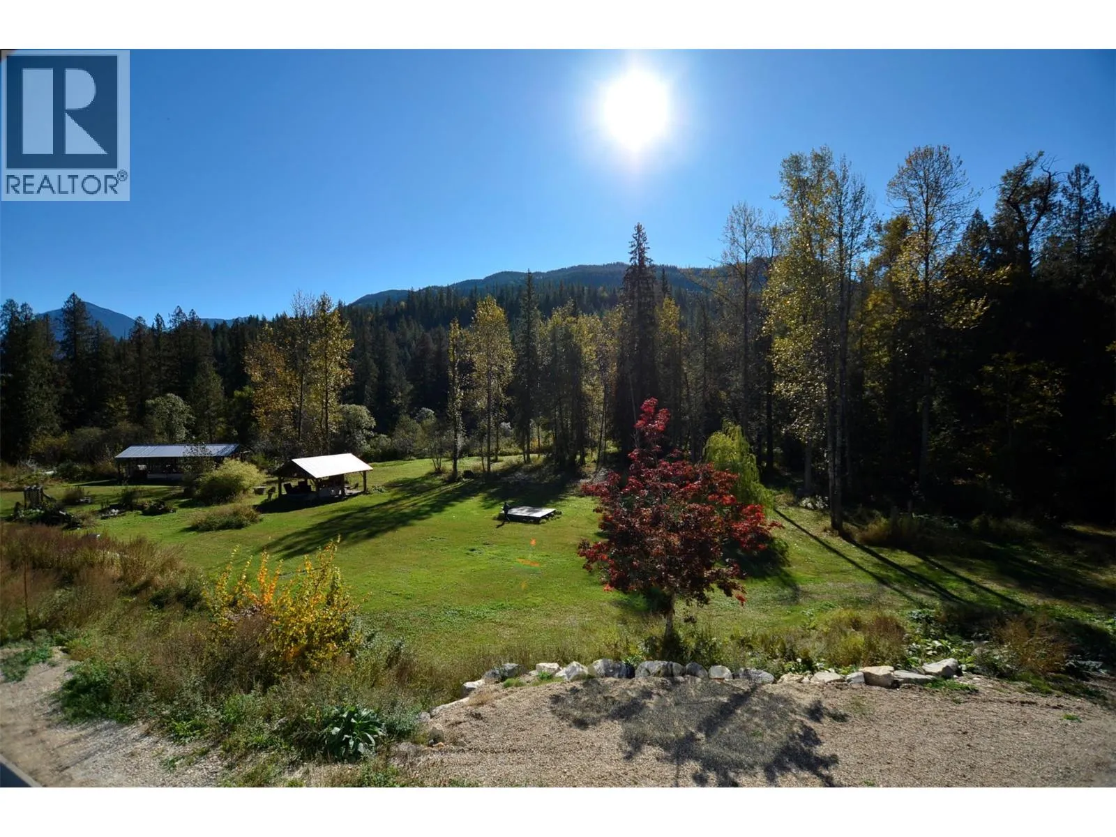 A breathtaking view can be yours in this stunning, fully-developed 4-bedroom home, completed in 2025. It blends rural lifestyle with convenient access to shopping, schools, and recreation such as sledding, skiing, and boating. Situated on a 7.39-acre parcel 1km from the Crazy Creek Hot Pools Resort, between Sicamous and Revelstoke, it's ideal for entertaining or tranquil treed walks to a sandy beach on the pristine Eagle River to enjoy fishing and swimming. The residence is designed with an open bright layout, high vaulted ceilings, noise-reducing windows, and a walk-out lower level. The kitchen and bathrooms are equipped with quality cabinetry, countertops, stylish light fixtures, and modern appliances. Kitchen highlights include a serving island, soft-close doors and deep drawers for functional storage. The living areas feature an electric fireplace and covered deck access. The finished lower level provides an expansive versatile space, two more bedrooms, laundry, utility, and patio-yard access. The home features blackout blinds, ceiling fans, heat pump AC, and is hot tub-ready with two electrical services. An adjacent residential building currently functions as a large studio/suite with a hot tub. Outside buildings include a garden shed, equipment shed, gazebo, woodshop, and RV pad with full hookups. With its accessible location, stunning views, garden and socializing areas, this setting can become your private oasis! (id:27476)