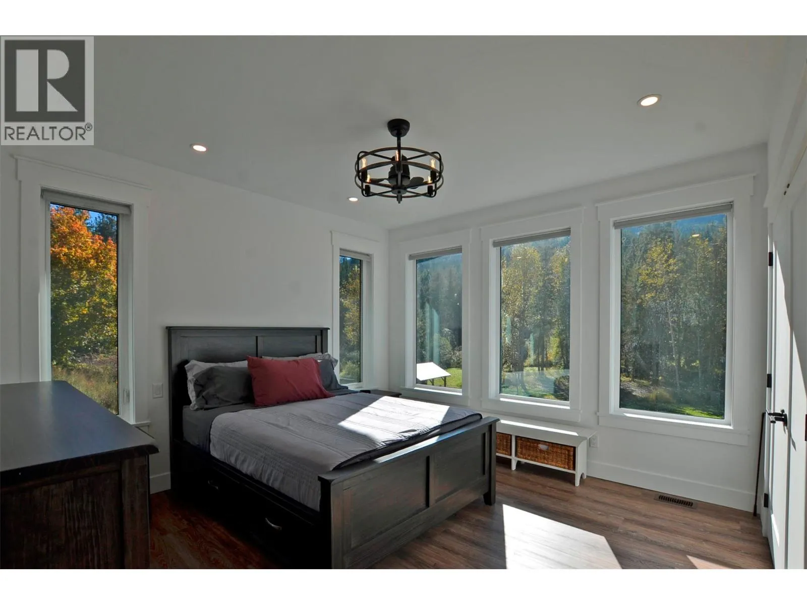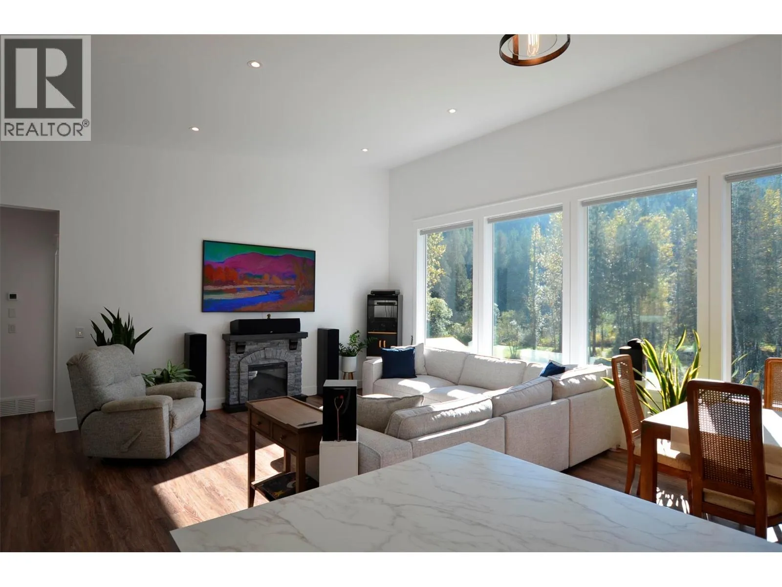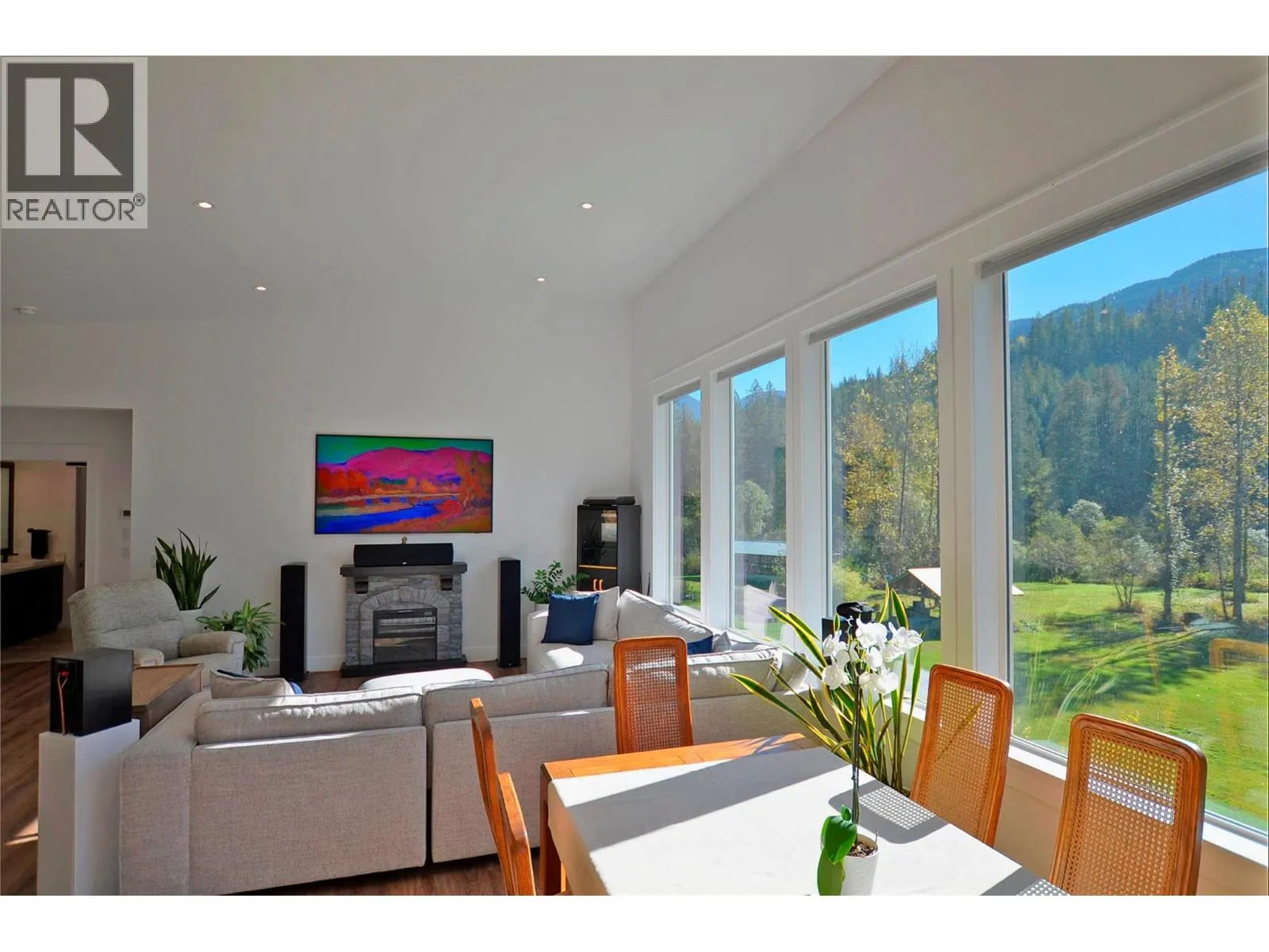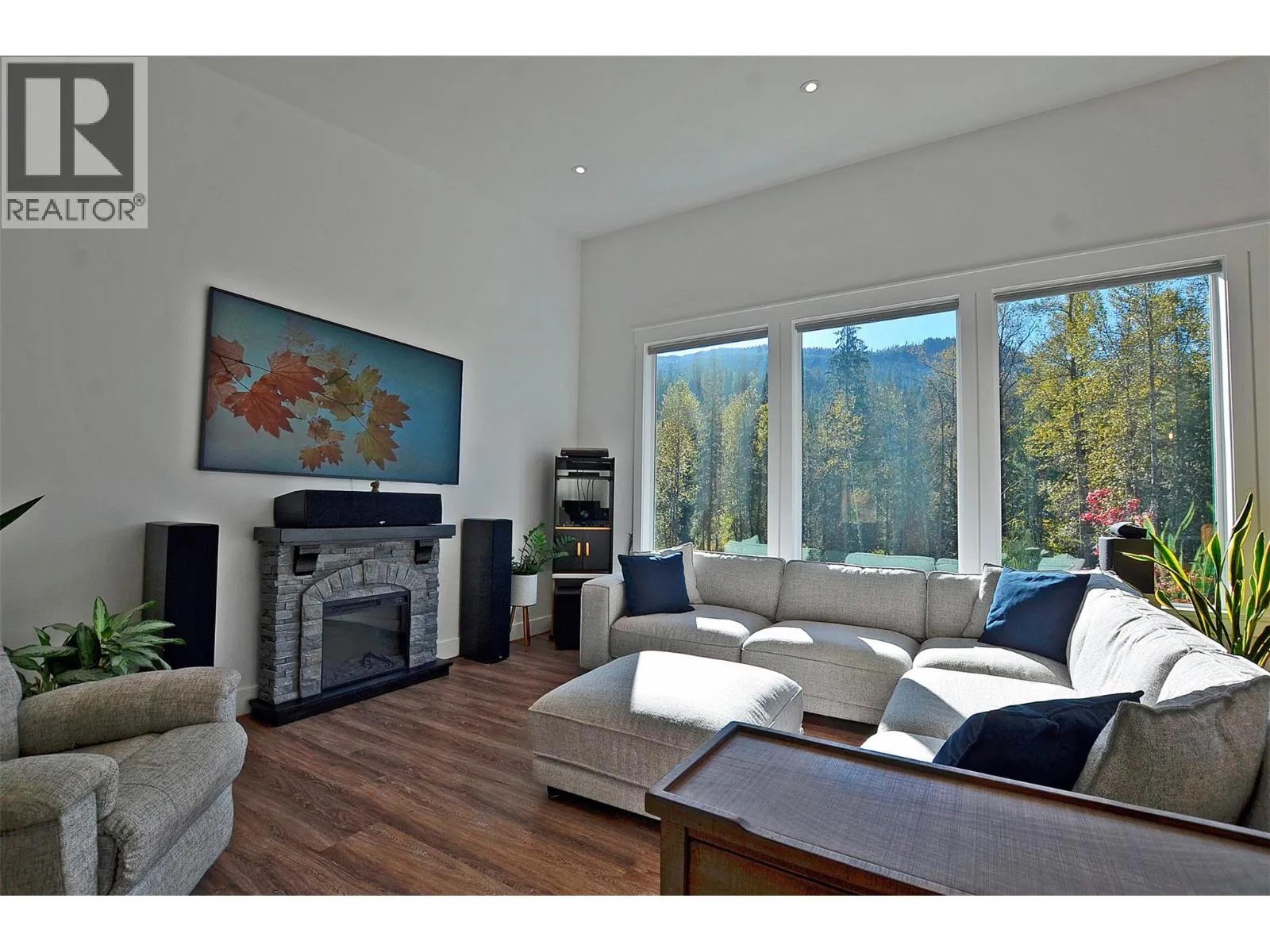 A breathtaking view can be yours in this stunning, fully-developed 4-bedroom home, completed in 2025. It blends rural lifestyle with convenient access to shopping, schools, and recreation such as sledding, skiing, and boating. Situated on a 7.39-acre parcel 1km from the Crazy Creek Hot Pools Resort, between Sicamous and Revelstoke, it's ideal for entertaining or tranquil treed walks to a sandy beach on the pristine Eagle River to enjoy fishing and swimming. The residence is designed with an open bright layout, high vaulted ceilings, noise-reducing windows, and a walk-out lower level. The kitchen and bathrooms are equipped with quality cabinetry, countertops, stylish light fixtures, and modern appliances. Kitchen highlights include a serving island, soft-close doors and deep drawers for functional storage. The living areas feature an electric fireplace and covered deck access. The finished lower level provides an expansive versatile space, two more bedrooms, laundry, utility, and patio-yard access. The home features blackout blinds, ceiling fans, heat pump AC, and is hot tub-ready with two electrical services. An adjacent residential building currently functions as a large studio/suite with a hot tub. Outside buildings include a garden shed, equipment shed, gazebo, woodshop, and RV pad with full hookups. With its accessible location, stunning views, garden and socializing areas, this setting can become your private oasis! (id:27476)