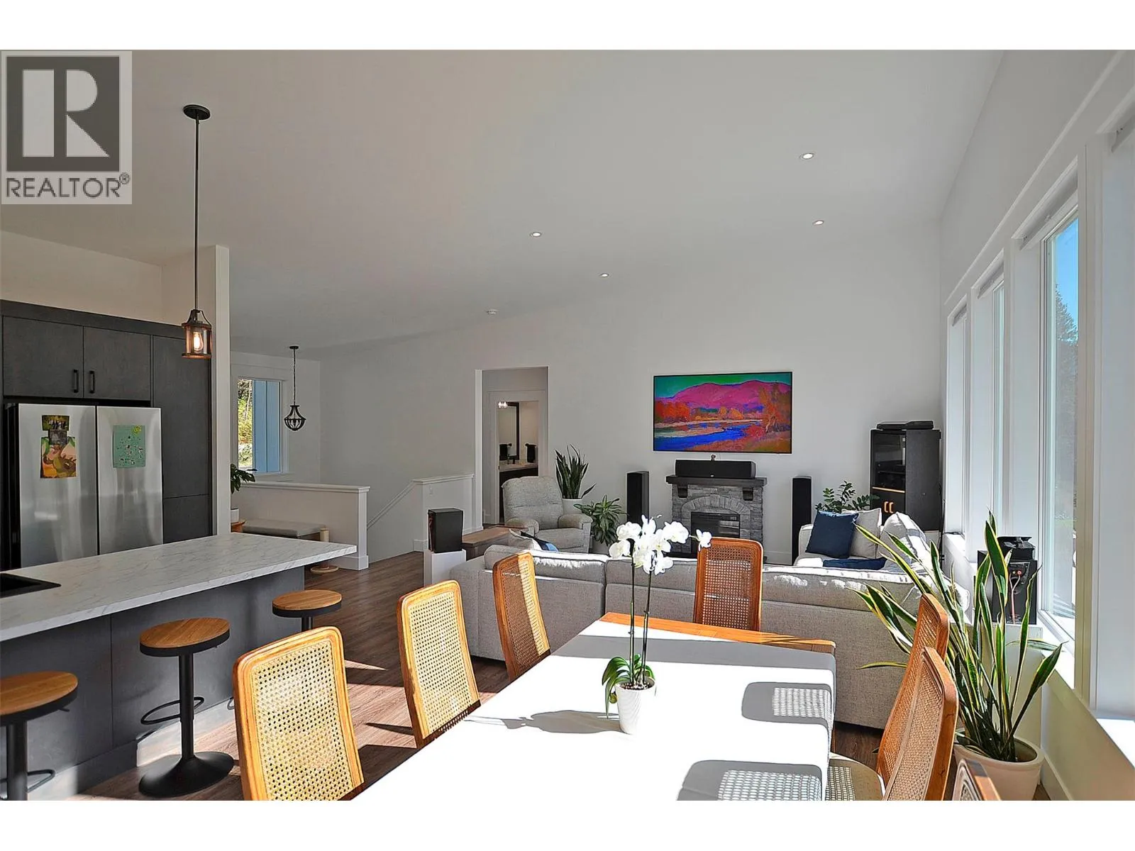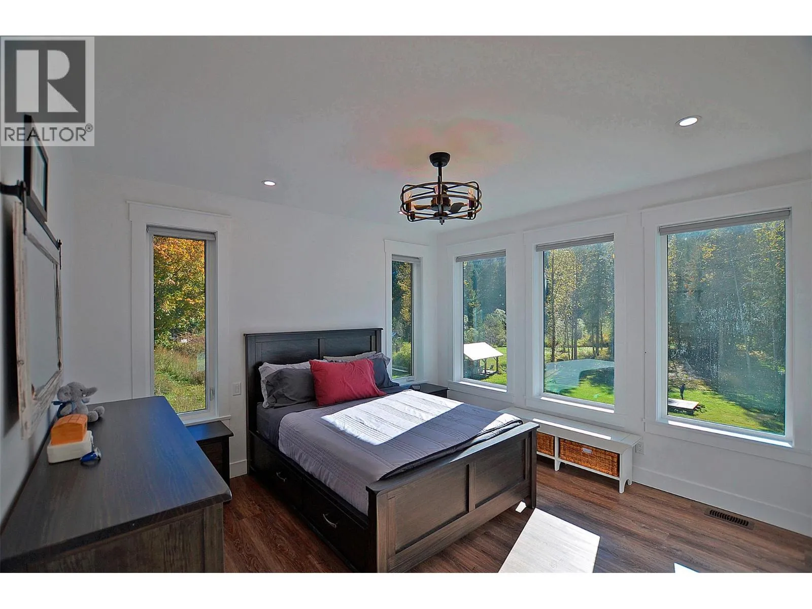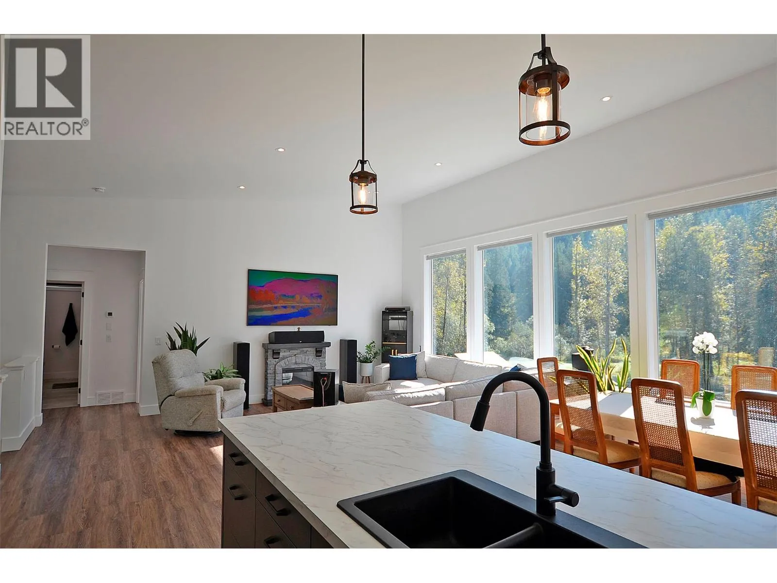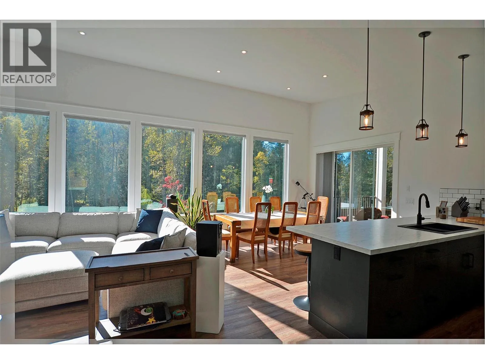 A breathtaking view can be yours in this stunning, fully-developed 4-bedroom home, completed in 2025. It blends rural lifestyle with convenient access to shopping, schools, and recreation such as sledding, skiing, and boating. Situated on a 7.39-acre parcel 1km from the Crazy Creek Hot Pools Resort, between Sicamous and Revelstoke, it's ideal for entertaining or tranquil treed walks to a sandy beach on the pristine Eagle River to enjoy fishing and swimming. The residence is designed with an open bright layout, high vaulted ceilings, noise-reducing windows, and a walk-out lower level. The kitchen and bathrooms are equipped with quality cabinetry, countertops, stylish light fixtures, and modern appliances. Kitchen highlights include a serving island, soft-close doors and deep drawers for functional storage. The living areas feature an electric fireplace and covered deck access. The finished lower level provides an expansive versatile space, two more bedrooms, laundry, utility, and patio-yard access. The home features blackout blinds, ceiling fans, heat pump AC, and is hot tub-ready with two electrical services. An adjacent residential building currently functions as a large studio/suite with a hot tub. Outside buildings include a garden shed, equipment shed, gazebo, woodshop, and RV pad with full hookups. With its accessible location, stunning views, garden and socializing areas, this setting can become your private oasis! (id:27476)