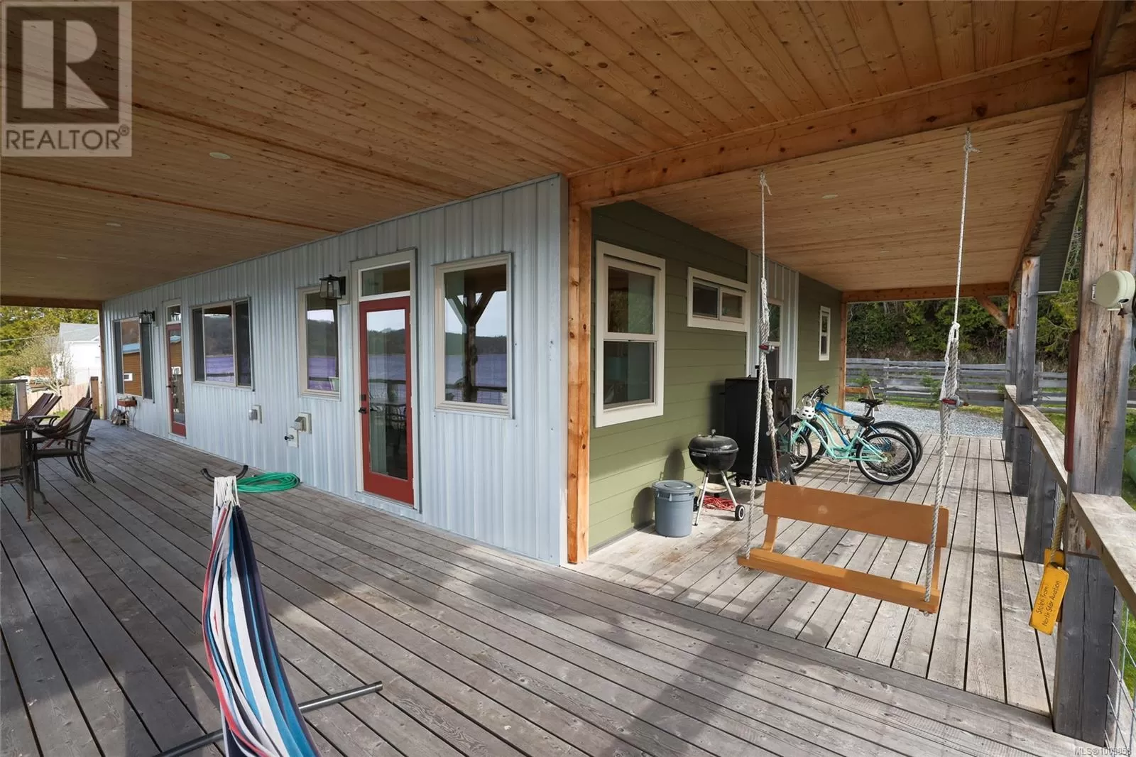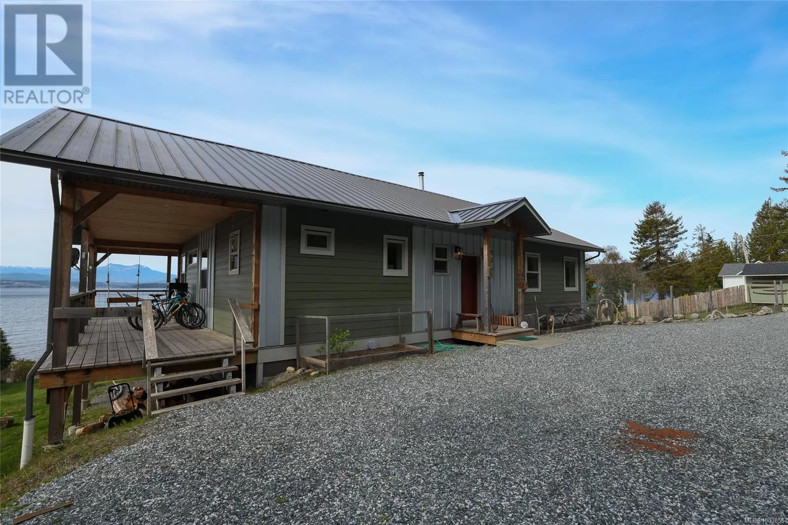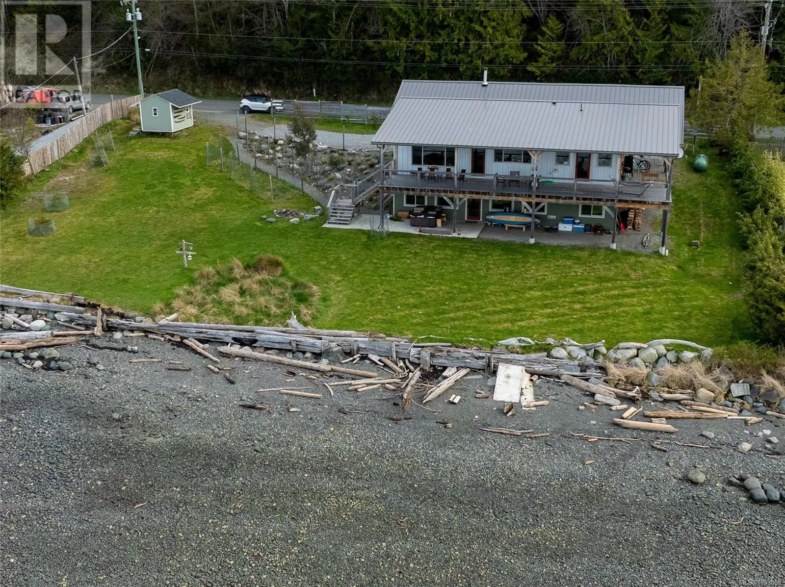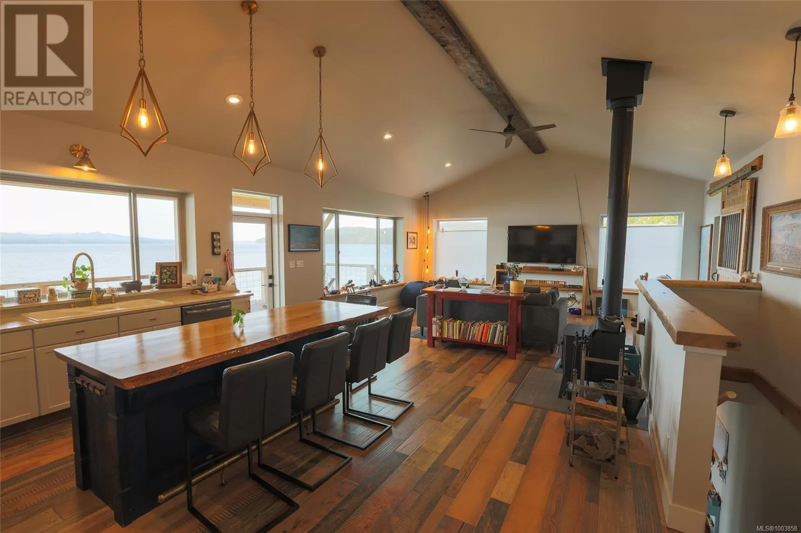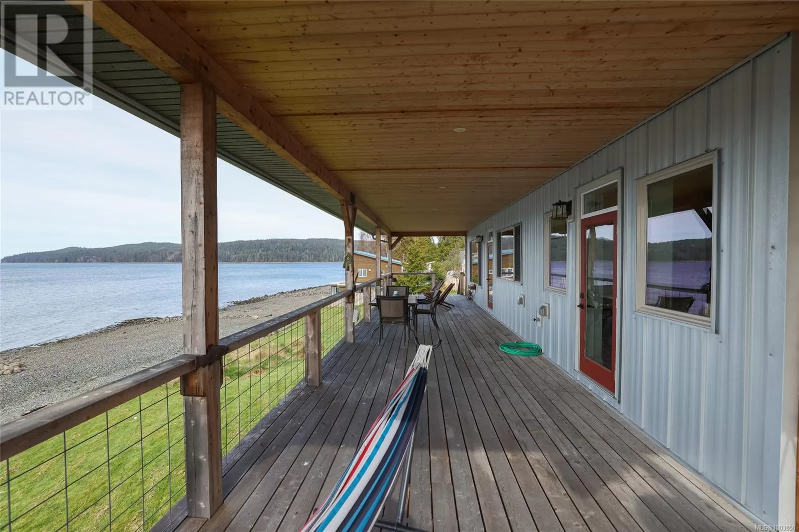This exquisite waterfront home, built in 2019, is a rare find in the heart of Sointula. Situated on just under half an acre across a double lot, this south-facing walk on waterfront property offers breathtaking, unobstructed ocean and mountain views. Step into the spacious main-level entry where youâre greeted by a generous entry. A laundry area to the right and a powder room to the left. The moment you walk in, your eyes are drawn to the expansive ocean views through the kitchen windows. The custom kitchen features a rustic barn wood island and flows seamlessly into the living roomâcomplete with a cozy woodstoveâmaking it an ideal space for entertaining. Off the living area, youâll find a quiet den and an impressive primary suite featuring a walk-in closet and a beautifully appointed 4-piece ensuite off the kitchen. The entire ocean-facing side of the home is lined with a covered wraparound deckâperfect for relaxing, wildlife watching, and enjoying the serene beauty of the coast year-round.The walkout basement is currently set up as a spacious home gym but has been thoughtfully roughed-in with plumbing and services for a full kitchen, offering potential for a self-contained suite or expanded living space. A full bathroom and an additional bedroom complete the lower level. Blending modern conveniences and smart design with the timeless rustic charm Sointula is known for, this high-end home is ready for your next chapterâwhether thatâs full-time coastal living, a luxurious vacation home with great fishing just outside your door, or a savvy investment with suite potential. Donât miss this unique opportunity to own a piece of Sointulaâs waterfront paradise! (id:27476)