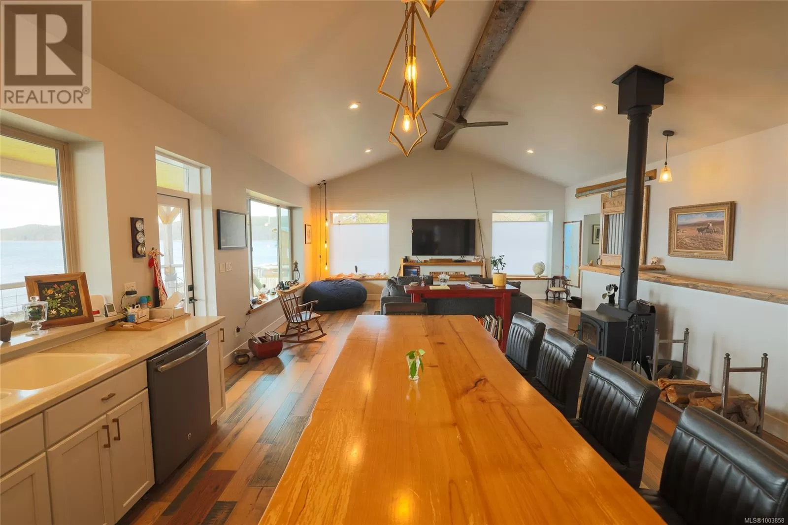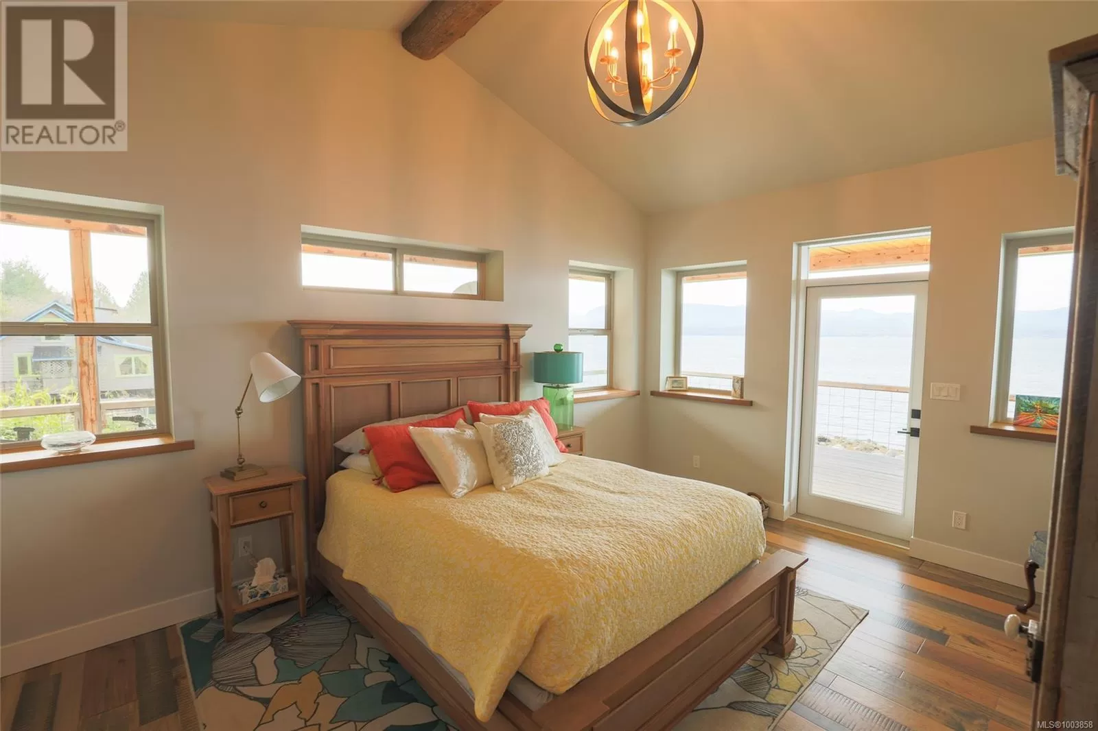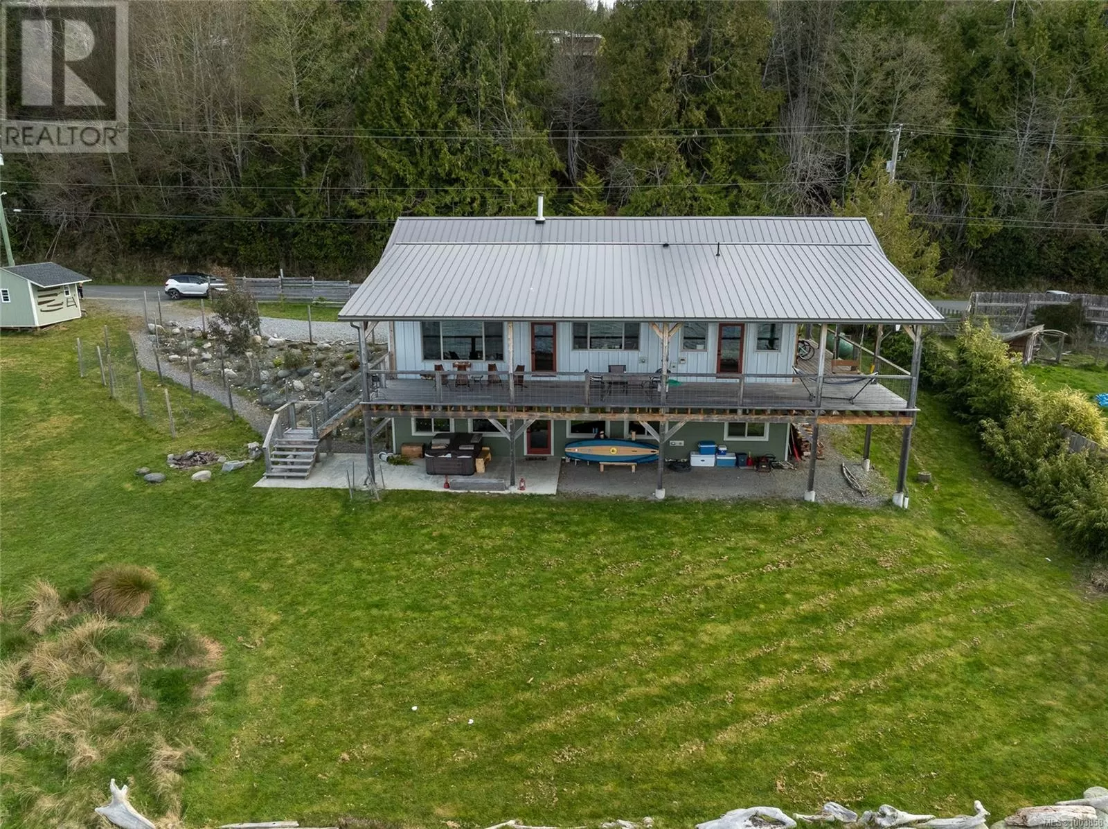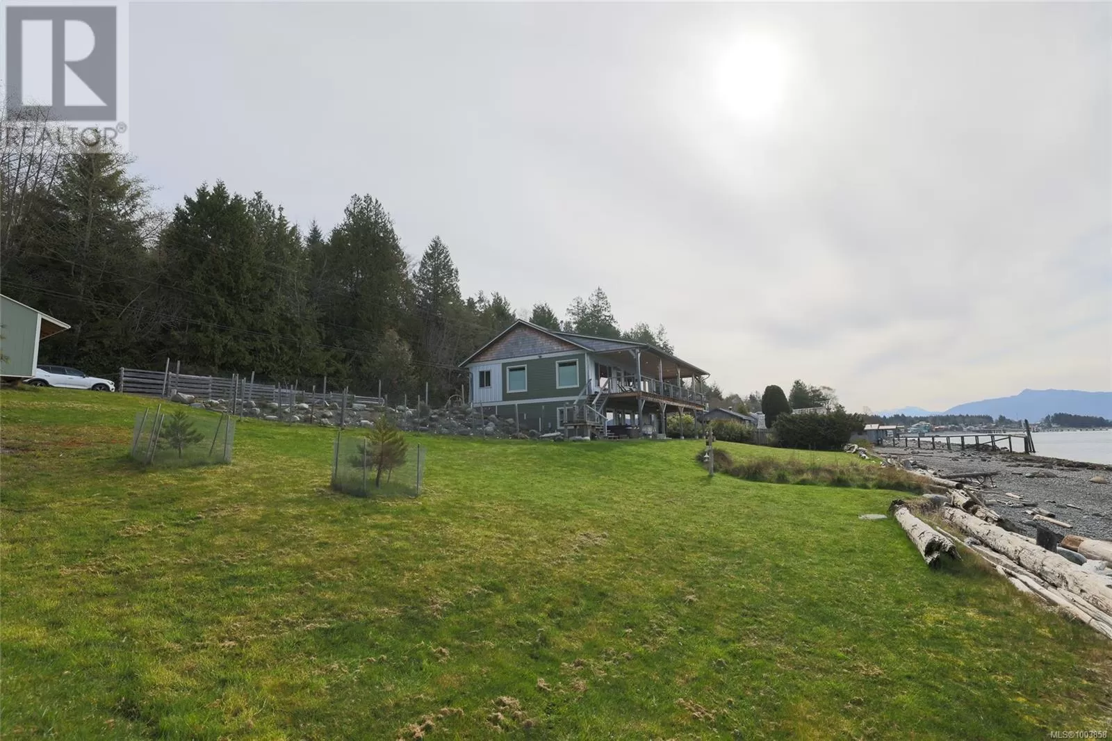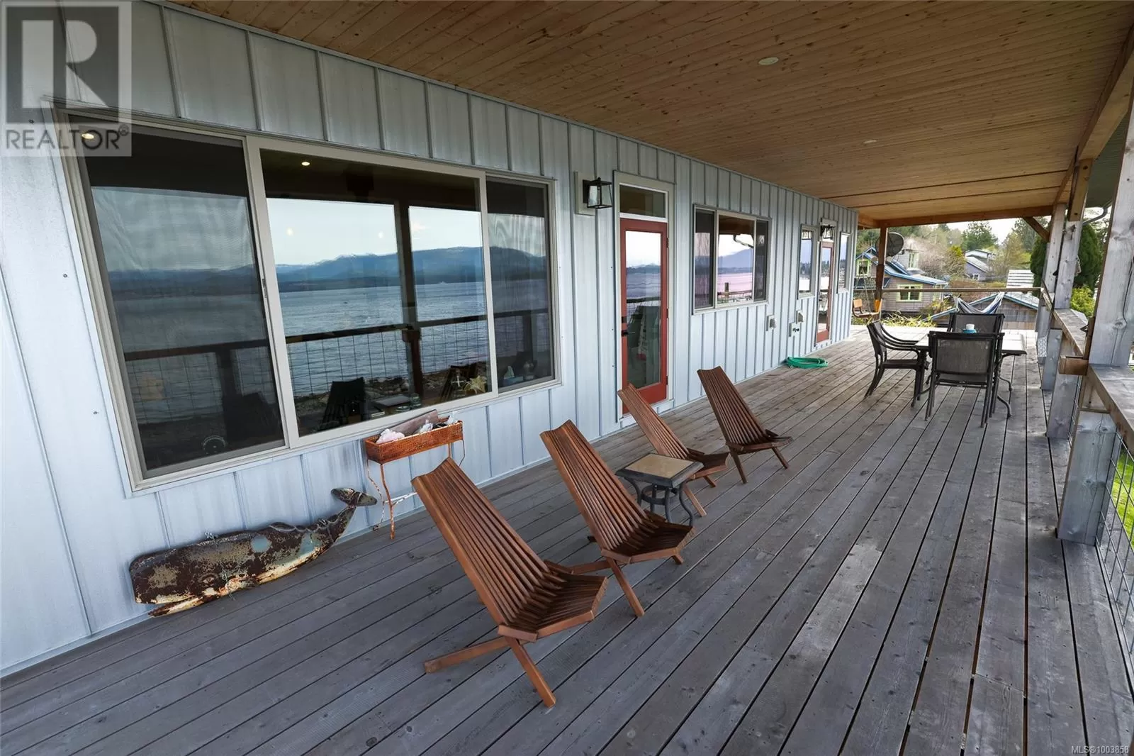 This exquisite waterfront home, built in 2019, is a rare find in the heart of Sointula. Situated on just under half an acre across a double lot, this south-facing walk on waterfront property offers breathtaking, unobstructed ocean and mountain views. Step into the spacious main-level entry where youâre greeted by a generous entry. A laundry area to the right and a powder room to the left. The moment you walk in, your eyes are drawn to the expansive ocean views through the kitchen windows. The custom kitchen features a rustic barn wood island and flows seamlessly into the living roomâcomplete with a cozy woodstoveâmaking it an ideal space for entertaining. Off the living area, youâll find a quiet den and an impressive primary suite featuring a walk-in closet and a beautifully appointed 4-piece ensuite off the kitchen. The entire ocean-facing side of the home is lined with a covered wraparound deckâperfect for relaxing, wildlife watching, and enjoying the serene beauty of the coast year-round.The walkout basement is currently set up as a spacious home gym but has been thoughtfully roughed-in with plumbing and services for a full kitchen, offering potential for a self-contained suite or expanded living space. A full bathroom and an additional bedroom complete the lower level. Blending modern conveniences and smart design with the timeless rustic charm Sointula is known for, this high-end home is ready for your next chapterâwhether thatâs full-time coastal living, a luxurious vacation home with great fishing just outside your door, or a savvy investment with suite potential. Donât miss this unique opportunity to own a piece of Sointulaâs waterfront paradise! (id:27476)