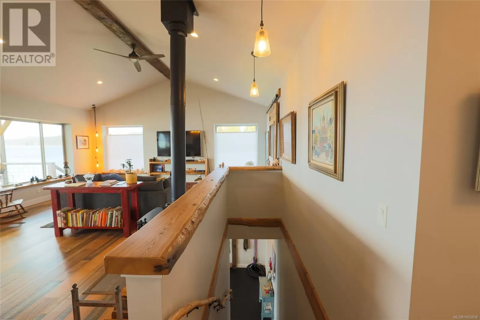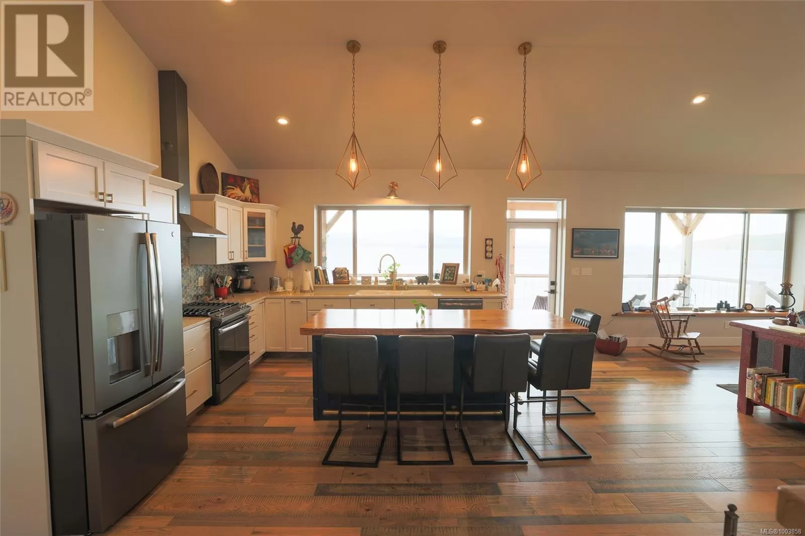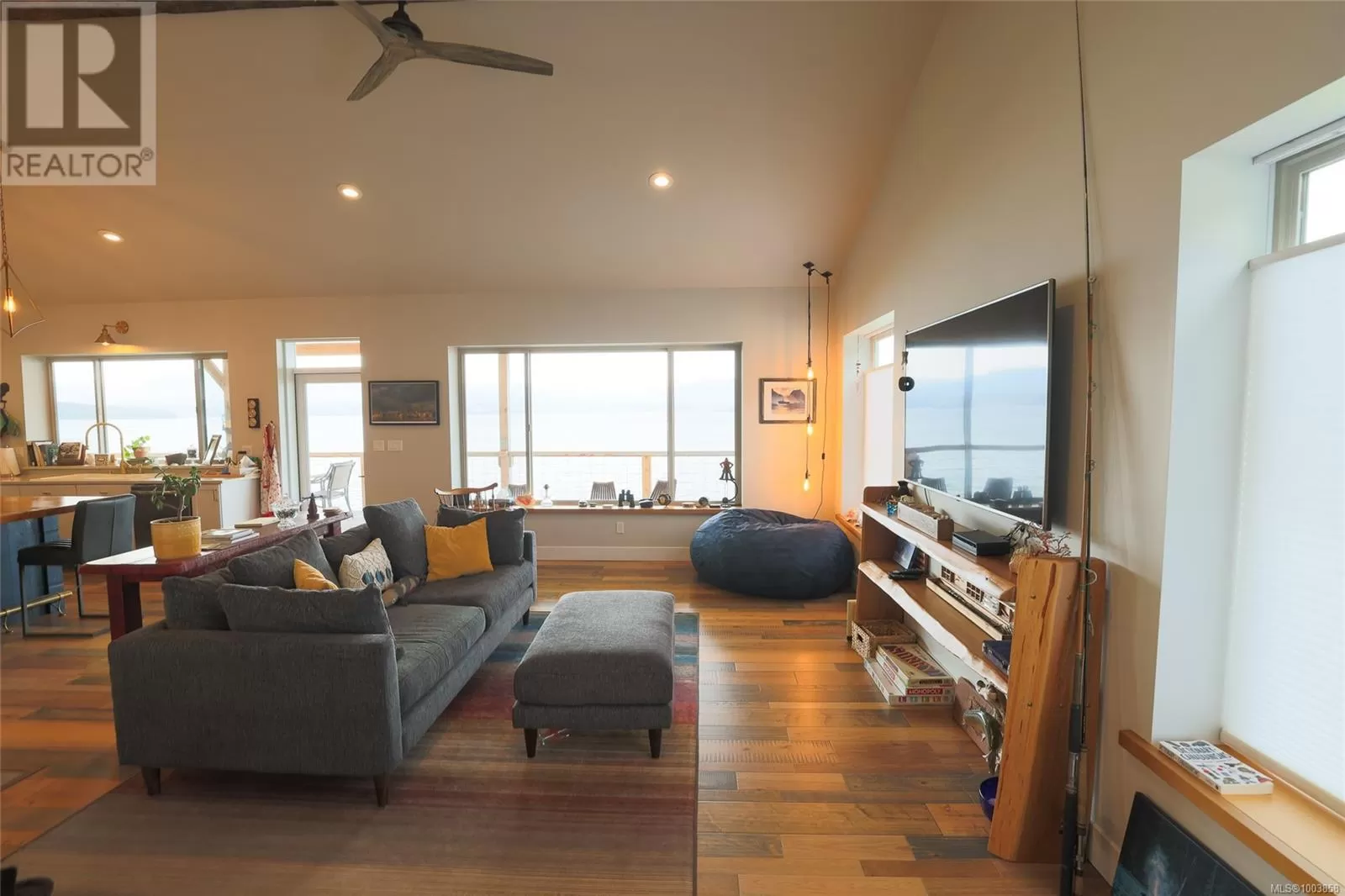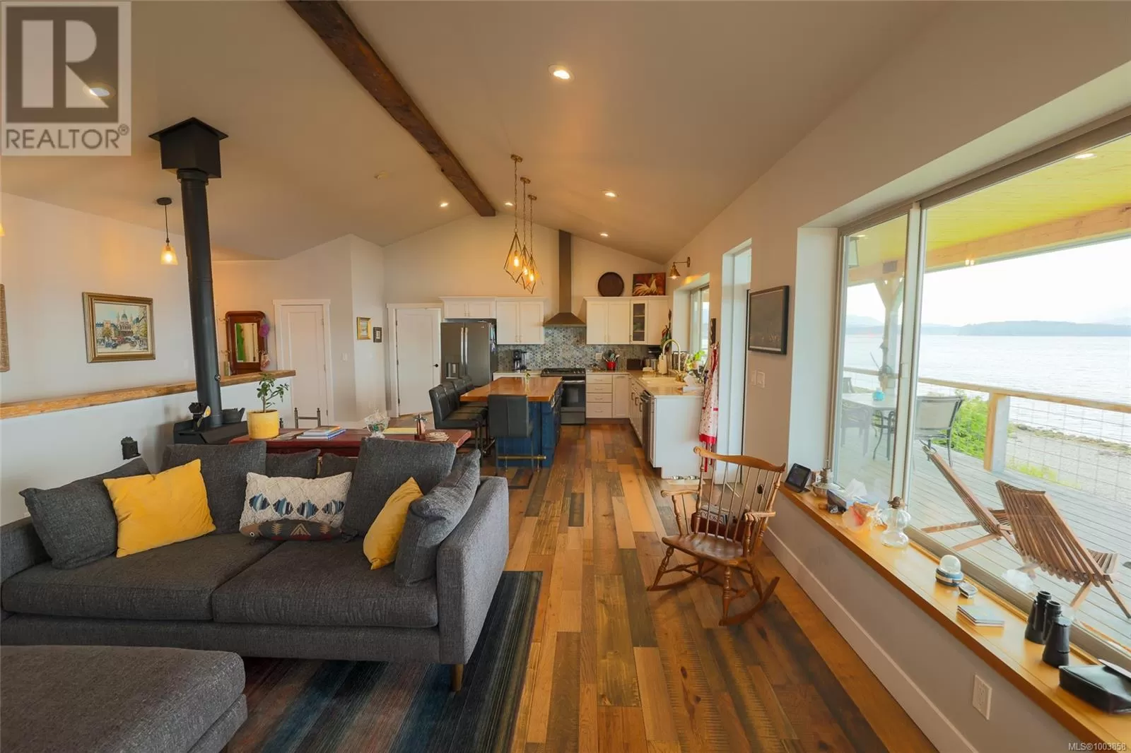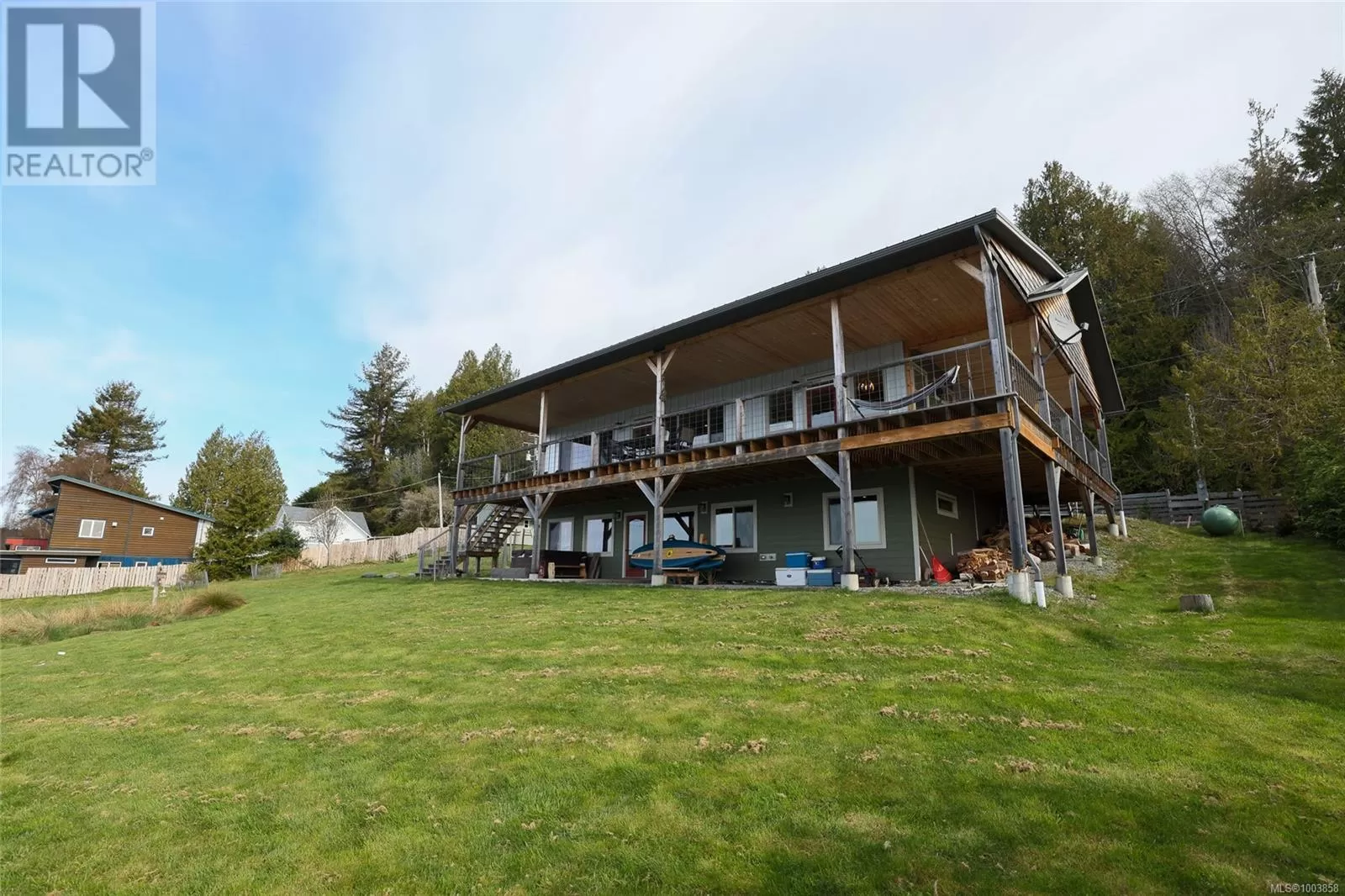 This exquisite waterfront home, built in 2019, is a rare find in the heart of Sointula. Situated on just under half an acre across a double lot, this south-facing walk on waterfront property offers breathtaking, unobstructed ocean and mountain views. Step into the spacious main-level entry where youâre greeted by a generous entry. A laundry area to the right and a powder room to the left. The moment you walk in, your eyes are drawn to the expansive ocean views through the kitchen windows. The custom kitchen features a rustic barn wood island and flows seamlessly into the living roomâcomplete with a cozy woodstoveâmaking it an ideal space for entertaining. Off the living area, youâll find a quiet den and an impressive primary suite featuring a walk-in closet and a beautifully appointed 4-piece ensuite off the kitchen. The entire ocean-facing side of the home is lined with a covered wraparound deckâperfect for relaxing, wildlife watching, and enjoying the serene beauty of the coast year-round.The walkout basement is currently set up as a spacious home gym but has been thoughtfully roughed-in with plumbing and services for a full kitchen, offering potential for a self-contained suite or expanded living space. A full bathroom and an additional bedroom complete the lower level. Blending modern conveniences and smart design with the timeless rustic charm Sointula is known for, this high-end home is ready for your next chapterâwhether thatâs full-time coastal living, a luxurious vacation home with great fishing just outside your door, or a savvy investment with suite potential. Donât miss this unique opportunity to own a piece of Sointulaâs waterfront paradise! (id:27476)
