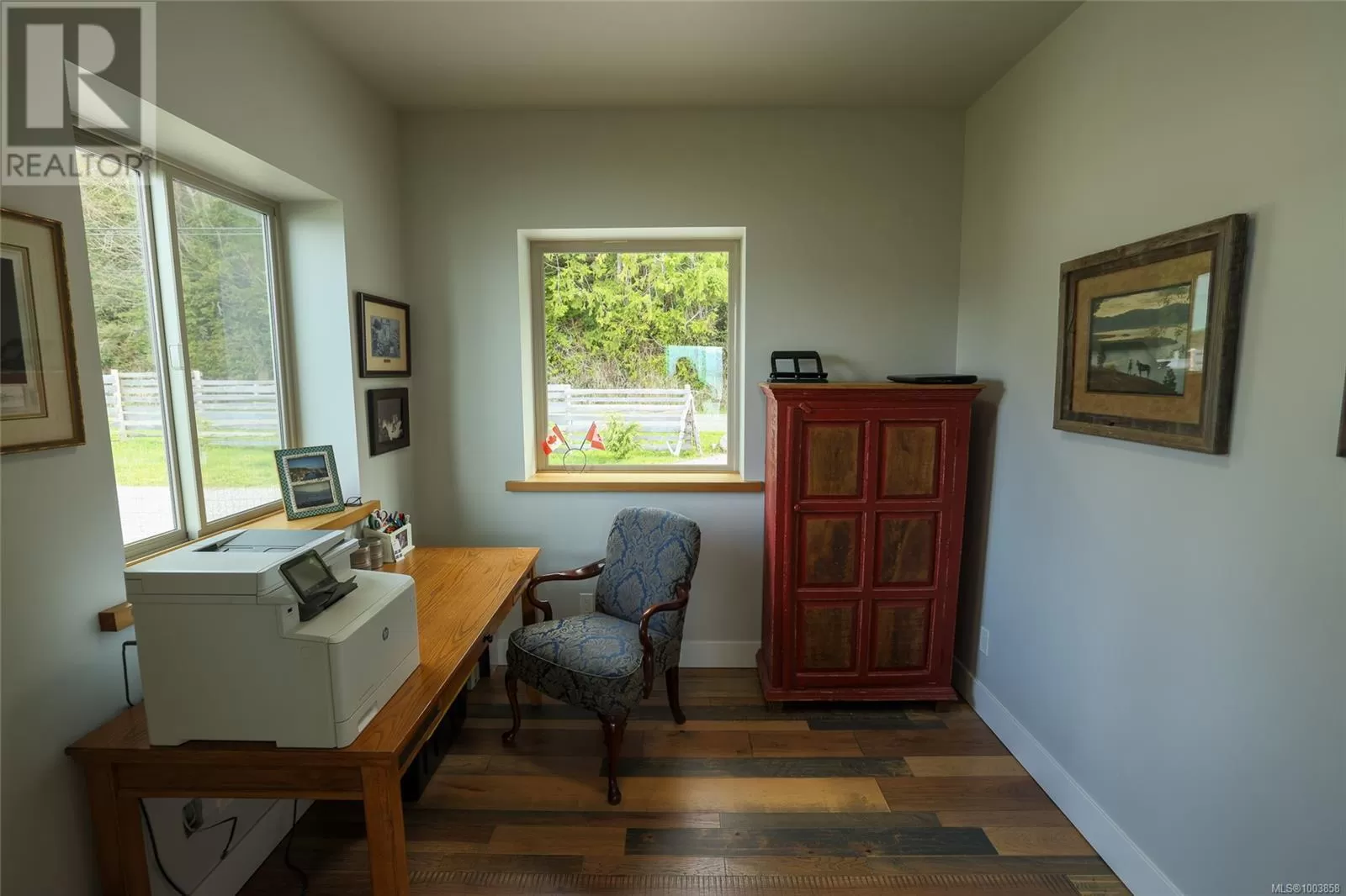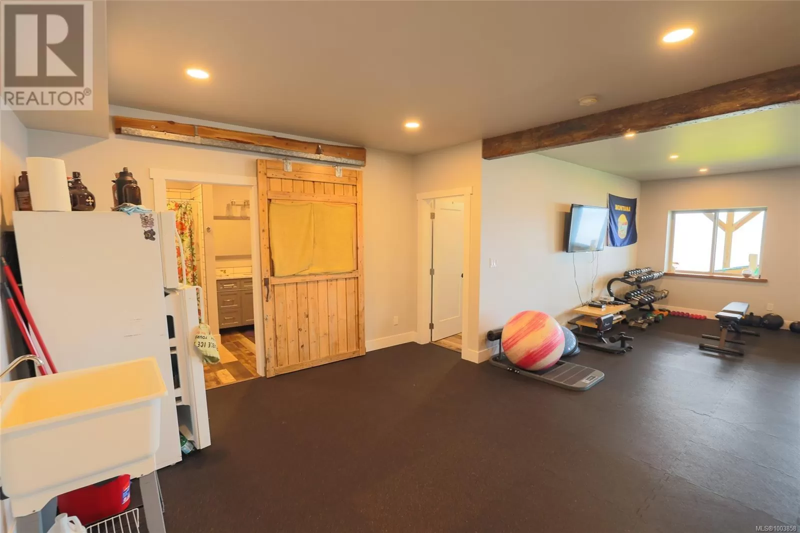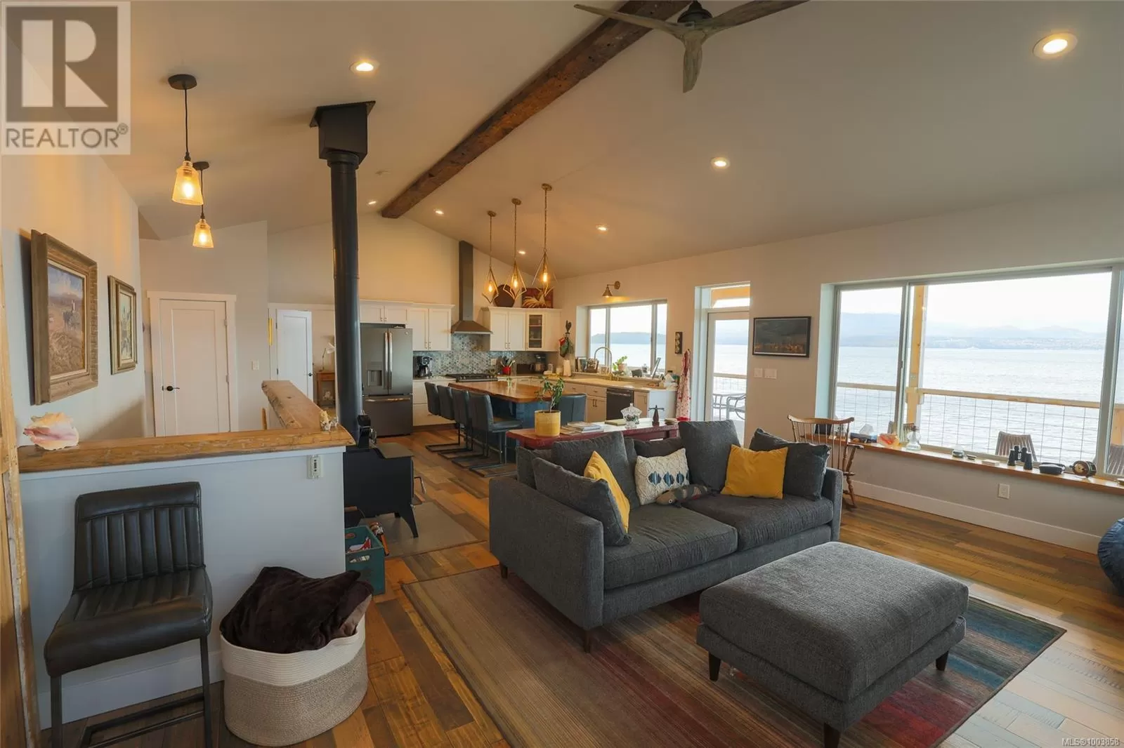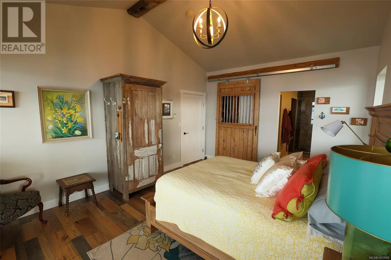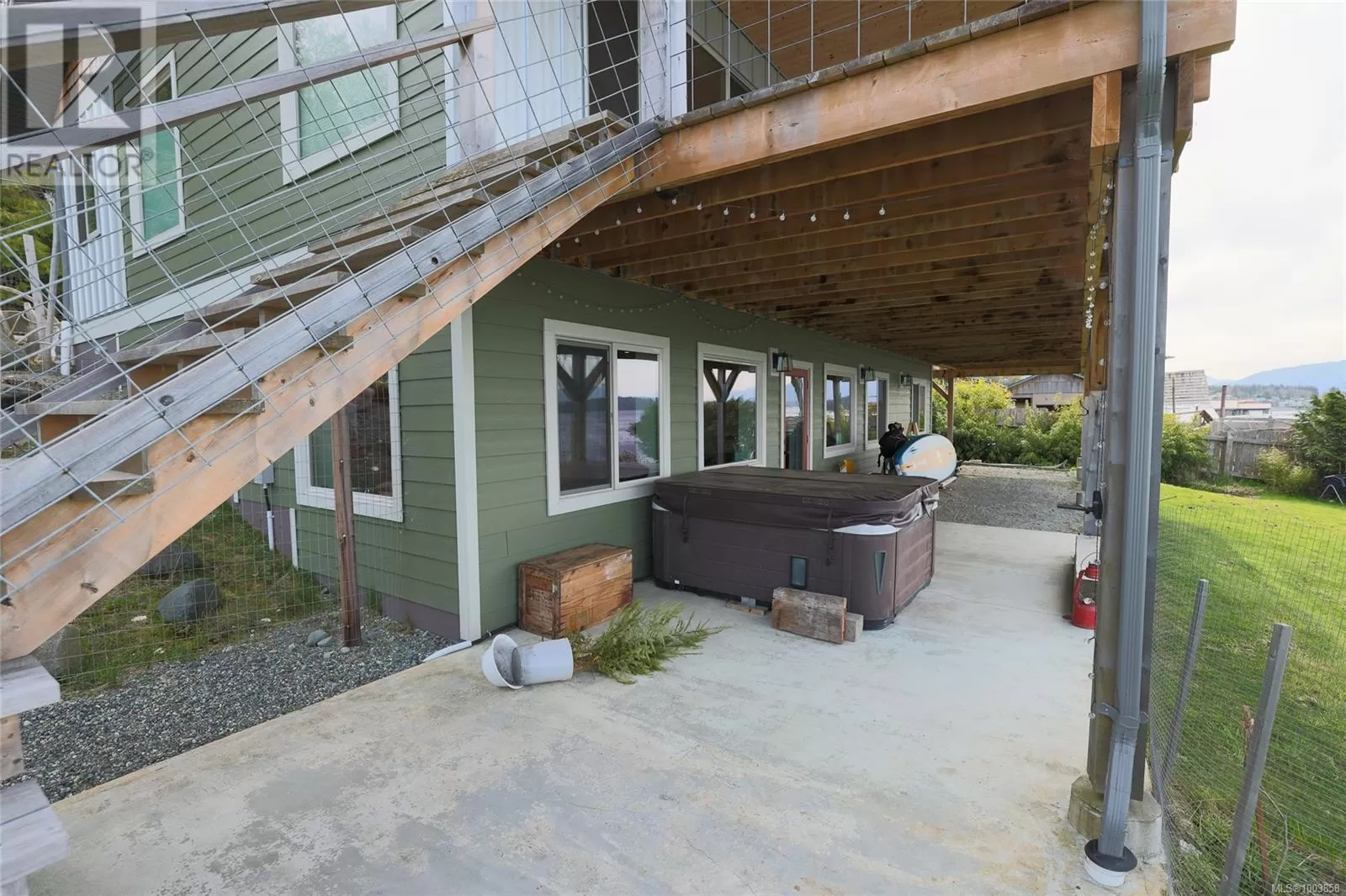 This exquisite waterfront home, built in 2019, is a rare find in the heart of Sointula. Situated on just under half an acre across a double lot, this south-facing walk on waterfront property offers breathtaking, unobstructed ocean and mountain views. Step into the spacious main-level entry where youâre greeted by a generous entry. A laundry area to the right and a powder room to the left. The moment you walk in, your eyes are drawn to the expansive ocean views through the kitchen windows. The custom kitchen features a rustic barn wood island and flows seamlessly into the living roomâcomplete with a cozy woodstoveâmaking it an ideal space for entertaining. Off the living area, youâll find a quiet den and an impressive primary suite featuring a walk-in closet and a beautifully appointed 4-piece ensuite off the kitchen. The entire ocean-facing side of the home is lined with a covered wraparound deckâperfect for relaxing, wildlife watching, and enjoying the serene beauty of the coast year-round.The walkout basement is currently set up as a spacious home gym but has been thoughtfully roughed-in with plumbing and services for a full kitchen, offering potential for a self-contained suite or expanded living space. A full bathroom and an additional bedroom complete the lower level. Blending modern conveniences and smart design with the timeless rustic charm Sointula is known for, this high-end home is ready for your next chapterâwhether thatâs full-time coastal living, a luxurious vacation home with great fishing just outside your door, or a savvy investment with suite potential. Donât miss this unique opportunity to own a piece of Sointulaâs waterfront paradise! (id:27476)