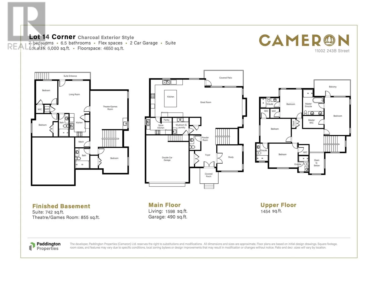 Discover modern luxury at Cameron by Paddington Properties. This brand new dream home is situated on a prized 6000 sq.ft. corner lot. Experience soaring 10 ft ceilings on the main floor, oversized widows and a functional floor plan both indoors & outdoors. Enter through the grand foyer to the expansive living areas, executive office, gourmet kitchen, prep kitchen, and a sensational great room with direct access to the expansive covered deck. The upper level features a primary suite with a private balcony, walk-in closet, & a 5 piece spa ensuite and 3 add'l bedrooms all with their own walk-in closets and full ensuite baths. The lower level offers a guest room with an adjacent full bath, a large flexible recreation room, and a two bedroom legal suite with separate entry. Visit our show home at 11018 243B street 7 days a week by appointment (Home is under construction, photos are of show home). Secure your home now and move in this fall! (id:27476)