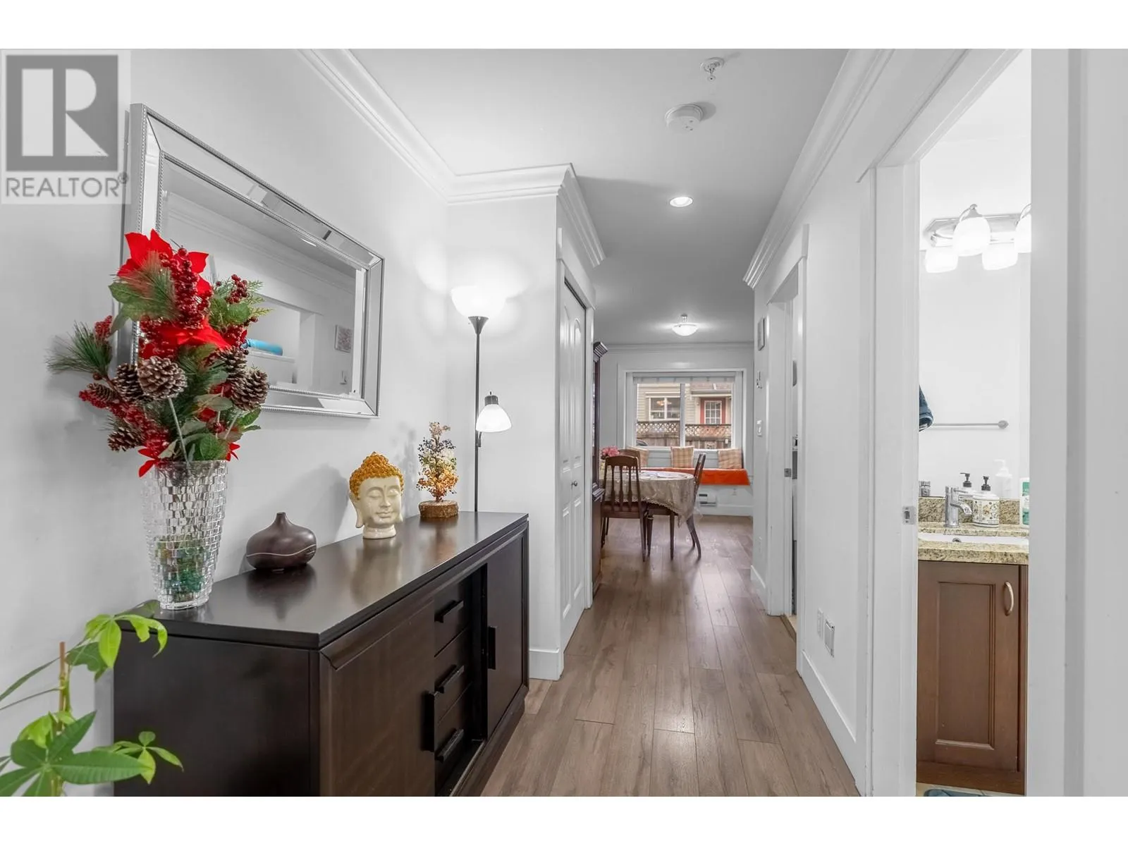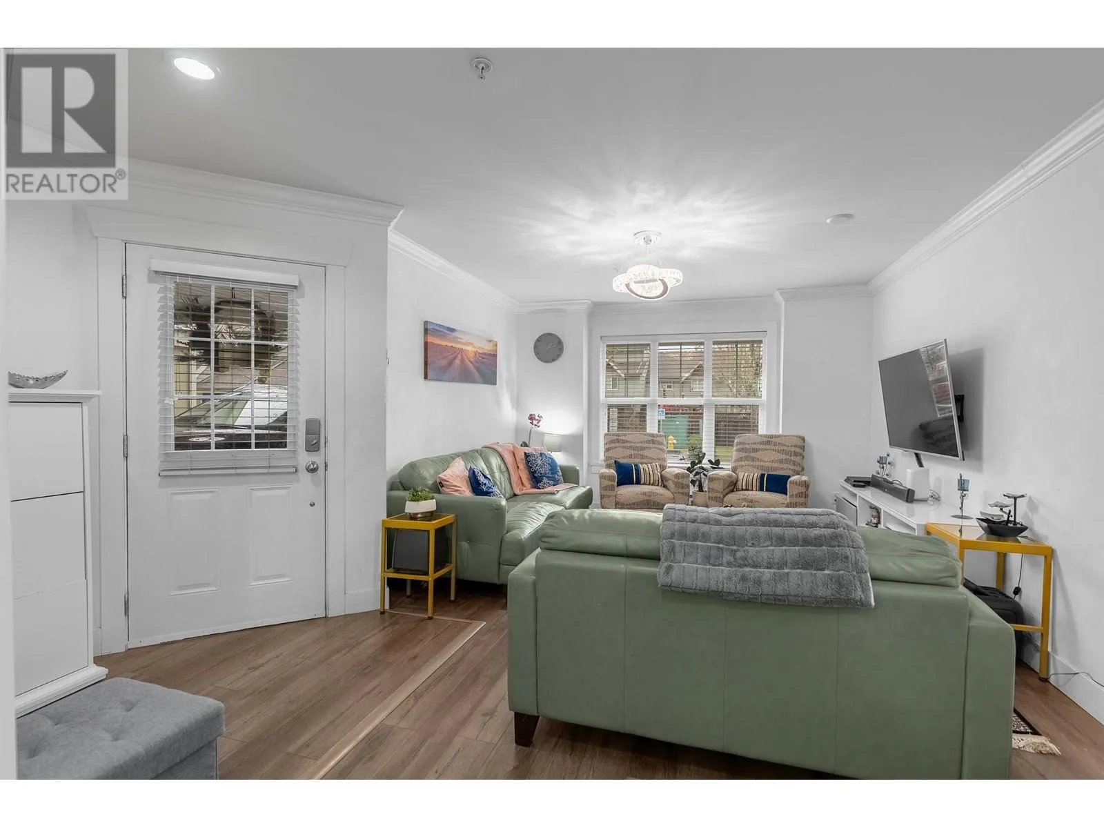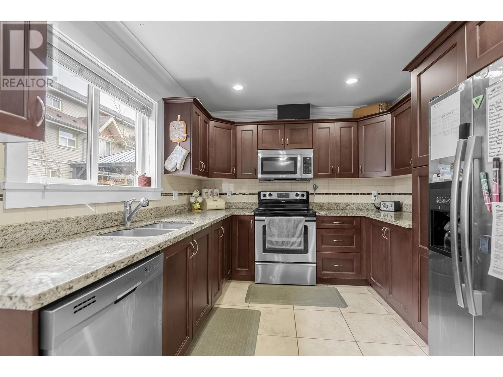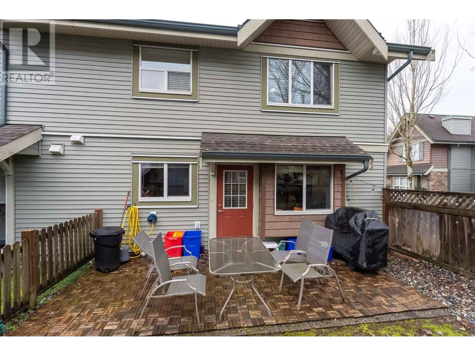 This beautiful corner unit will be perfect for your family. Featuring laminate flooring on main, granite counters, s/s appliances, modern cabinetry & crown molding throughout. Brand new carpets, freshly painted by professionals. Natural light streams through extra windows in this sprawling, hard to find 2 story floor plan on quiet side of complex. Fully fenced yard with patio off the kitchen is great for entertaining or watching the kids play. Spacious room sizes, master en-suite & walk in closet, laundry room with tub, single garage +1 parking on the apron. You will love the architectural design, family oriented complex & PRIME location! Walking distance to Valley Fair, Haney Mall, schools, parks, library, restaurants, transit & more. (id:27476)