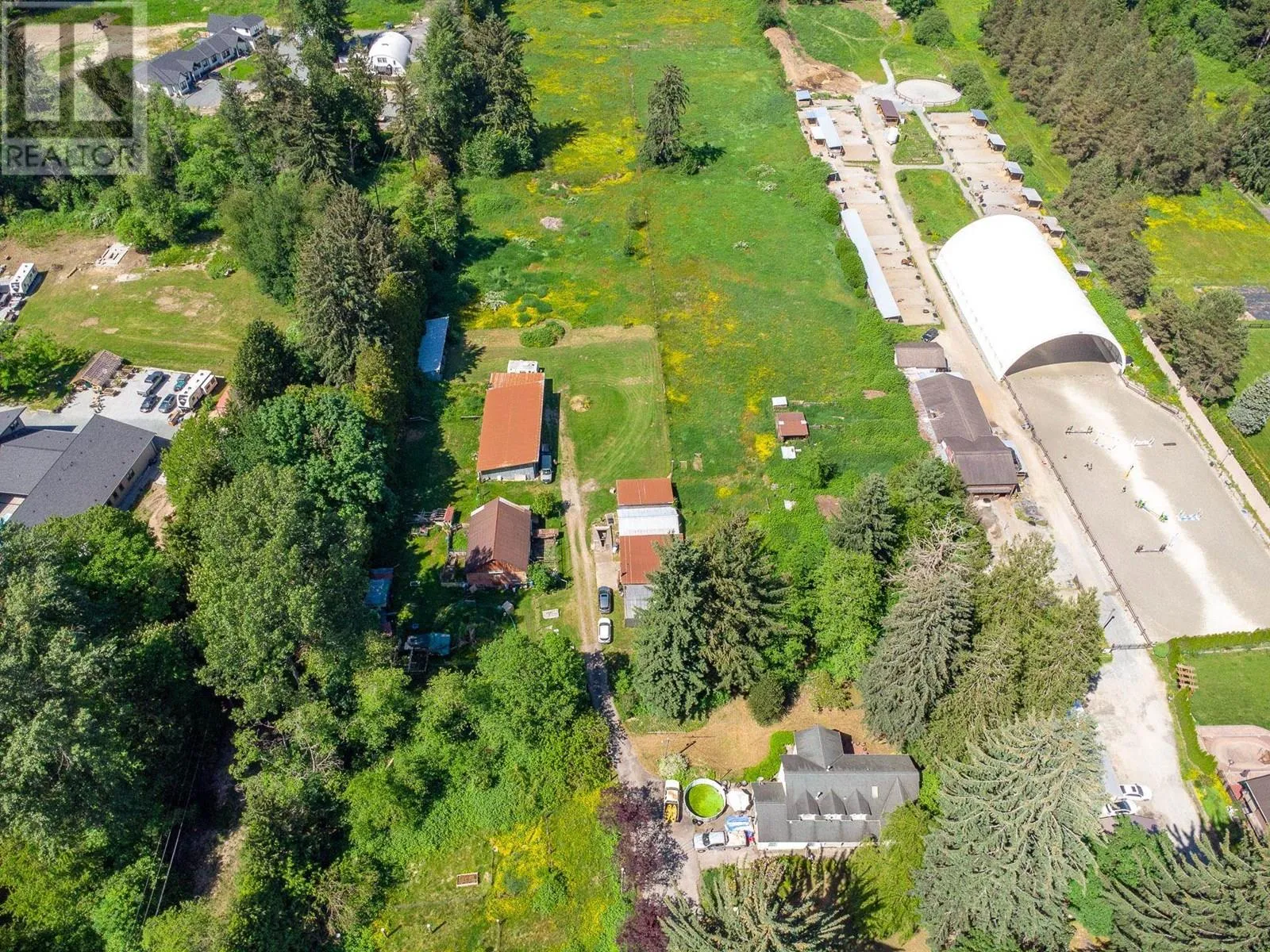 Discover a rare 9.11-acre flat lot in the sought-after Silver Valley! This exceptional property offer the perfect blend of a hobby farm lifestyle and convenient proximity to town and schools. Tucked away from the street, the charming 5-bedroom, 3-bathroom farmhouse provides peace and privacy. Highlights include barns, blueberry bushes, chicken coops, horse stalls, storage spaces, and a workshop, offering endless possibilities. In ALR, with septic and city water. Unleash the full potential of this expansive retreat and immerse yourself in the beauty of nature! (id:27476)