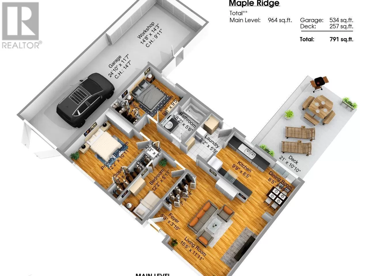 Small family or downsizer wanted ! Lovely rancher with many updates ready for a new adventure. Very stylish kitchen with grey shaker cabinets, trendy open shelving, quartz countertops, brass hardware & stainless appliances. Big bright living room with cozy gas fireplace. Dining room patio door leads to lush but low maintenance backyard, an impressive deck and a nice spot to relax. The front yard with raised beds is ready for planting. Attn: car enthusiasts & mechanics this property has a fully equip GARAGE and attached WORKSHOP that could convert to flex space. So close to Ridge Meadows Hospital, schools, shopping and transit. (id:27476)