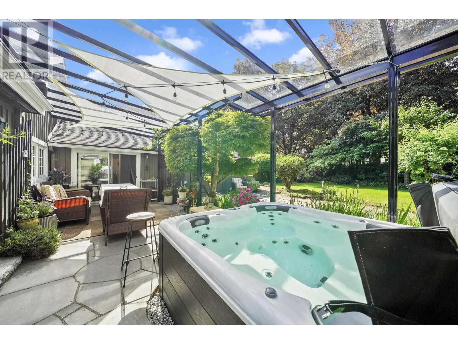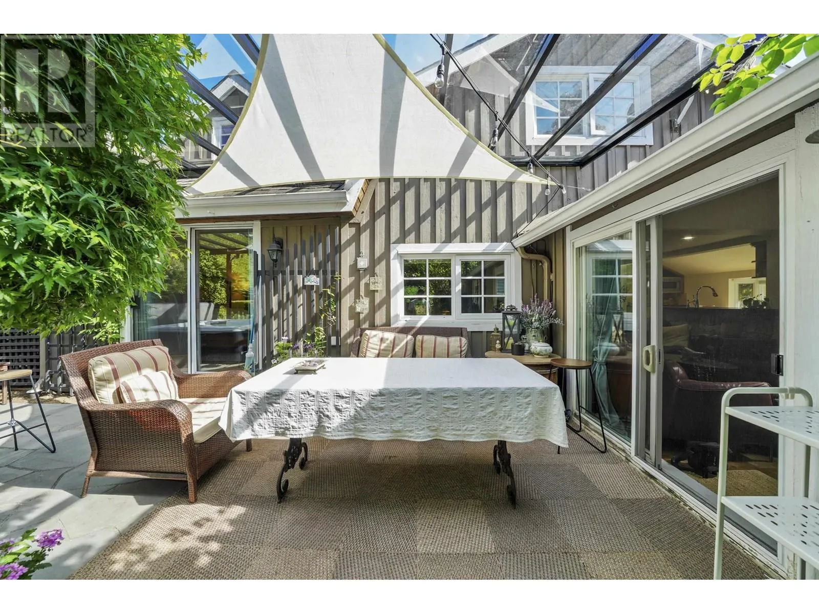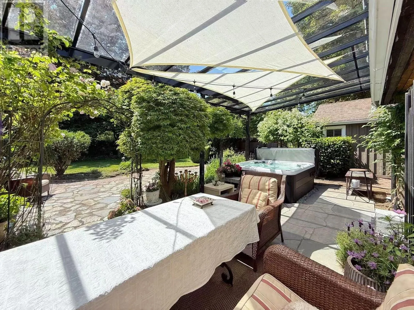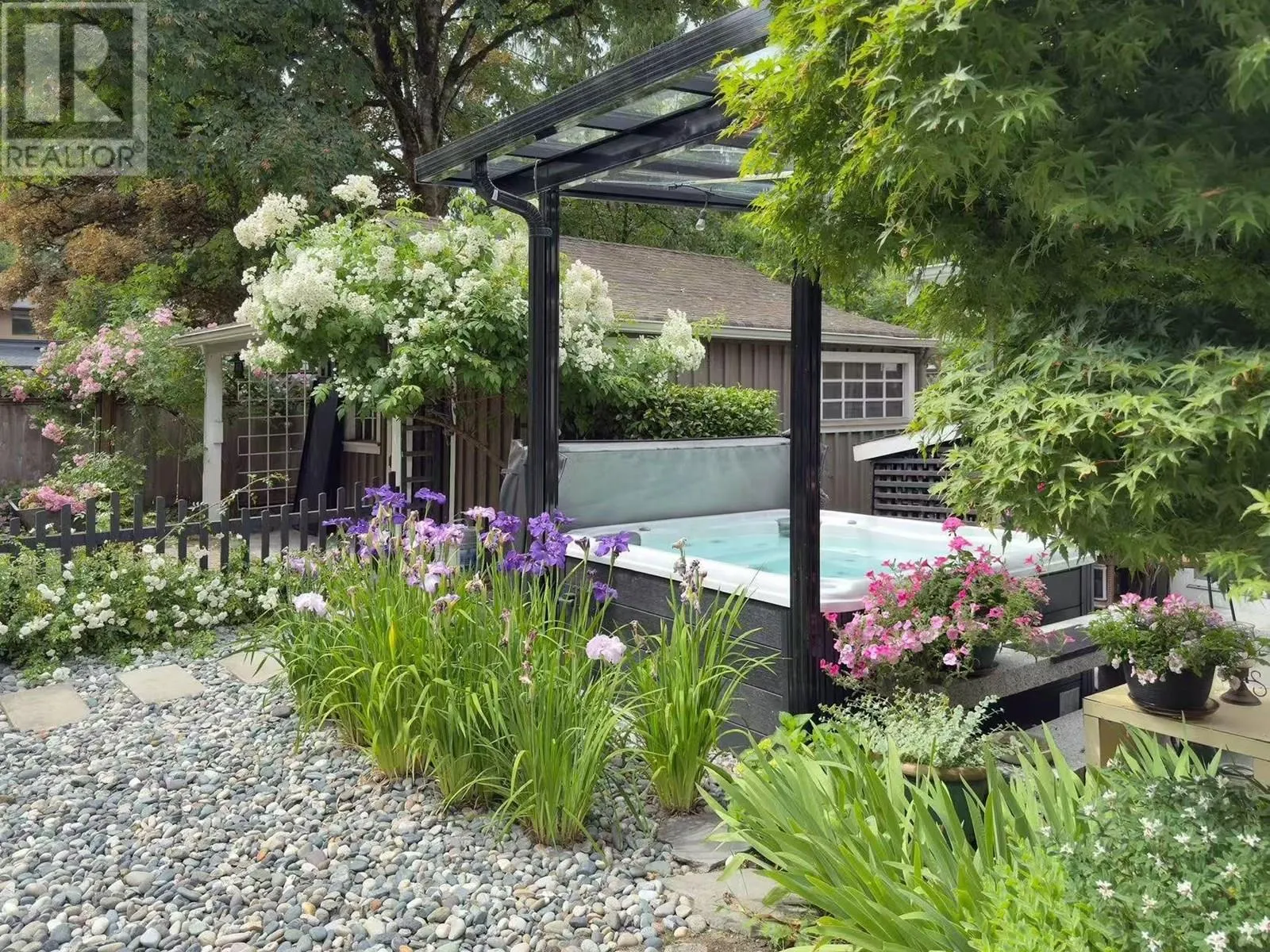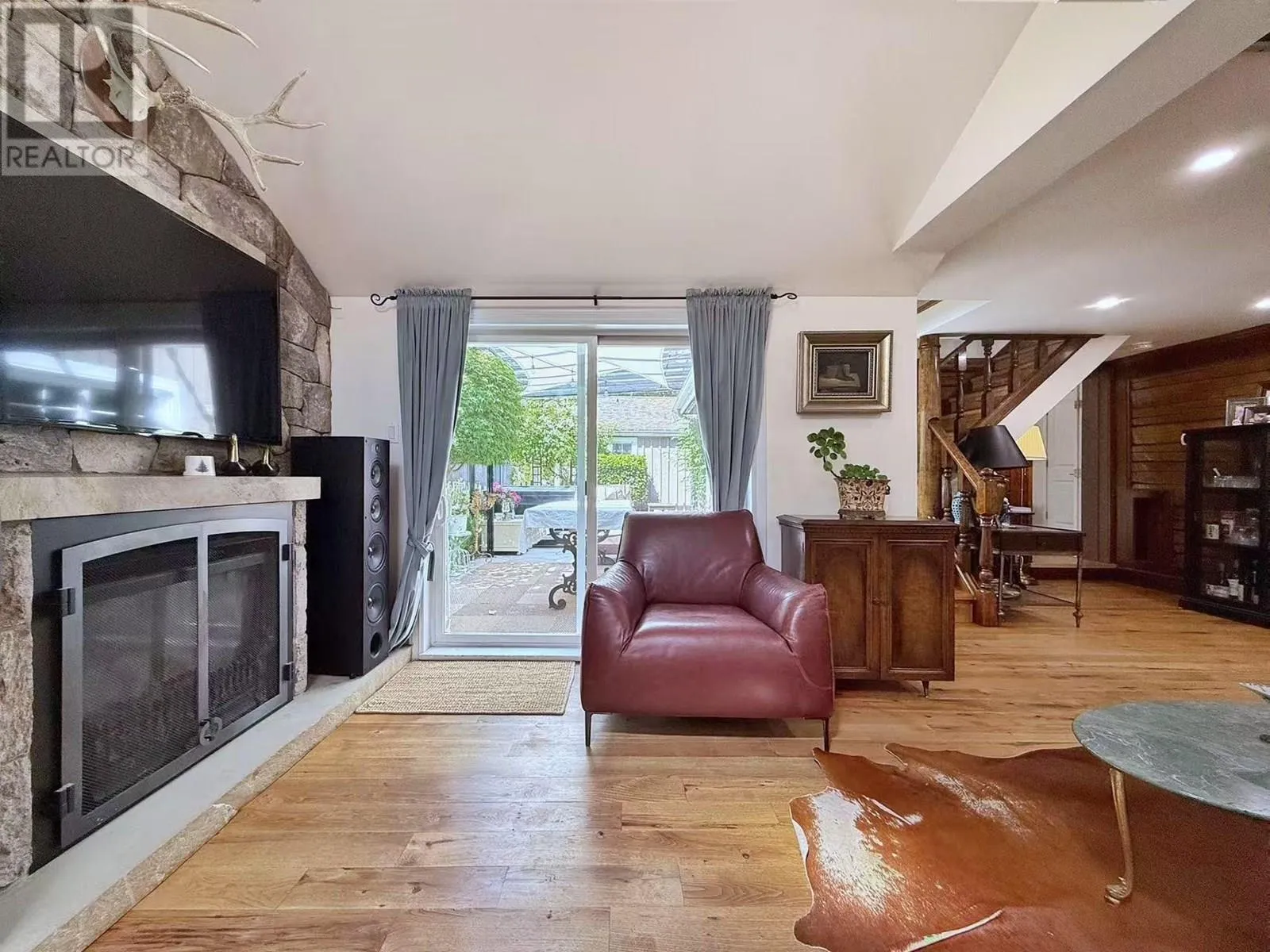Welcome to this charming home nestled on an 8,941 sq. ft. lot, blending timeless character with modern updates. Inside, you'll find a spacious laundry area with flex space, ideal for a home office. The open-concept living and dining area features real Hickory hardwood floors, heated Travertine tile, original stained glass accents, and a stunning timber feature wall. The kitchen boasts Italian granite counters, new stainless steel appliances, and a cozy breakfast nook with a bay window. The gas fireplace with custom mason stone wall adds warmth. With three bedrooms, including a master on the main floor, this home is designed for comfort. The west-facing, fully fenced backyard offers privacy, mature landscaping, a huge garden shed, new hot tub, basalt stone patio, and ample parking for toys. (id:27476)