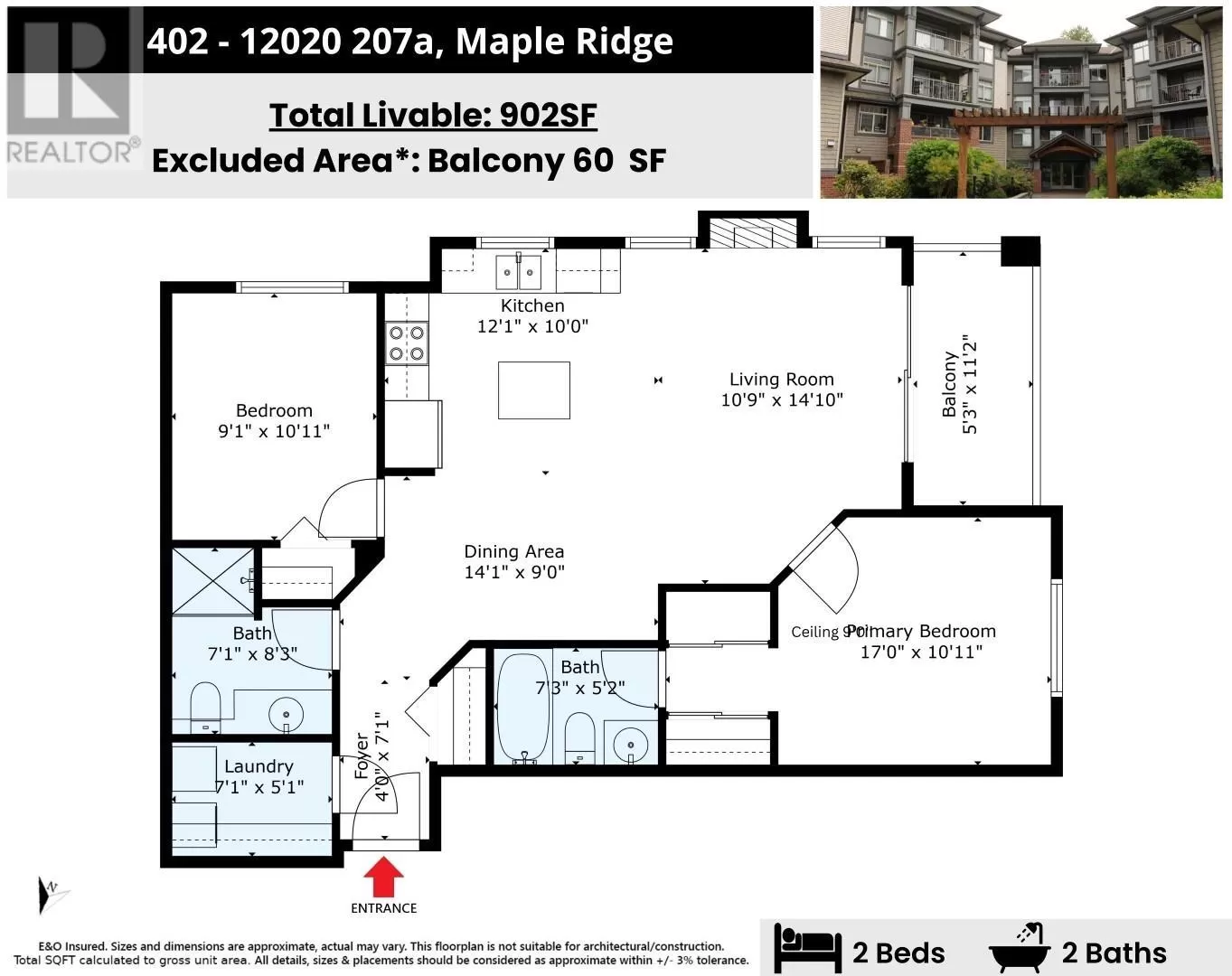 Stunning Top floor 2 bed 2 bath Penthouse. Corner unit with soaring 10ft ceilings, tons of natural light, stainless steel appliances & spacious layout. Walk to shops, dining & transit. Short distance to Golden Ears Bridge, Laity View and Fairview Elem and Westview Sec. Bright, modern and move in ready. Pets ok including big Dogs. Comes with 2 side by side underground parking spaces and a Storage Locker. Well run clean building - move in ready! The one you been waiting for. Open House Sun 2:00-4:00pm (id:27476)