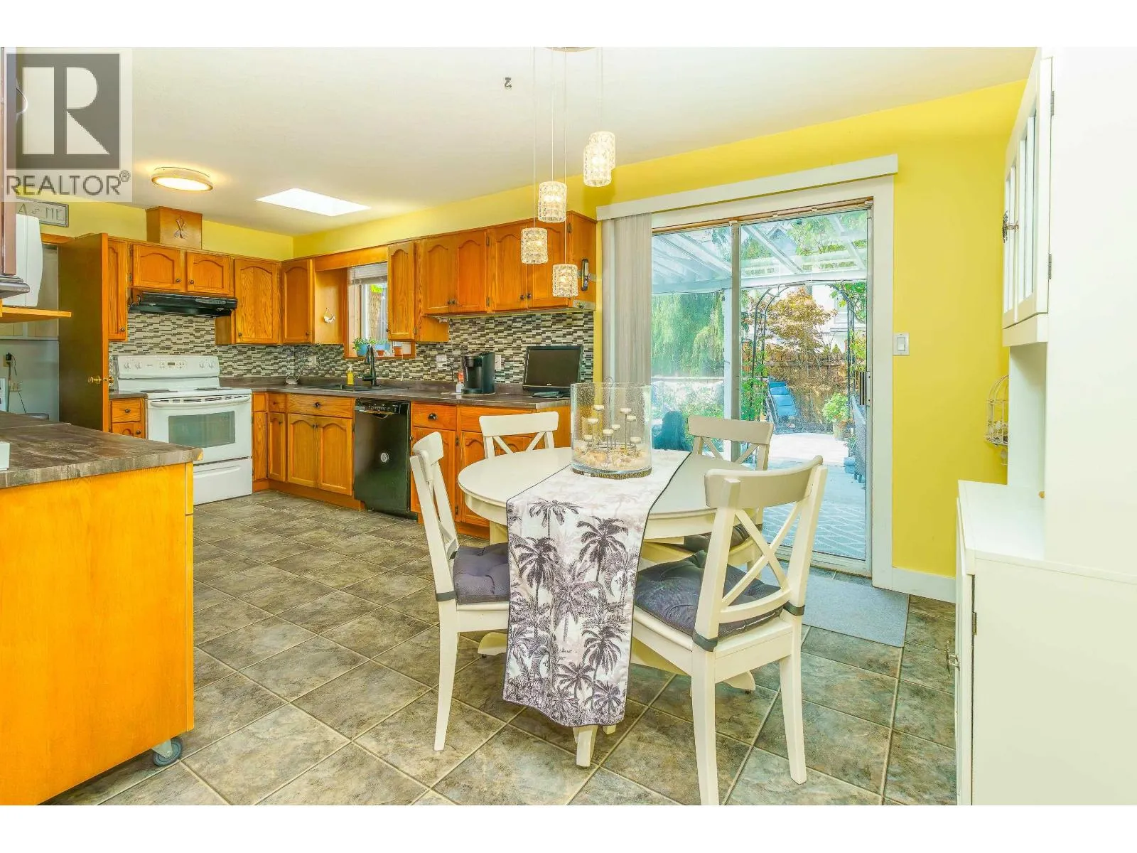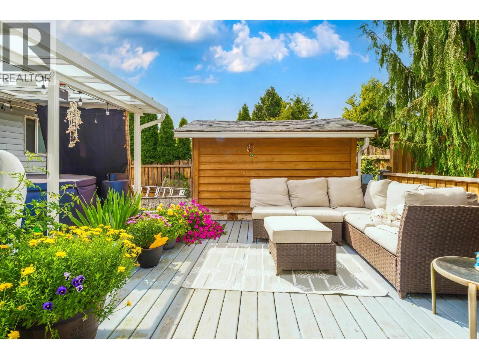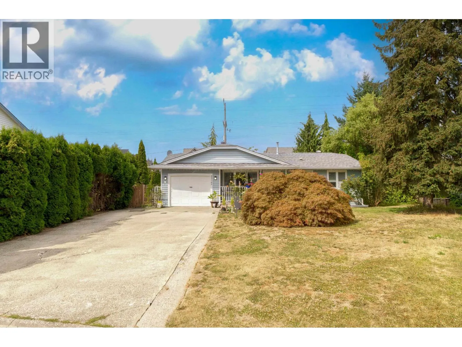 Welcome to this cozy and well maintained rancher, tucked away in a quiet cul de sac in a family friendly neighbourhood. This 3 bed 2 bath home offers over 1,000 square ft of bright, functional living space with an open concept layout that is warm and inviting. The spacious living room is perfect for family time, while the kitchen offers good storage and flow for daily living or entertaining. The primary bedroom includes a full ensuite, and all bedrooms are comfortably sized. Updates include a 4 year old hot water tank, a roof under 10 years old, and a 3 year old covered patio for year round enjoyment. The fully fenced backyard is private and peaceful, with mature trees and space to garden or play. Walkable to Alexander Elementary, parks, shopping, and transit, this home is a 10! (id:27476)