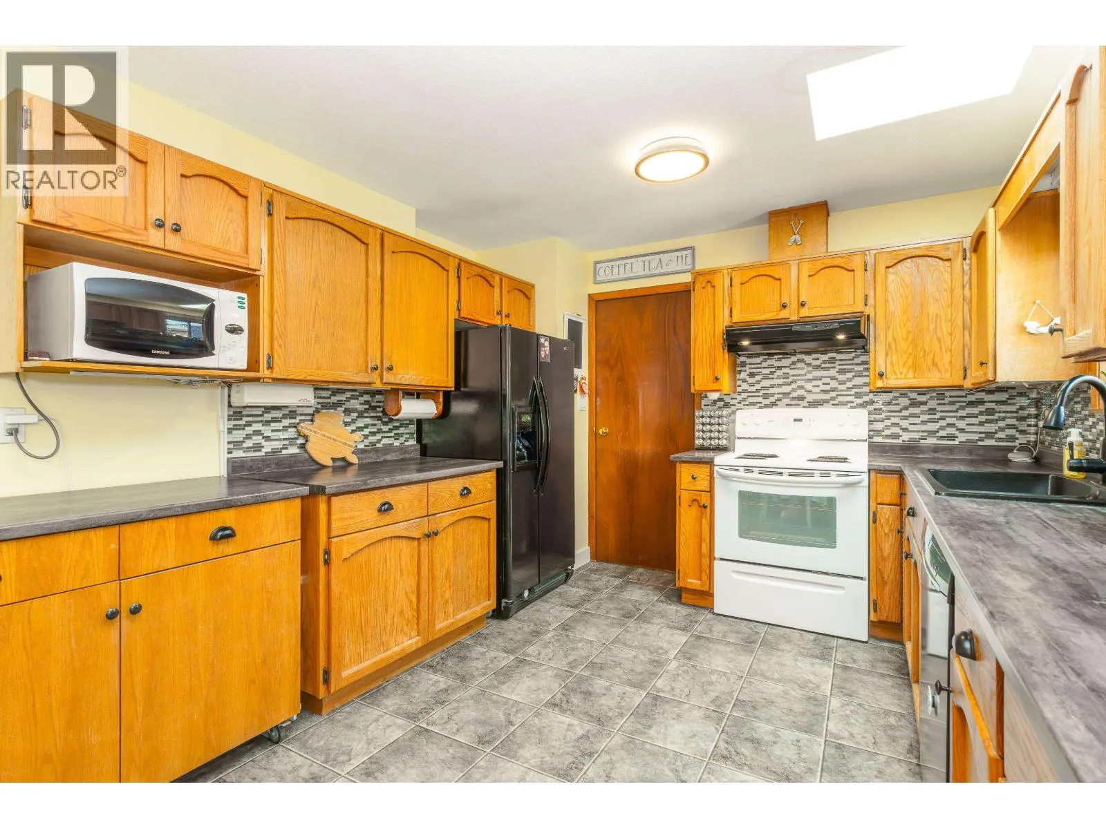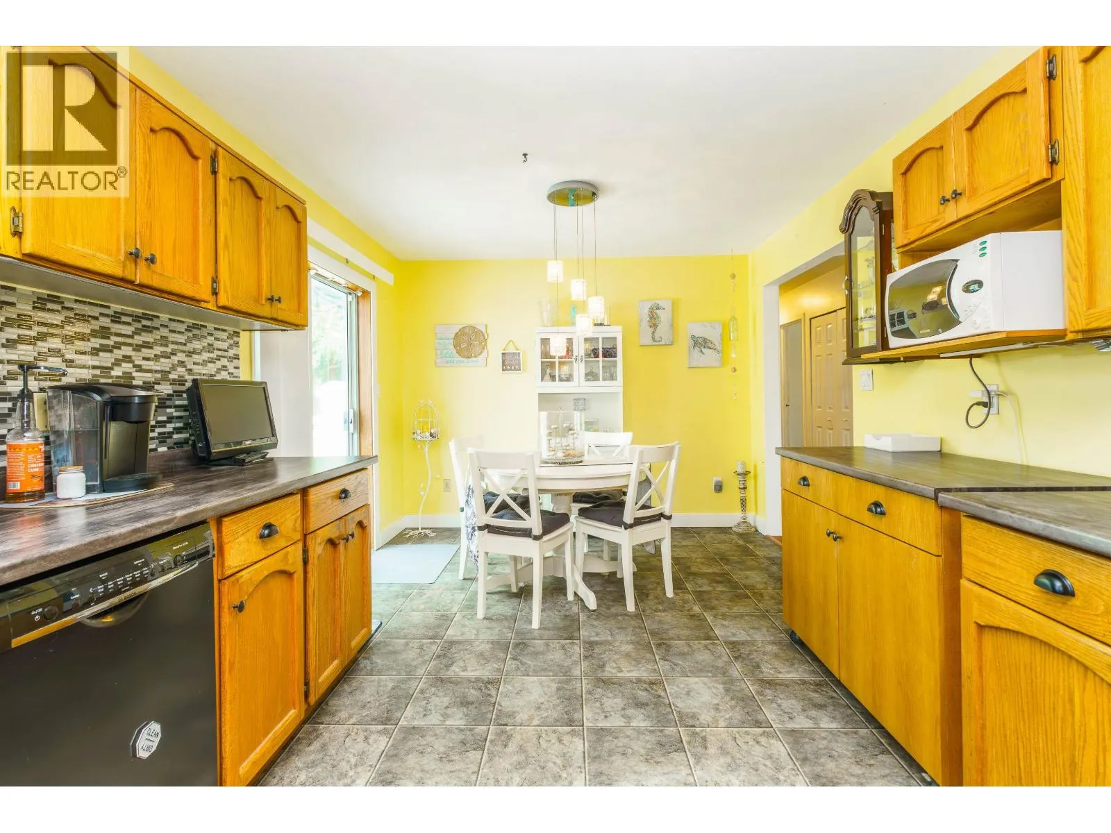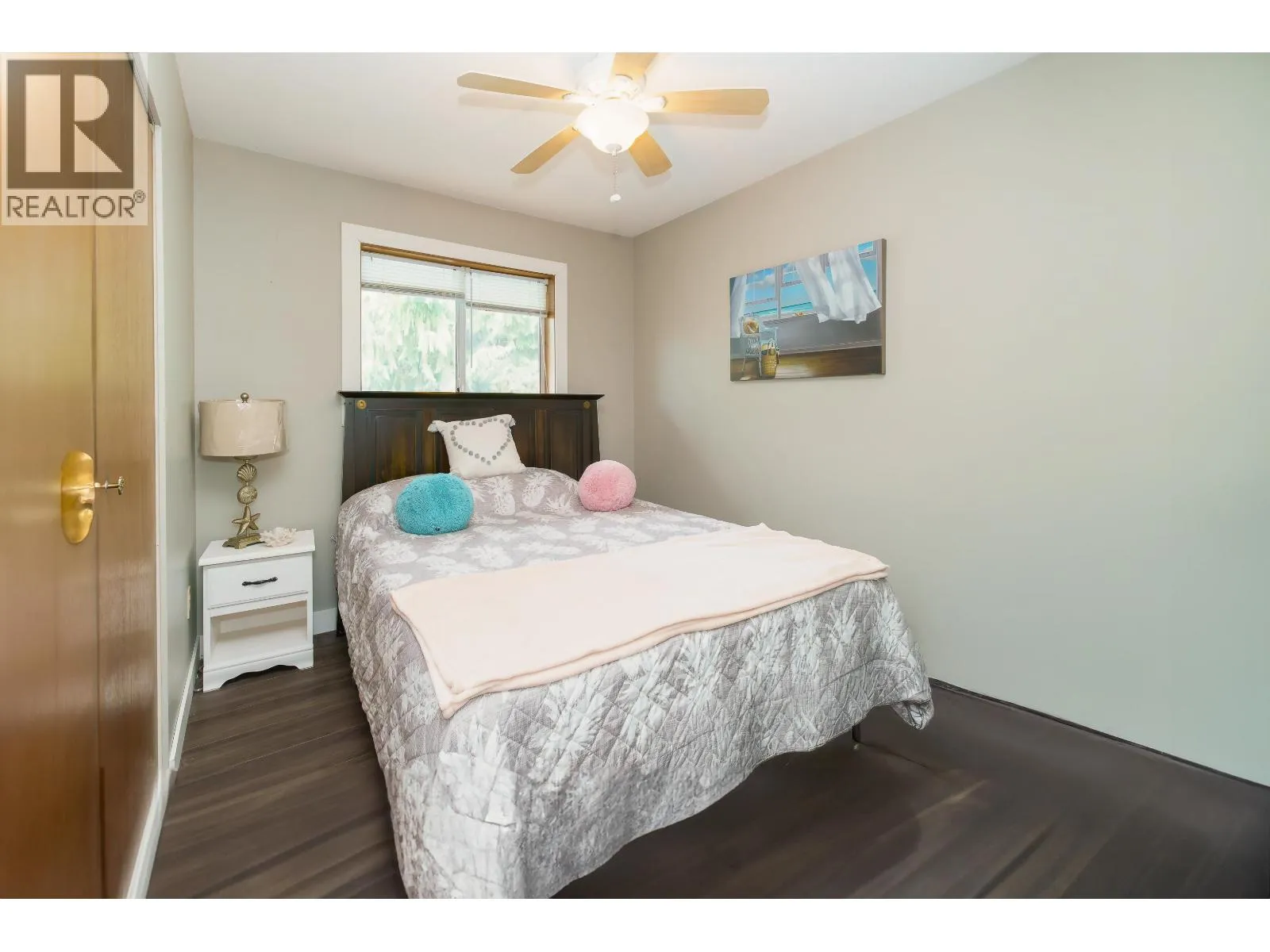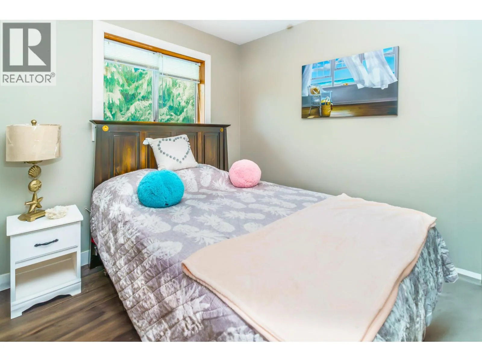 Welcome to this cozy and well maintained rancher, tucked away in a quiet cul de sac in a family friendly neighbourhood. This 3 bed 2 bath home offers over 1,000 square ft of bright, functional living space with an open concept layout that is warm and inviting. The spacious living room is perfect for family time, while the kitchen offers good storage and flow for daily living or entertaining. The primary bedroom includes a full ensuite, and all bedrooms are comfortably sized. Updates include a 4 year old hot water tank, a roof under 10 years old, and a 3 year old covered patio for year round enjoyment. The fully fenced backyard is private and peaceful, with mature trees and space to garden or play. Walkable to Alexander Elementary, parks, shopping, and transit, this home is a 10! (id:27476)