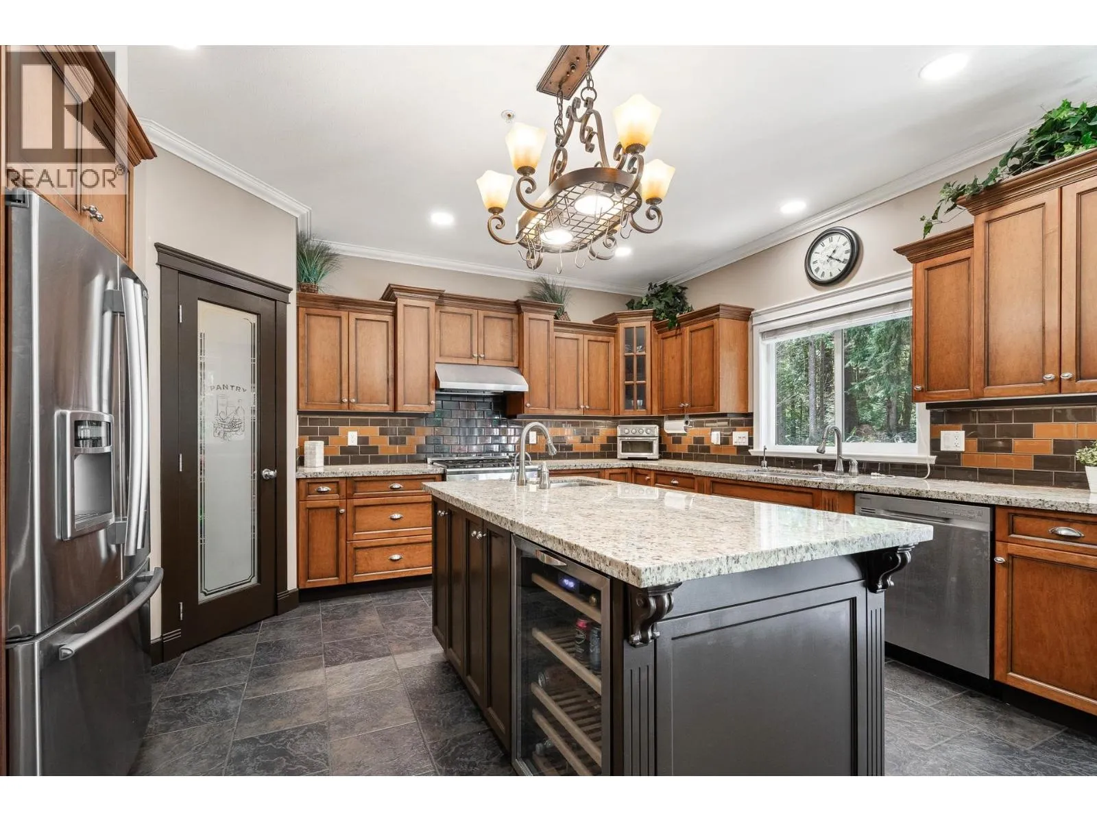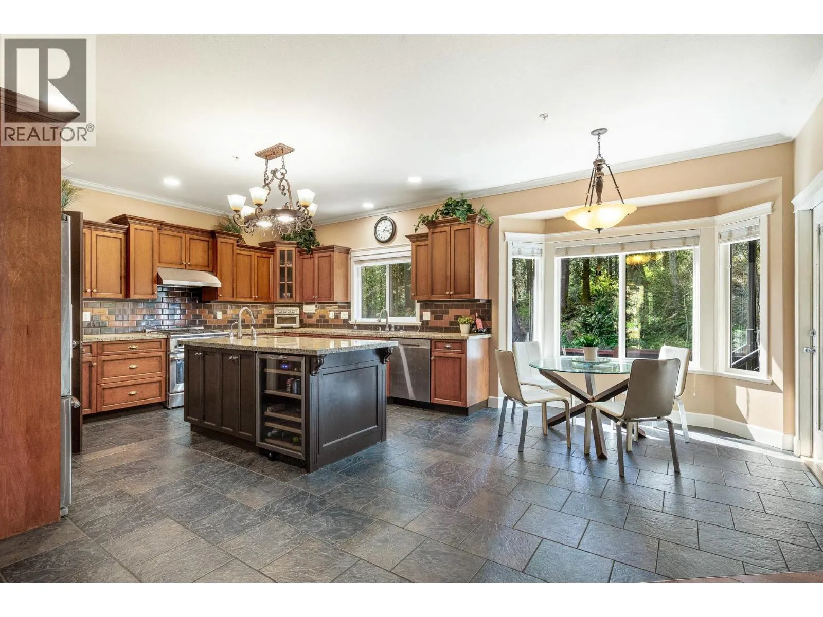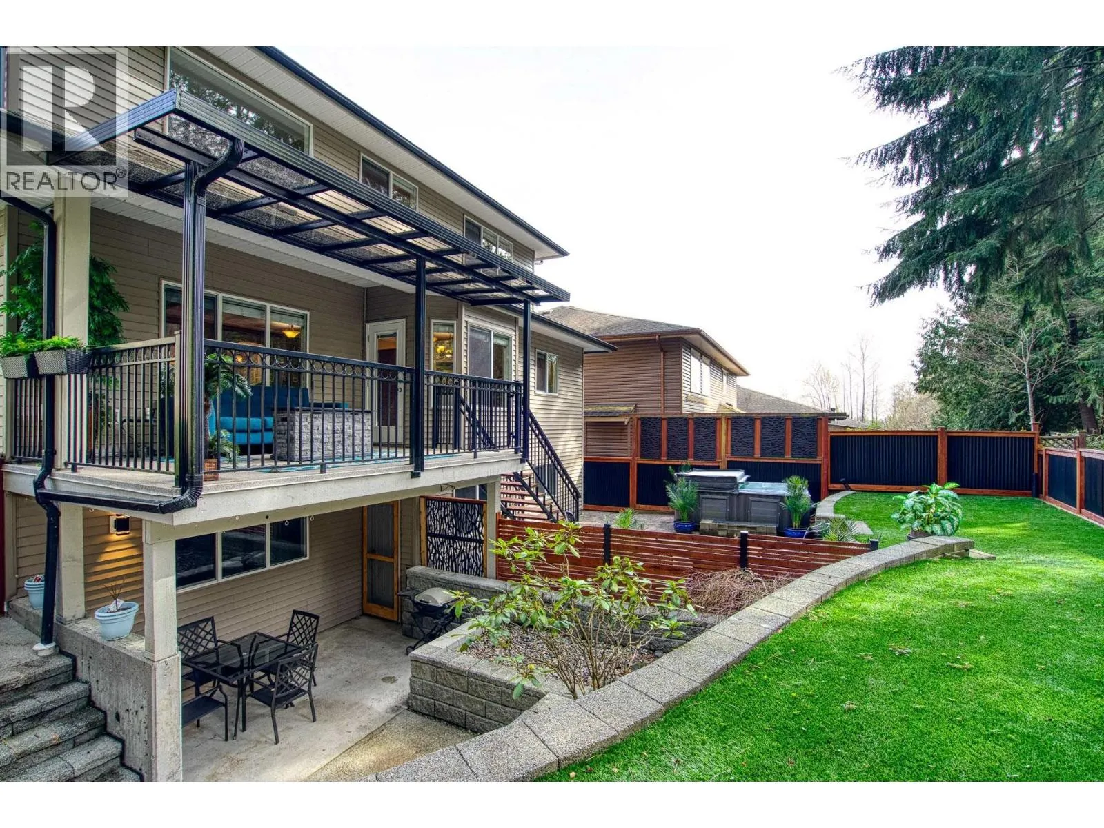 Silver Valley luxury home with forested greenbelt view, 6-car + RV parking, transit access, and easy 5 min. stroll to river. Features main-level entry with walk-out basement to a private fenced yard. Premium upgrades throughout include; On-Demand HW, central AC, hardwood floors, cathedral ceilings, crown mouldings, stone mantel gas fireplace, porcelain tile, & custom Italian cabinetry. Kitchen features maple shaker cabinets, granite counters, & built-in wine cooler. The covered glass patio leads to the low maintenance yard, stamped concrete patio, oversized hot tub, and forest views. The large bsmt suite has separate parking, private patio and independant laundry. Home is a short drive to Golden Ears Prov . Park. This was originally the builer´s own custom home. Move- in ready (id:27476)