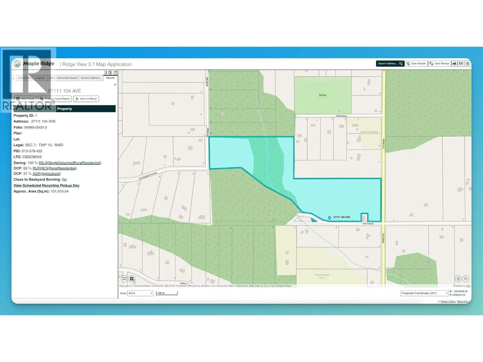37 ACRES, 3 ROAD FRONTAGES, RS3 zoning with only approximately ½ of the lands in the ALR. 1st time on the market. Features mostly flat, usable acreage with endless potential. Property presents a tremendous opportunity for agricultural use, investment, or exploring future development possibilities. A unique chance to secure a large parcel in a highly desirable location, close to nature, & recreation only 10 minutes from downtown Maple Ridge. Don't miss this unique opportunity!! (id:27476)