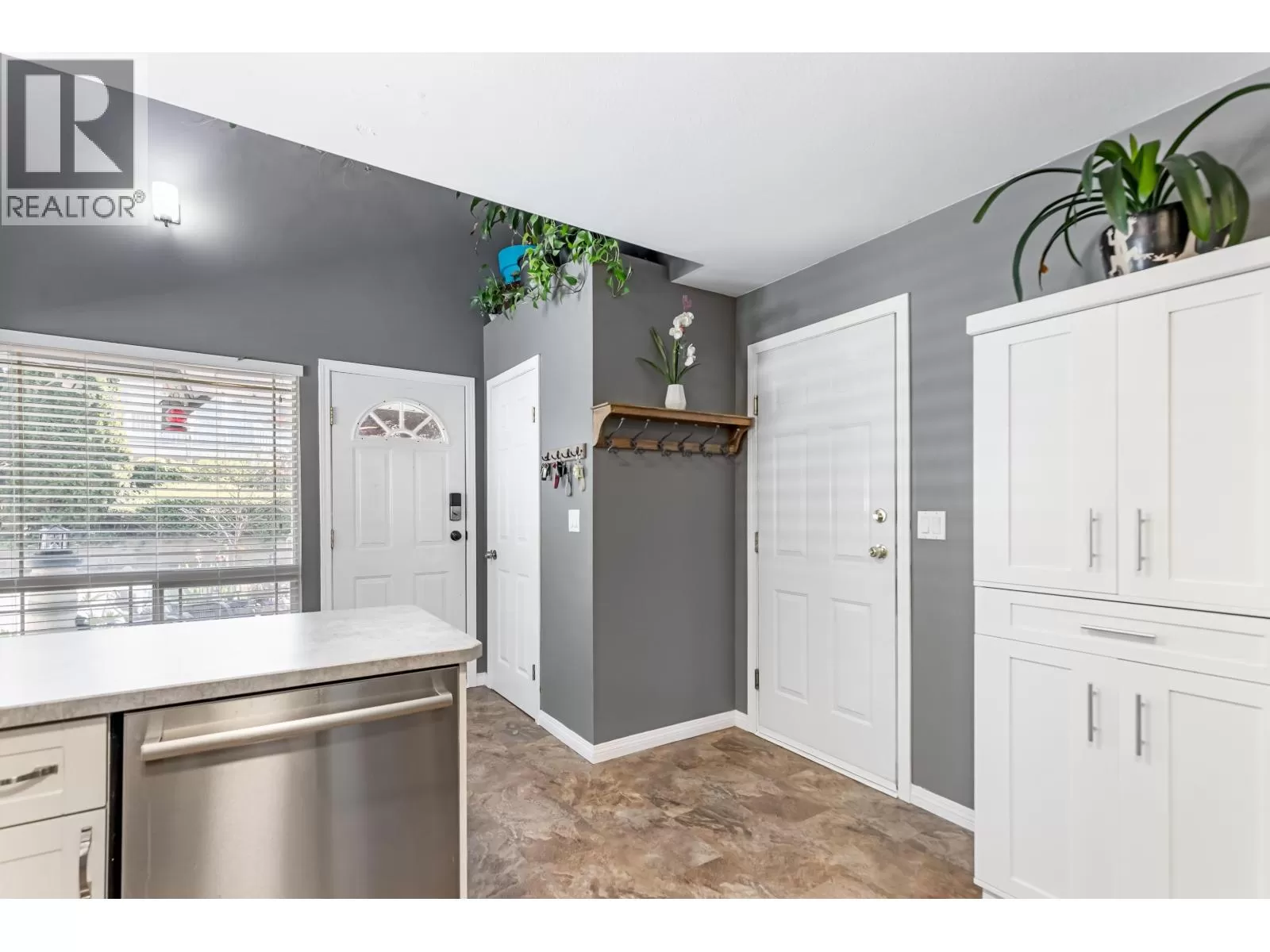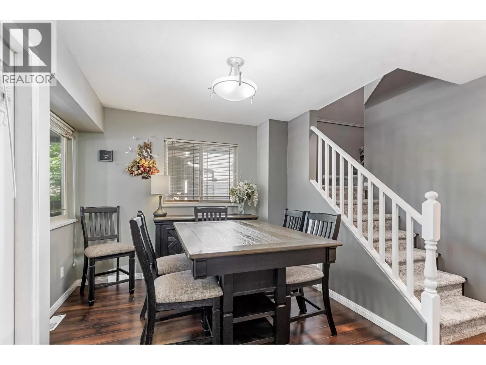 WELCOME TO ABERNETHY LANE! This BRIGHT and WELL-MAINTAINED 2-LEVEL END UNIT townhome features 3 LARGE BEDROOMS plus a FLEX/DEN area and 2.5 BATHROOMS. Enjoy a SPACIOUS layout with an UPDATED KITCHEN, OPEN-CONCEPT LIVING & DINING areas, and a COZY GAS FIREPLACE. Upgrades include a NEWER WASHER & DRYER, FRIDGE, and DISHWASHER (2021). The PRIMARY BEDROOM offers VAULTED CEILINGS and ample closet space. Includes 2 PARKING SPACES, one in the SINGLE-CAR GARAGE. Located in a FAMILY-FRIENDLY complex near SHOPPING, SCHOOLS, TRANSIT, AMENITIES, and the ABERNETHY CONNECTOR. A FANTASTIC HOME in a GREAT LOCATION! (id:27476)