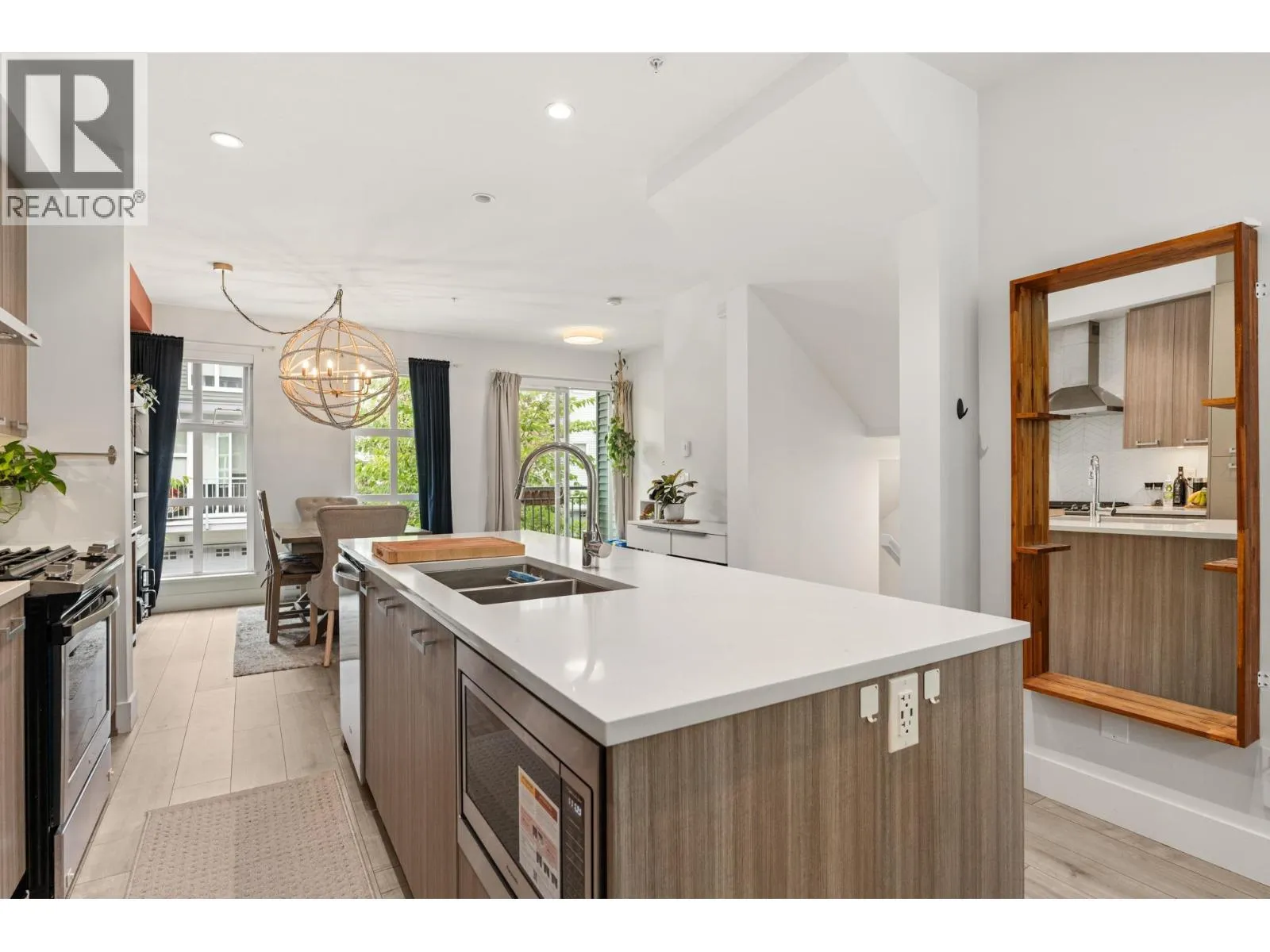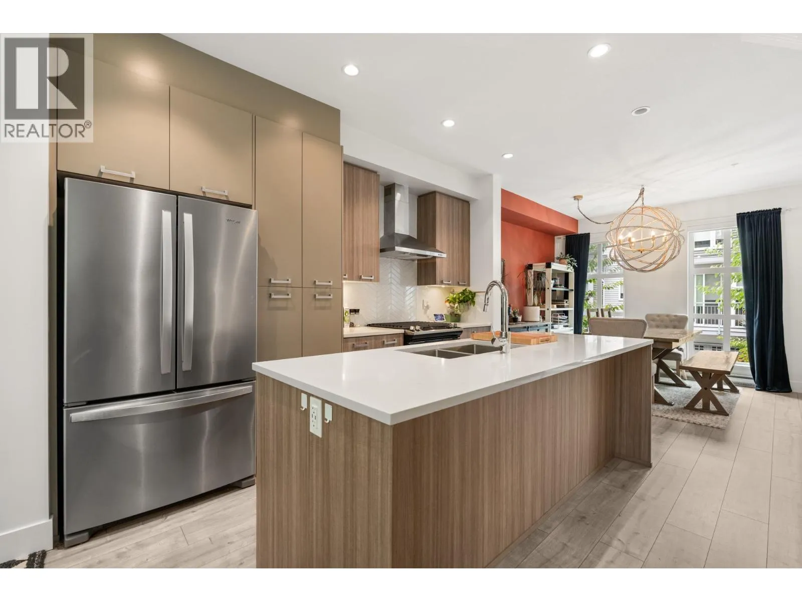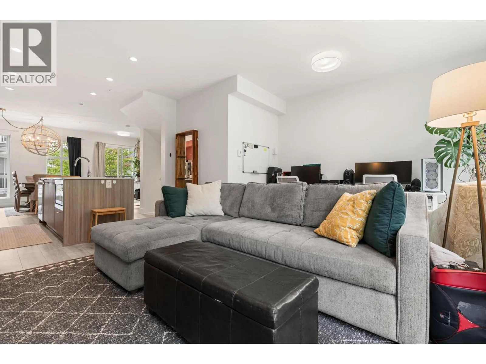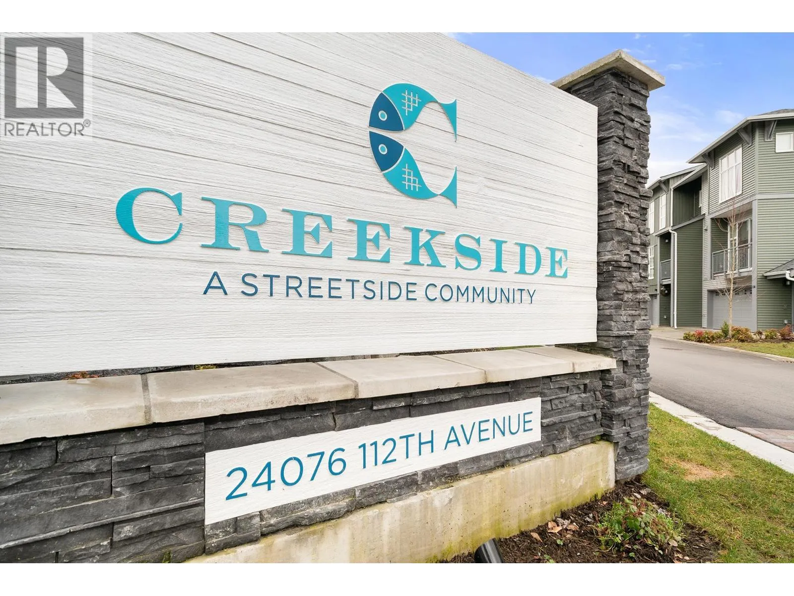 A Must-see at Creekside townhome backing onto greenbelt, built by award winning Streetside Developments. You'll love the full-height windows allowing natural light to brighten up the wide open floor plan. Living room features custom built in cabinets & adjacent office workspace plus east facing deck, overlooking protected forest. Enjoy a BBQ with natural gas hookup. Spacious dining room with custom chandelier can host large family gatherings, and the main floor powder room is nicely tucked away for privacy. The Master bedroom features high ceilings, walk-in closet and ensuite with 2 sinks plus an oversized walk-in-shower. The large garage accommodates two vehicles & EV charging, room for a workshop, home gym, or extra storage. Enjoy privacy in the fully fenced yard bordering the greenspace. (id:27476)