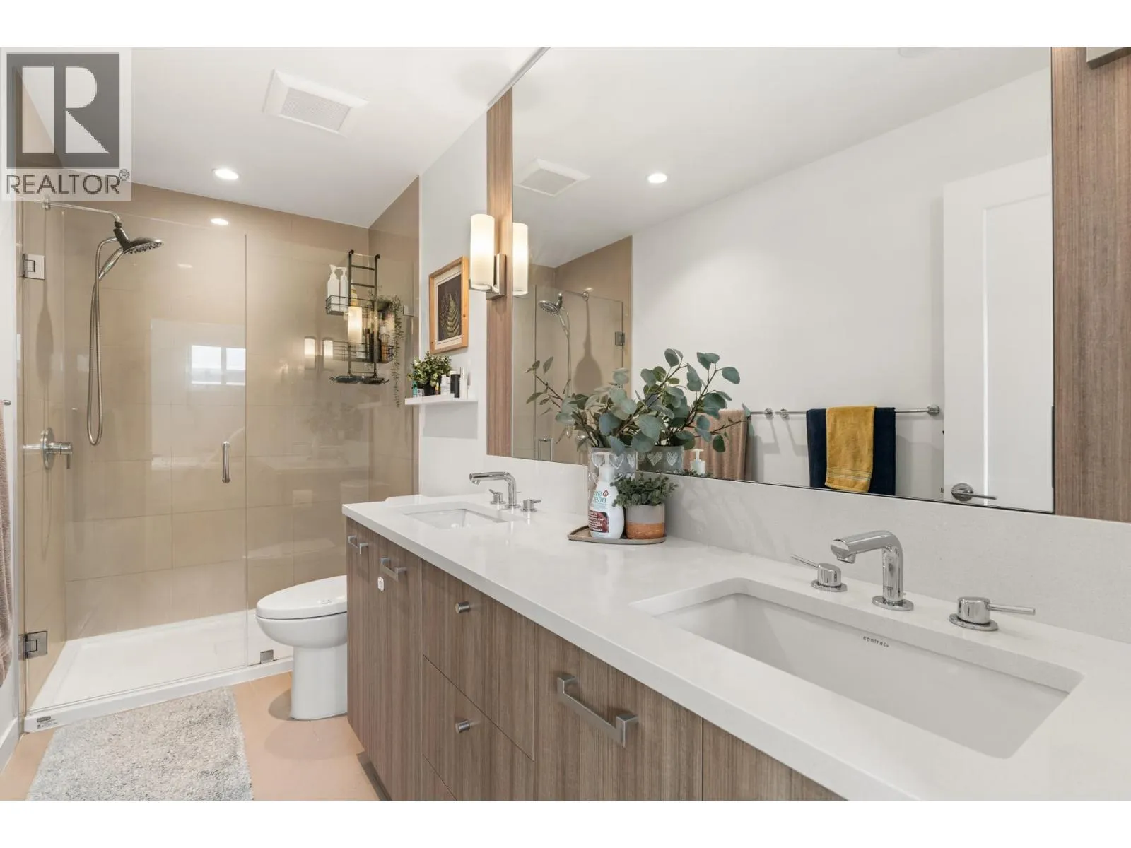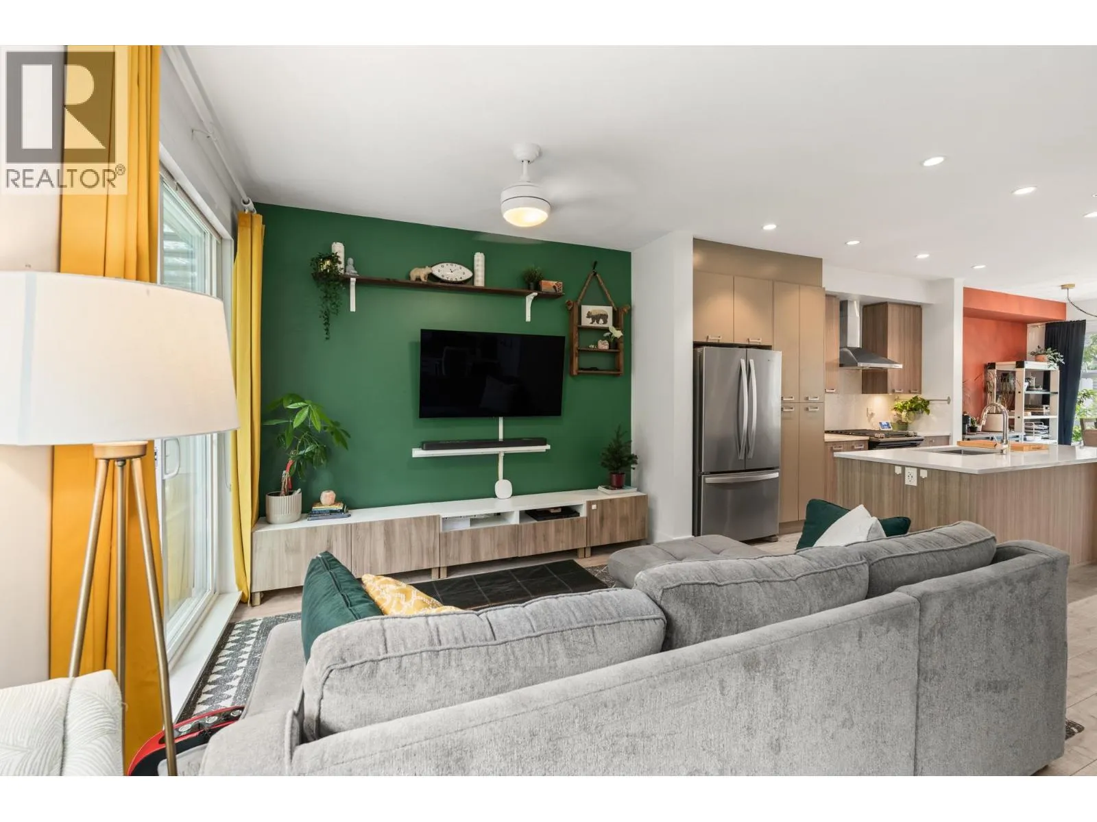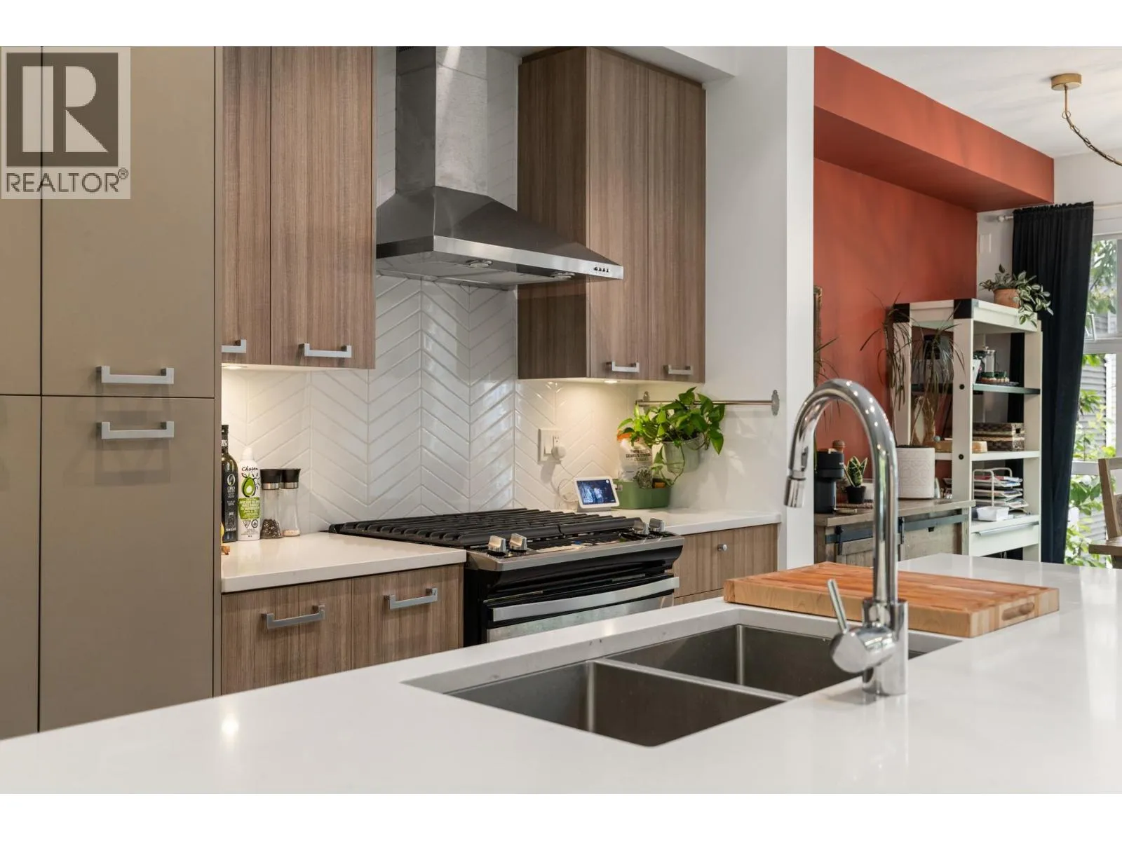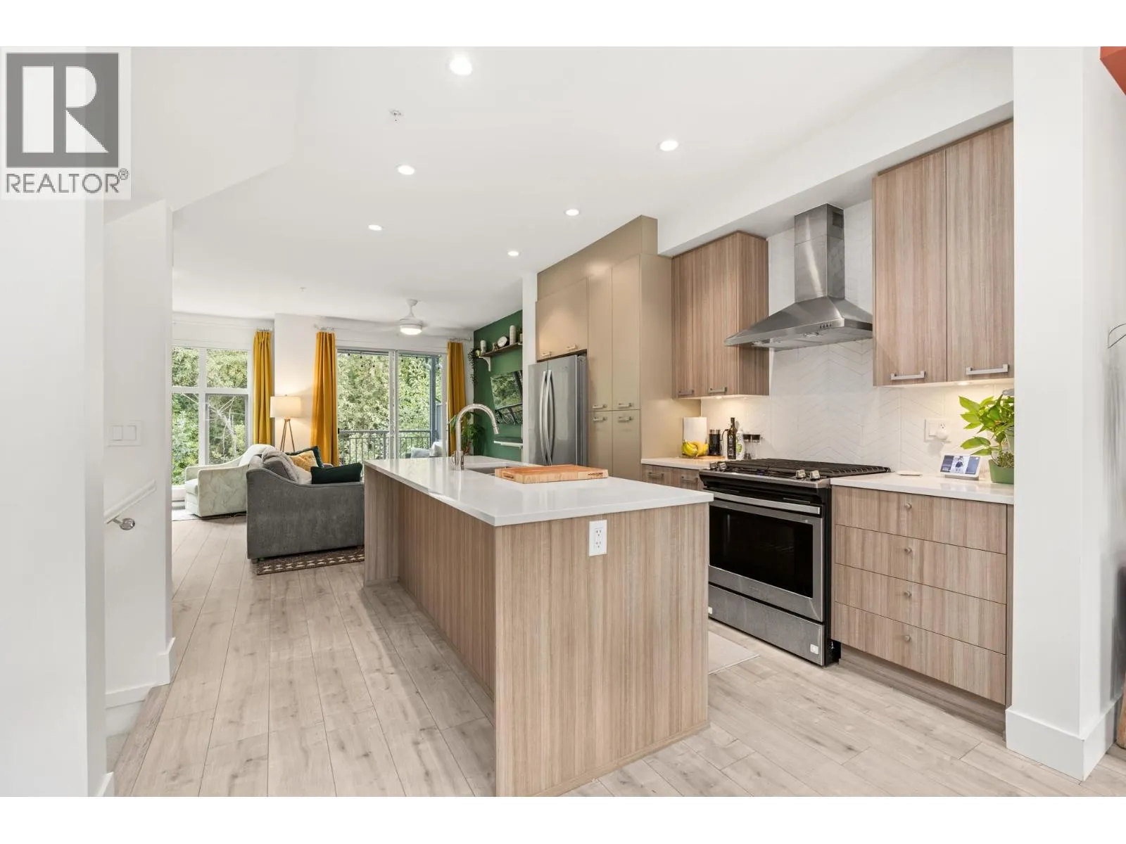 A Must-see at Creekside townhome backing onto greenbelt, built by award winning Streetside Developments. You'll love the full-height windows allowing natural light to brighten up the wide open floor plan. Living room features custom built in cabinets & adjacent office workspace plus east facing deck, overlooking protected forest. Enjoy a BBQ with natural gas hookup. Spacious dining room with custom chandelier can host large family gatherings, and the main floor powder room is nicely tucked away for privacy. The Master bedroom features high ceilings, walk-in closet and ensuite with 2 sinks plus an oversized walk-in-shower. The large garage accommodates two vehicles & EV charging, room for a workshop, home gym, or extra storage. Enjoy privacy in the fully fenced yard bordering the greenspace. (id:27476)