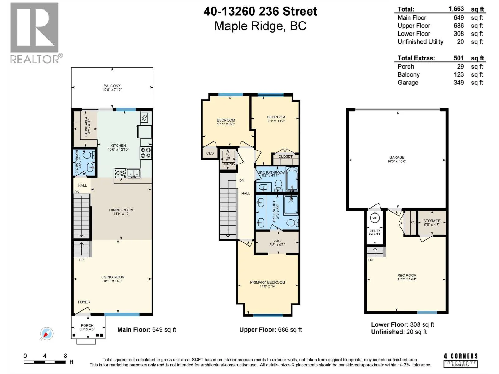 Welcome to Archstone Rockridge ~ a beautifully upgraded 3-bed, 3-bath townhome in sought-after Silver Valley. The open~concept main floor features a sleek kitchen with stainless steel appliances, custom built~in nook with extra storage & additional cabinetry added to maximize space + access to a sunny balcony for relaxing or entertaining. Upstairs offers 3 bdrms, including a spacious primary with a California Closets walk-in & spa-inspired ensuite. The lower level boasts a flex space perfect for a home office or gym & a custom pantry/storage room with added shelving & cabinetry for ultimate organization. Enjoy direct access to a huge green space, ideal for kids, pets, or outdoor living. Double garage + full driveway, all just steps from trails, Wild Play, Maple Ridge Park & Alouette River. (id:27476)