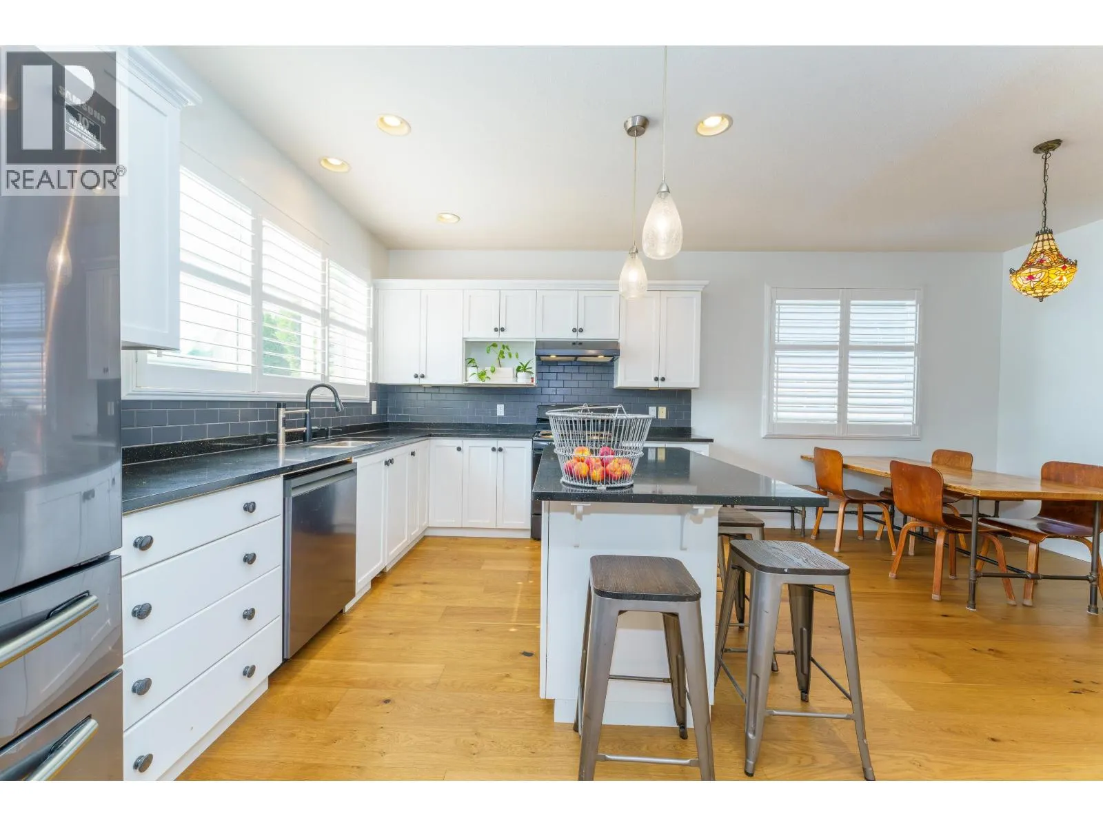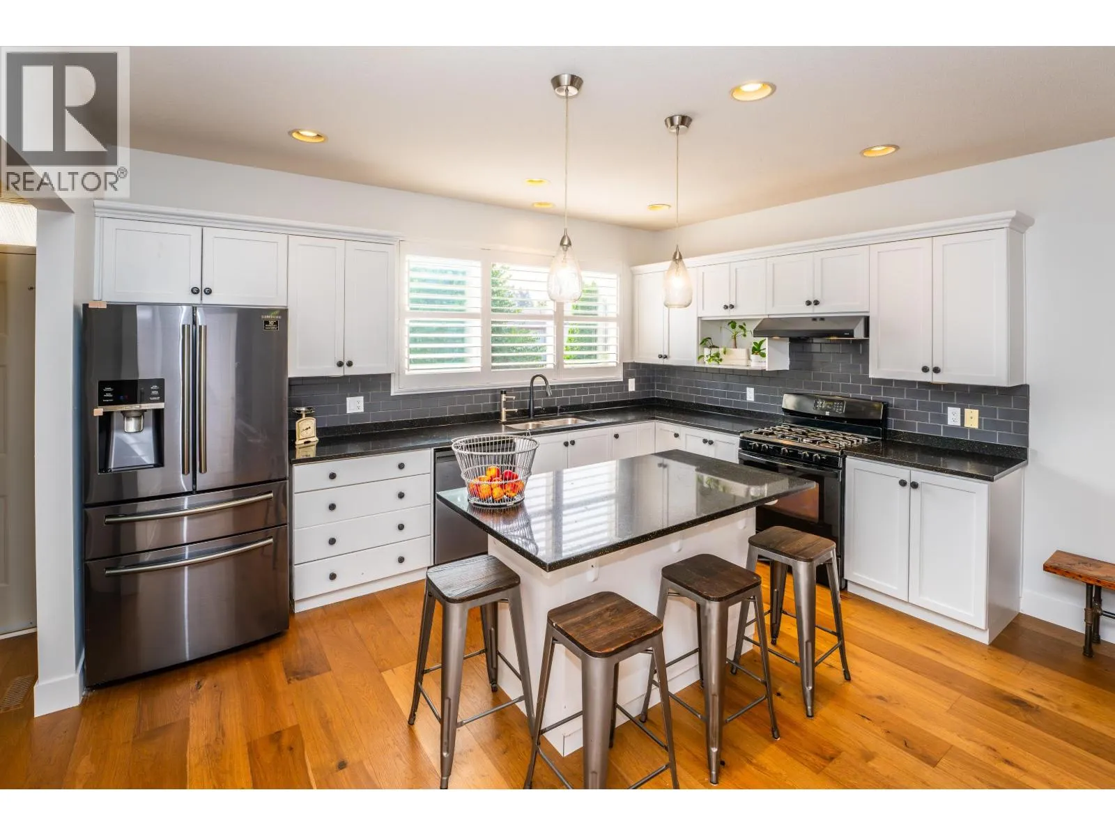 Only 12 homes on this secluded greenbelt street! Forest view from front veranda and primary bedroom. Ample parking and sun, walking distance to schools, rec centre, and shops. So many upgrades in this spacious open plan - new wide plank wood floors, all new paint in and out, new roof and furnace, fabulous '5-star hotel´ bathroom reno, gas stove and fireplace, new dishwasher, custom window shutters throughout. Three spacious bedrooms up, 4 bathrooms, plus finished basement with separate entrance, kitchen roughed in for easy suite. Back alley access for additional parking, outbuildings, or a garage. Super clean, nothing to do but move in! (id:27476)