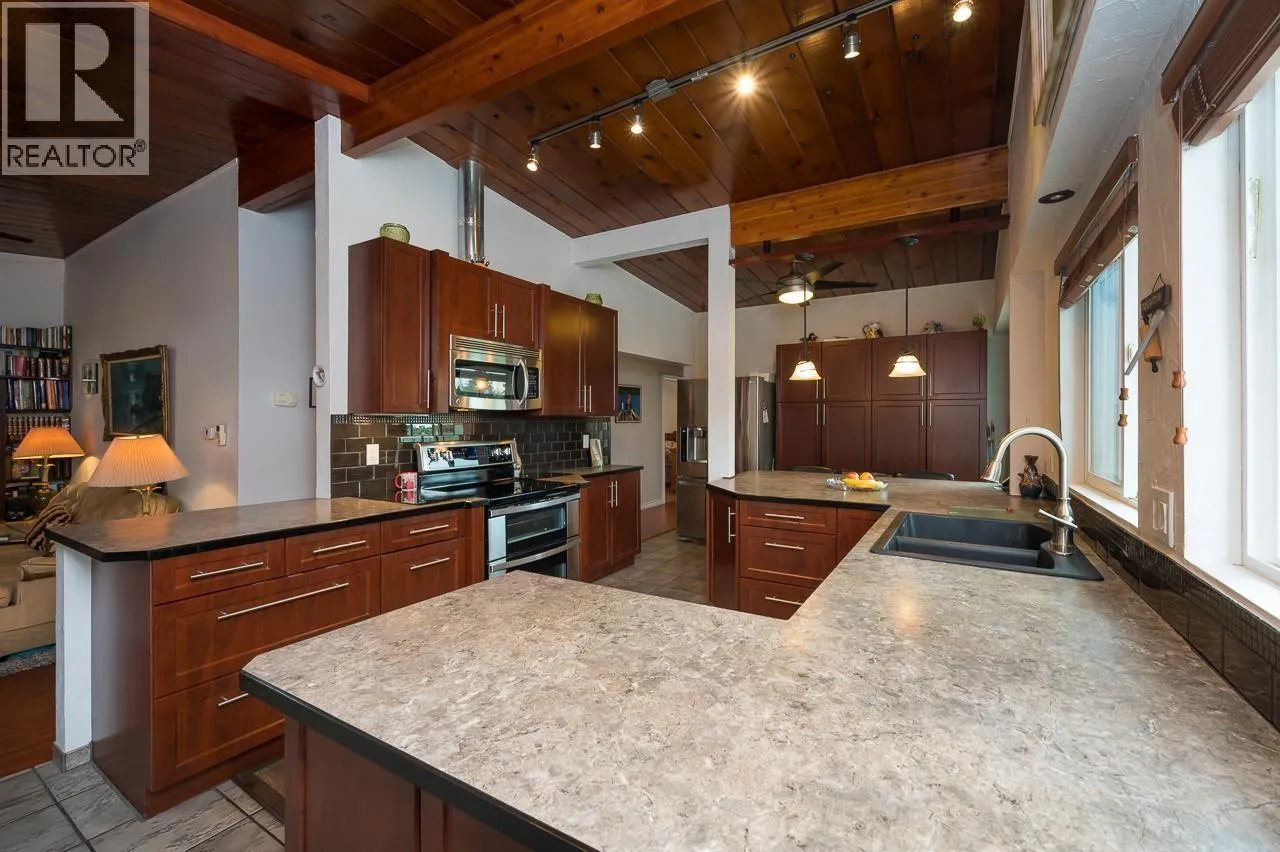 Daycare & Development Potential! Build a 3-plex or 4-plex on this huge, beautifully maintained rectangular lot (check with the city for options). This lovingly updated 3-bedroom + den, 2-bath rancher is move-in ready and waiting for your furniture. The home features a spacious kitchen, eating area, and pantry with beautiful cabinetry, stainless-steel appliances, and ample counter space. The open-concept design seamlessly connects the kitchen, eating area, living room, and dining room, enhanced by vaulted ceilings, rich wood beams, and a cozy gas fireplace with a contemporary rock façade.Generous bedroom sizes and two updated bathrooms offer comfort for the whole family. Outdoors, enjoy the large covered deck, BBQ area, and hot tuB, perfect for entertaining along with lush grapevines and fruit trees for the gardening enthusiast. Don´t miss this rare opportunity! (id:27476)