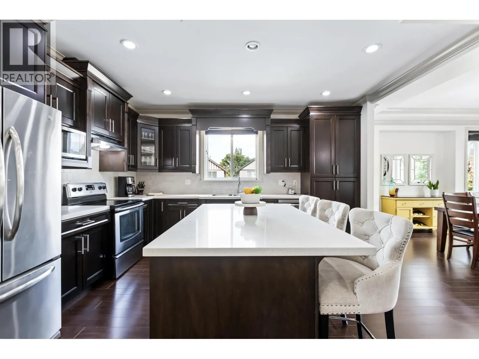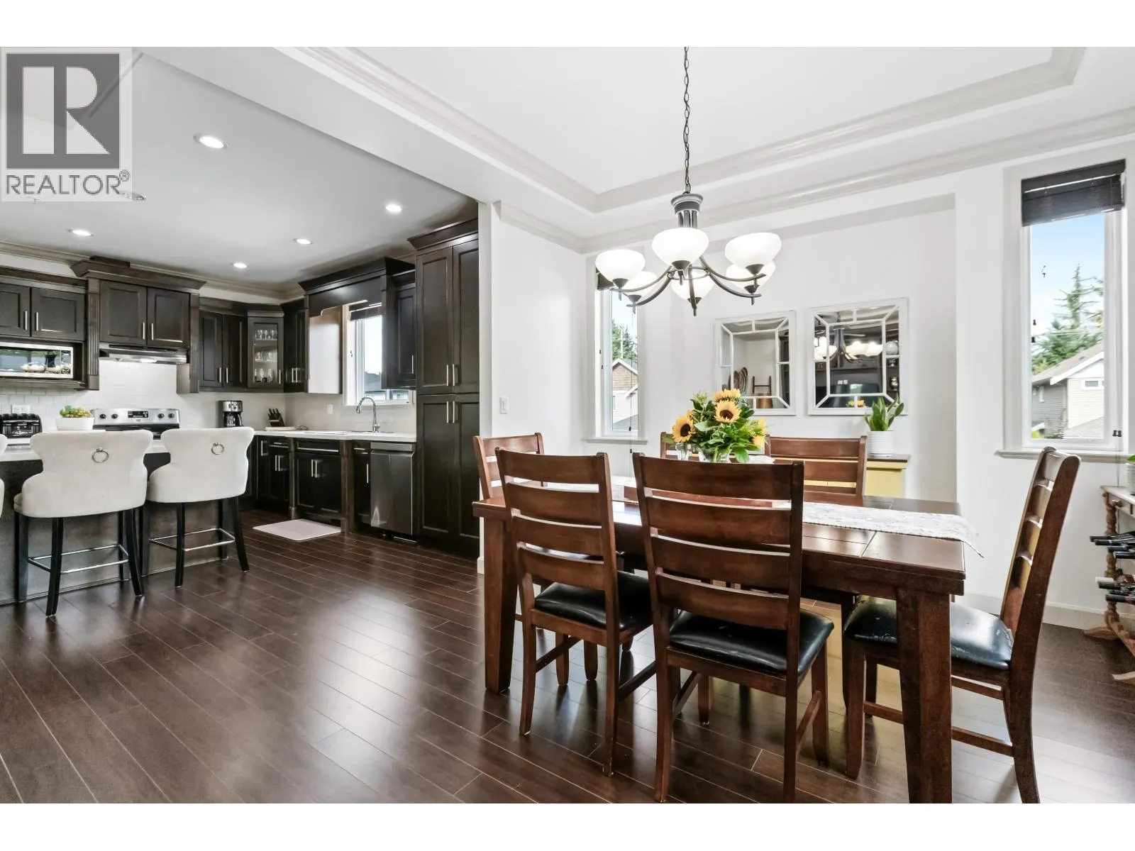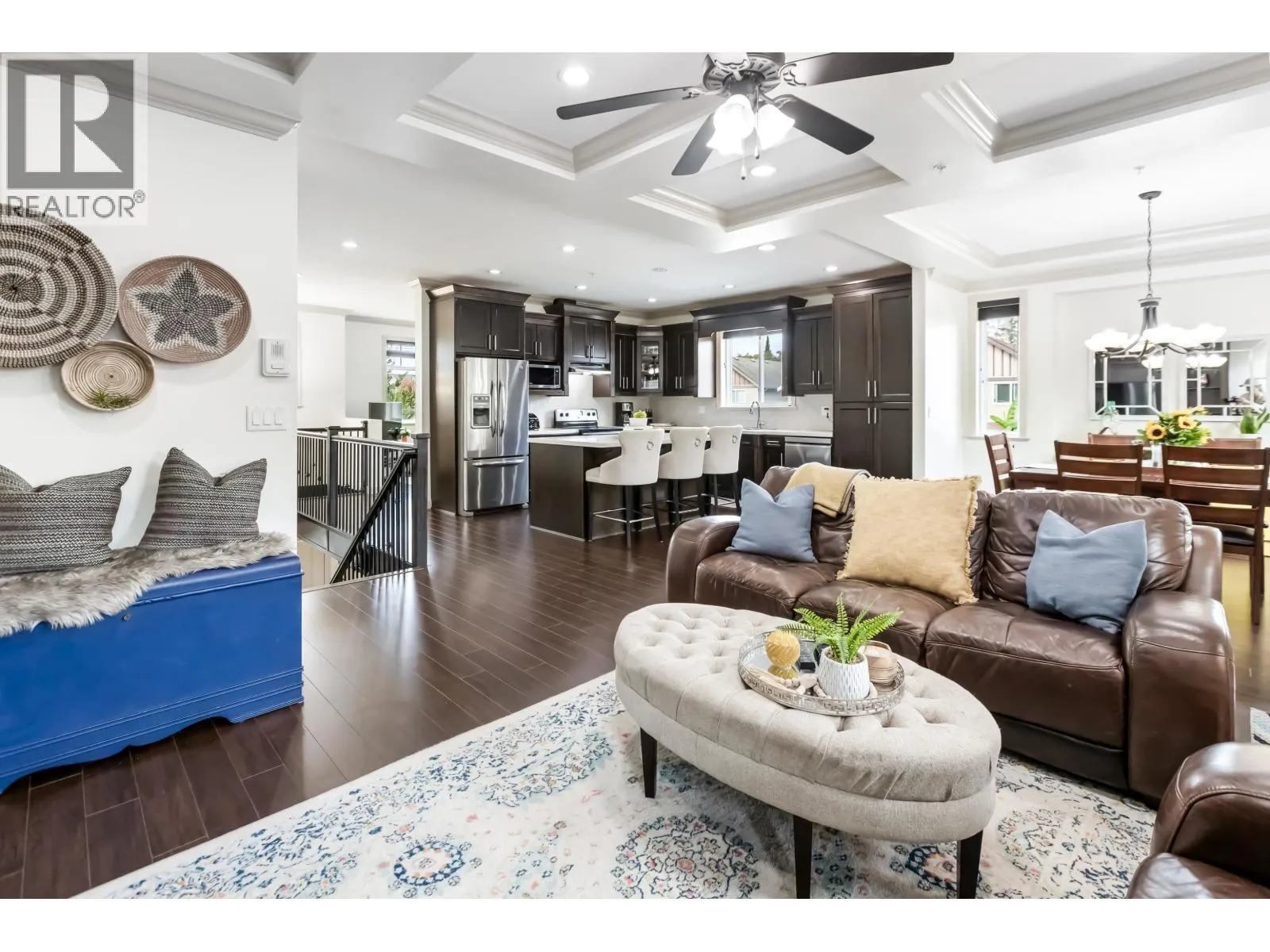This spacious six bedroom & 3.5 bath basement entry home includes a 2-bdrm.in-law accomm. The open main floor boasts a bright open-concept great room with stunning coffered ceiling, a spacious kitchen with abundant of cabinetry, large island, & stainless appliances. A separate living room adds a versatile space for the whole family. Main floor offers 3 bdrms. including a primary with W.I closet & luxurious 5-piece ensuite. The lower level includes an additional bedroom w/2 pc. powder rm + a self-contained 2-bdrm. suite with its own entrance & laundry. Plus A/C thru out. Situated on a corner lot with a fenced yard, patio, and balcony, this home offers plenty of outdoor living space while being close to schools, shopping, & transit. Great family living location! (id:27476)