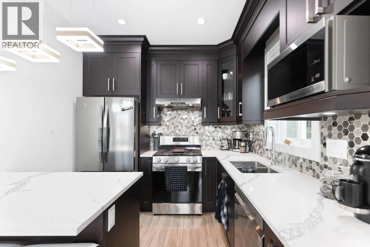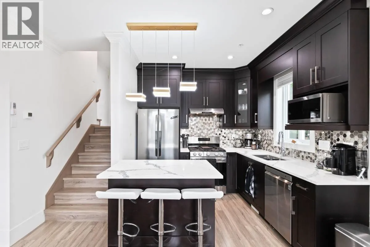 Silver Valley Sanctuary - This bright & modern 4 bdrm, 3.5 bath detached home in Silver Winds offers over 2,000 sqft of stylish living, just steps to Maple Ridge Park, the Alouette River & endless hiking/biking trails. Featuring A/C, a spacious open-concept main floor with laminate floors & cozy gas fireplace & a designer kitchen with quartz counters, oversized island & stainless steel appliances. This home is designed for comfort & function. Upstairs, the private primary suite includes a full ensuite, joined by 2 more generous bdrms. The fully finished bsmt with separate entrance offers a rec room with wet bar, 4th bdrm, bathroom & rough-in for laundry-ideal for extended family or a nanny suite. Enjoy the detached single garage plus side parking, corner location with fenced backyard. (id:27476)