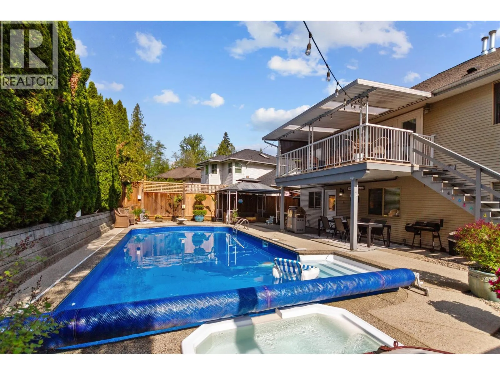 Welcome to your modern family retreat! This beautifully renovated 4-bed, 3-bath home blends contemporary design with everyday comfort. The bright, open main floor is perfect for entertaining, featuring a chef-inspired kitchen with quartz counters, stainless appliances, and a large island that flows seamlessly into the family room. French doors open to your private backyard with a covered patio, gas fire bowl, and year-round hot tub - perfect cozy evenings. Upstairs offers 3 generous bedrooms and two updated baths, while the lower level includes a spacious family room or optional guest/teen space, plus a 1-bed/1-bath suite with separate entry. Across from a peaceful park and close to all amenities- this home is the perfect blend of style, function, and location. $10,000 closing credit - ask your Realtor for details! (id:27476)