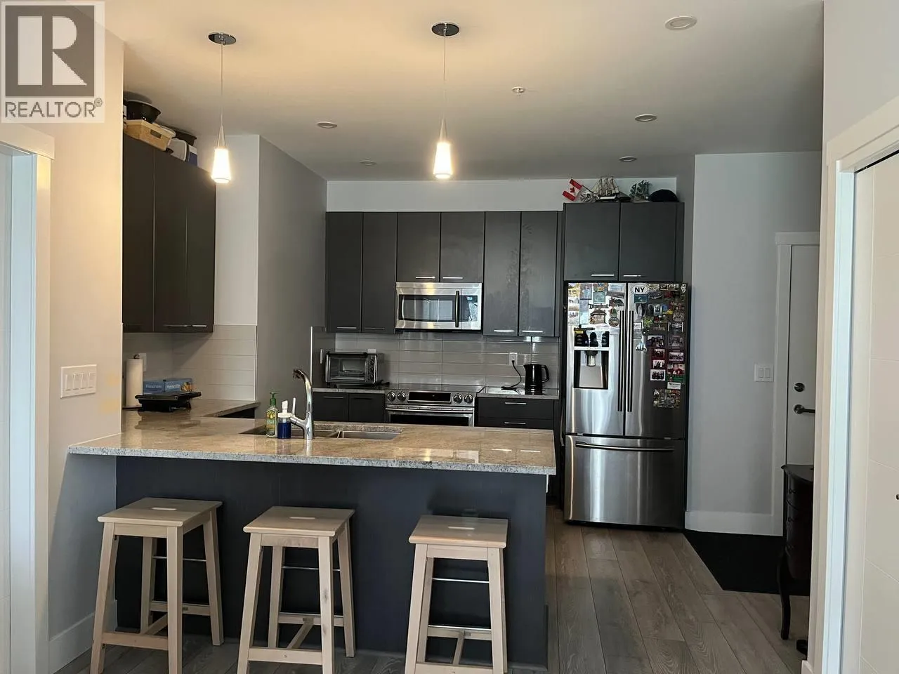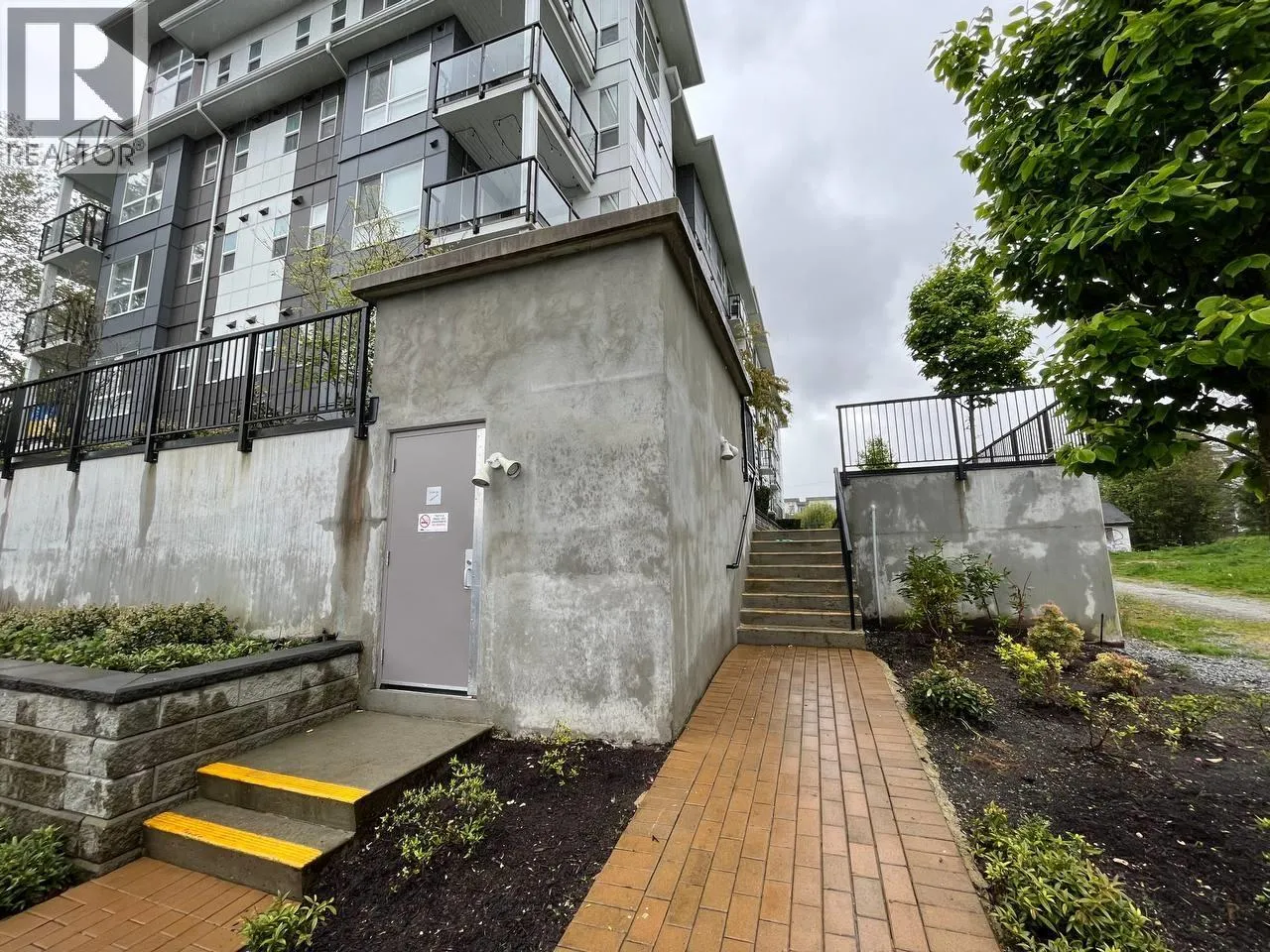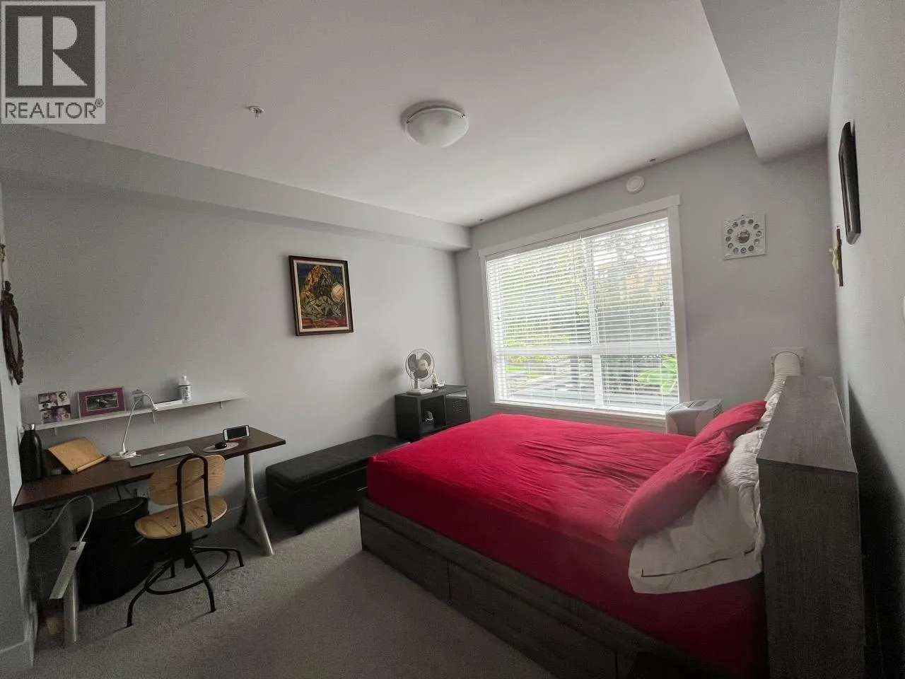 **CORNER UNIT ON THE 1ST FLOOR with private patio** This Unique 2 bed 2 full bath is facing GREENBELT on quiet street. The best layout w/no wasted space: foyer entrance leads in to huge kitchen w S/S appliances, quartz counters & white glossy soft close cabinets -tons of counter & cabinet space. Open concept dining/living w laminate flooring. Completely private patio perfect for summer BBQs. Bdrms on opposite sides for privacy: Spacious master w W/I closet, AIR CONDITIONING & cheater ensuite. 2nd bdrm w its own ensuite bathroom. Centrally located near parks, trails & schools. Short walk to downtown shops, restaurants, transit, community centre & more. TWO PARKING STALLS! RENTAL & PET friendly*** (id:27476)