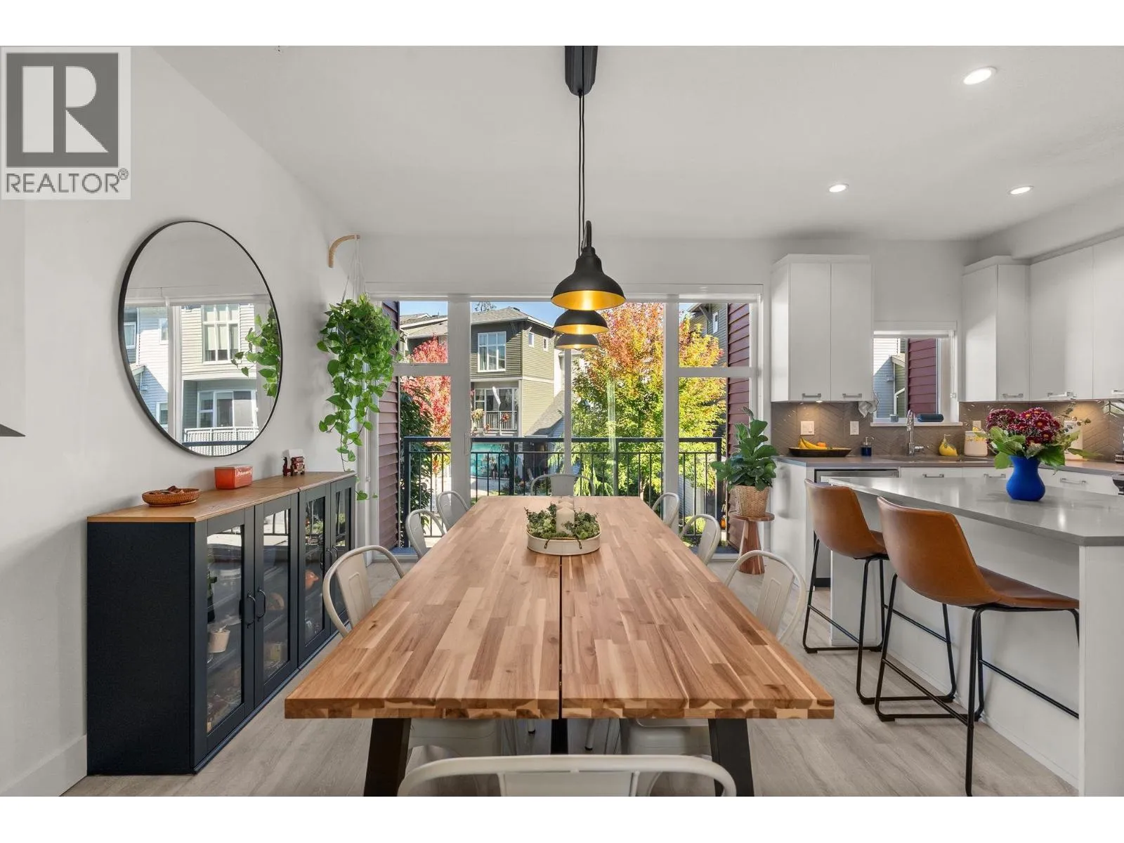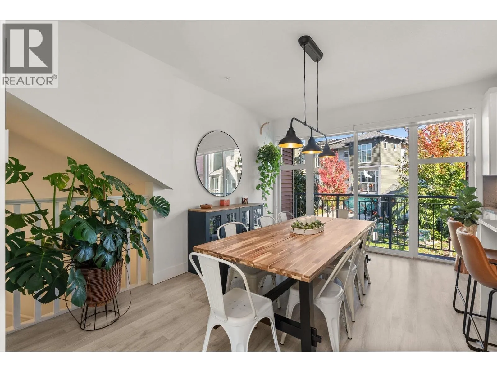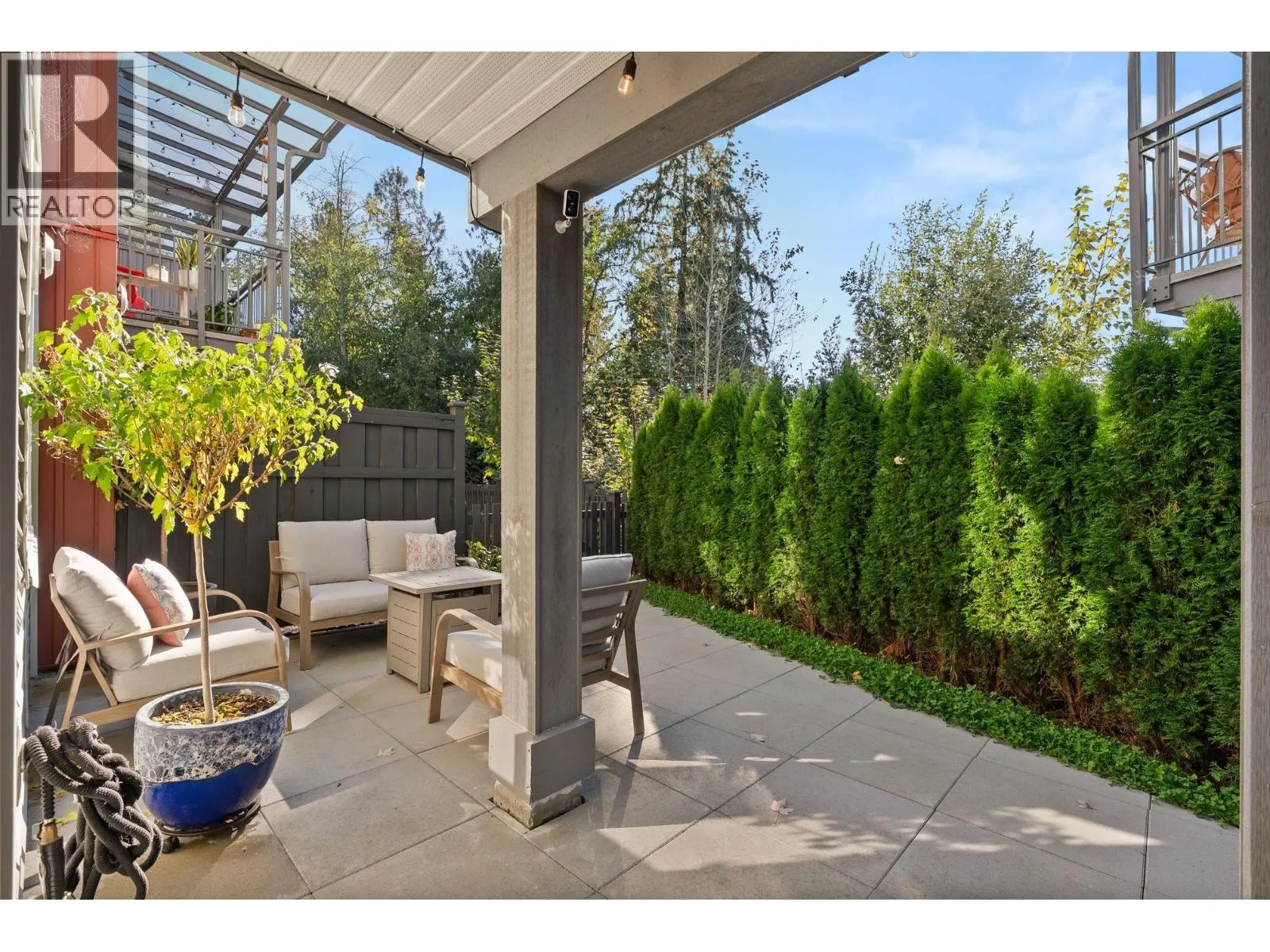 Welcome to Creekside, Maple Ridge - a family-friendly community surrounded by green belt & trails. This bright corner-unit townhome (1,725 sq ft) has perfect orientation allowing light to flood the house all year long. Enjoy exceptional space & privacy with a private backyard, covered porch & 2 upper balconies overlooking green space. Main floor features separated living & kitchen areas. Versatile basement bedroom with full bath & separate entrance - ideal for extended family, teens, or home office. Side-by-side 2-car garage.Immaculately maintained with updated flooring, screens & beautiful backyard upgrades. Move-in ready, quick poss possible! (id:27476)