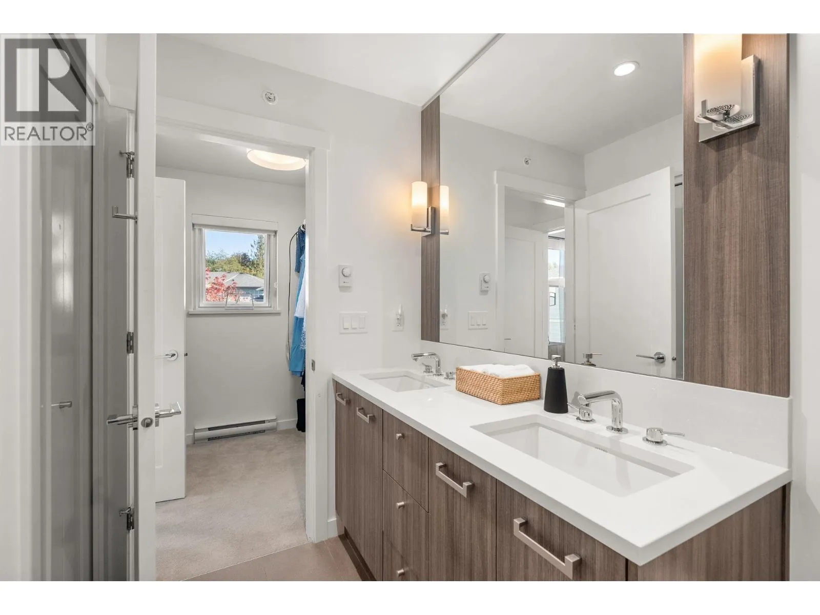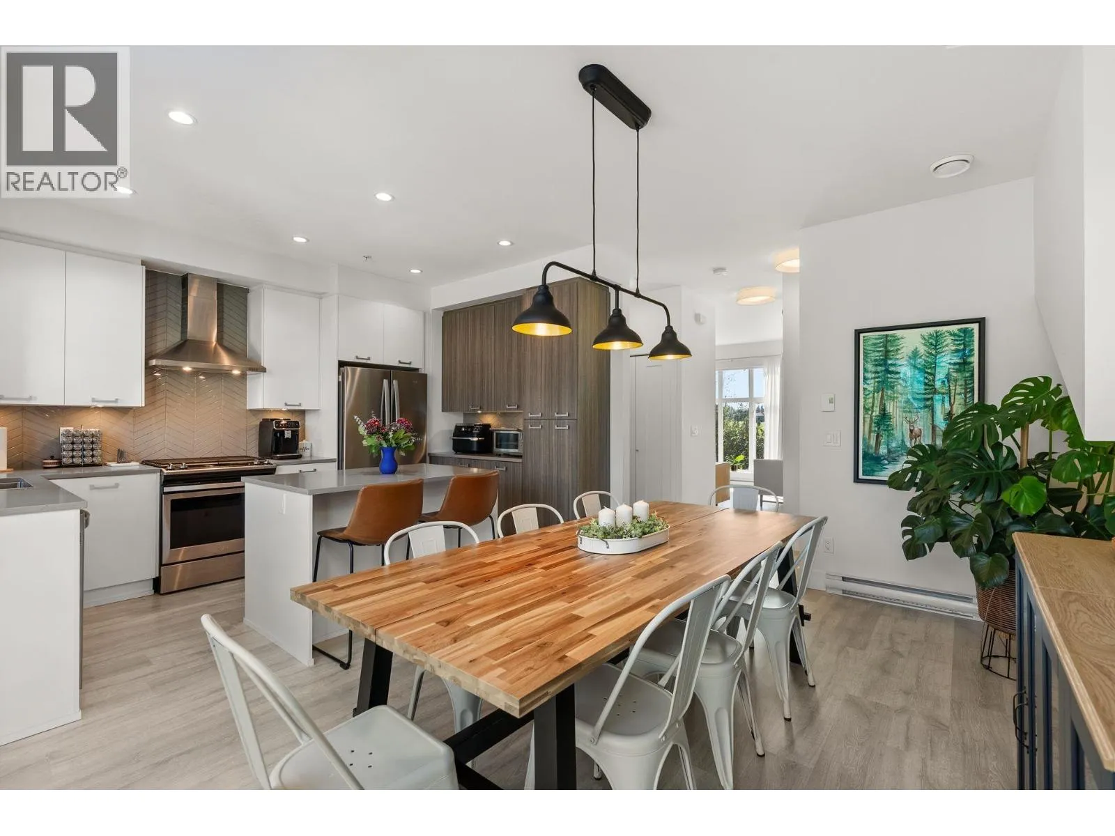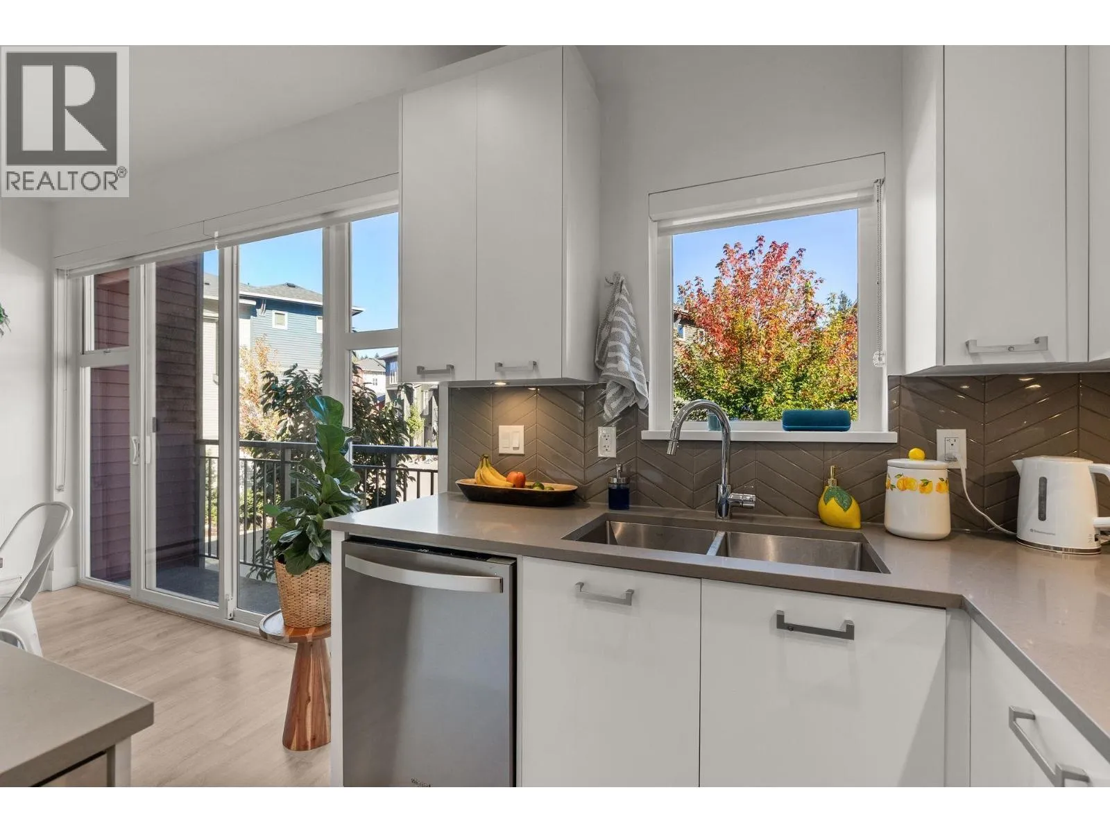 Welcome to Creekside, Maple Ridge - a family-friendly community surrounded by green belt & trails. This bright corner-unit townhome (1,725 sq ft) has perfect orientation allowing light to flood the house all year long. Enjoy exceptional space & privacy with a private backyard, covered porch & 2 upper balconies overlooking green space. Main floor features separated living & kitchen areas. Versatile basement bedroom with full bath & separate entrance - ideal for extended family, teens, or home office. Side-by-side 2-car garage.Immaculately maintained with updated flooring, screens & beautiful backyard upgrades. Move-in ready, quick poss possible! (id:27476)