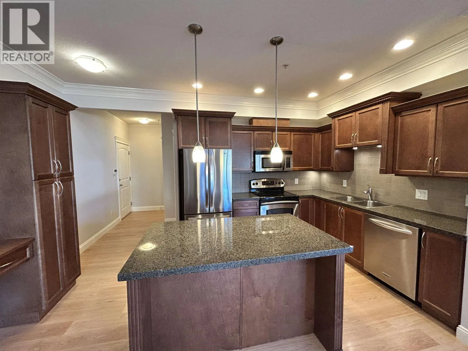 Welcome to Falcon Manor - where comfort meets lifestyle! This stunning corner home offers over 1,100 sq. ft. of bright, open living with northwest exposure on the quiet courtyard side. Enjoy 2 spacious bedrooms, 2 full bathrooms, and a modern open layout with a center kitchen island, ideal for gathering with family and friends. Sunlight fills every corner, creating a warm, inviting vibe. Includes 1 parking stall and a huge storage locker. Walk to Gratia Bakery & cafe, restaurants like La Trattoria, Haney Place Mall, the ACT Arts Centre, and Leisure Centre. The perfect place to unwind, entertain, and call home before the holidays! (id:27476)