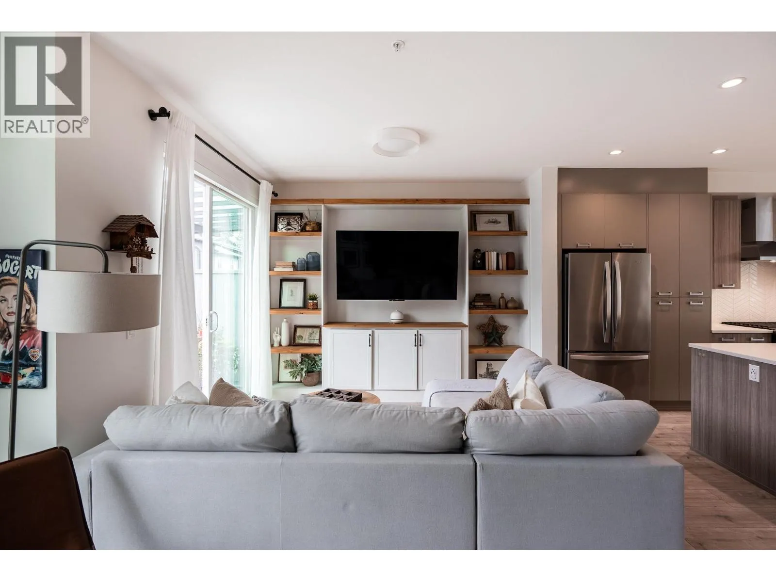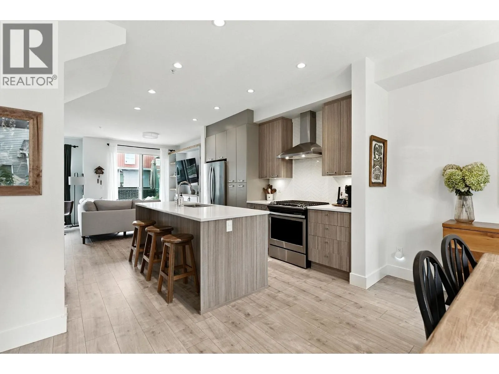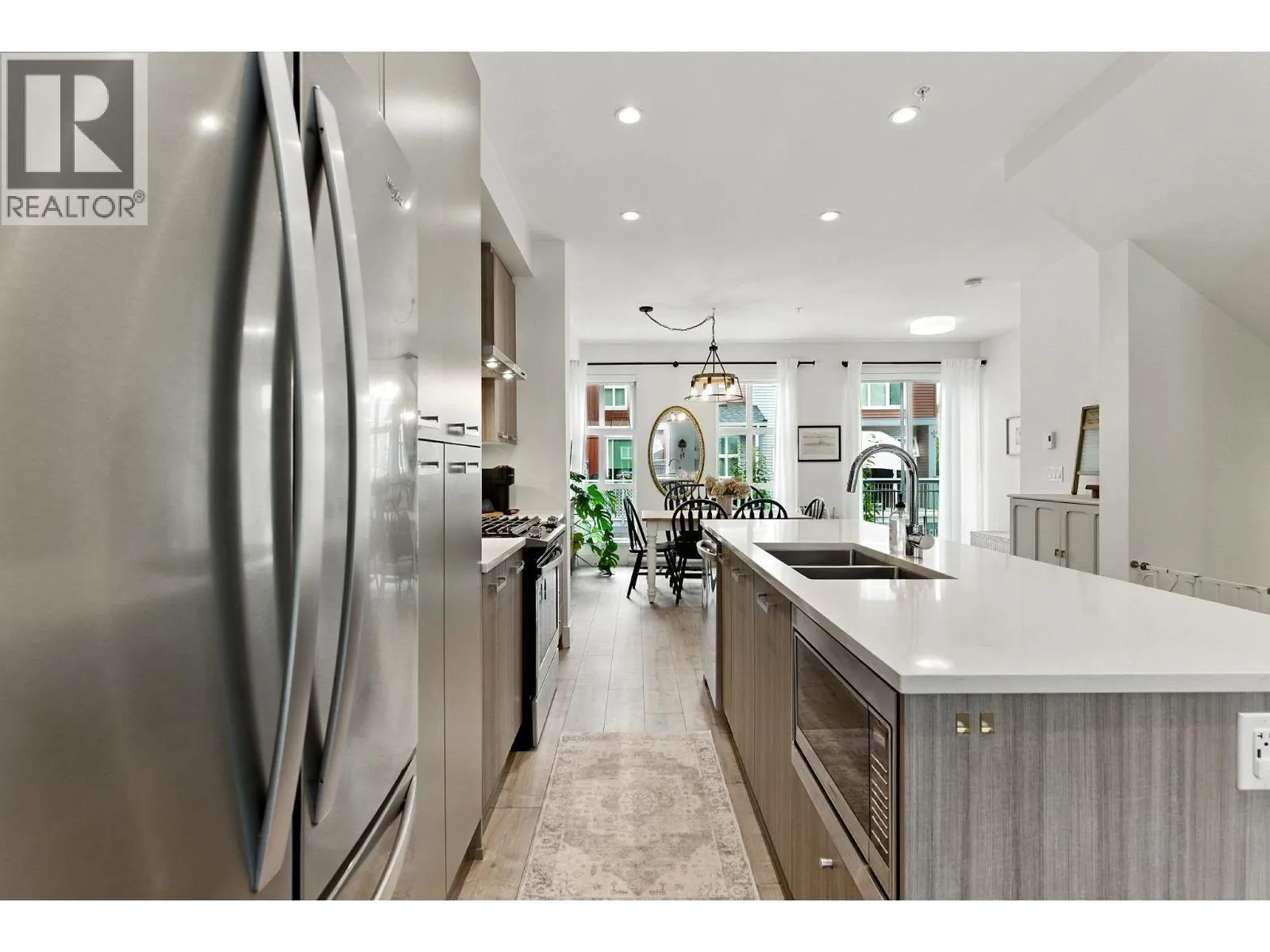 Welcome to your home at Creekside! This beautifully finished 3 bedroom, 3 bathroom townhome offers 1,432 sqft of bright and functional living space. The open main floor features 9-foot ceilings, a spacious living and dining area, a gourmet kitchen with quartz countertops, a spacious island, stainless steel appliances, and ample storage. Thoughtful custom millwork provides style and functionality and gives this home a unique touch. Upstairs you'll find 3 generous bedrooms, including a primary suite with walk-in closet and ensuite. Enjoy a private outdoor space, perfect for relaxing or entertaining, plus the convenience of an attached garage. Nestled beside Siegel Creek, this sought-after community combines natural surroundings with close proximity to schools, shopping, parks, and transit. (id:27476)
