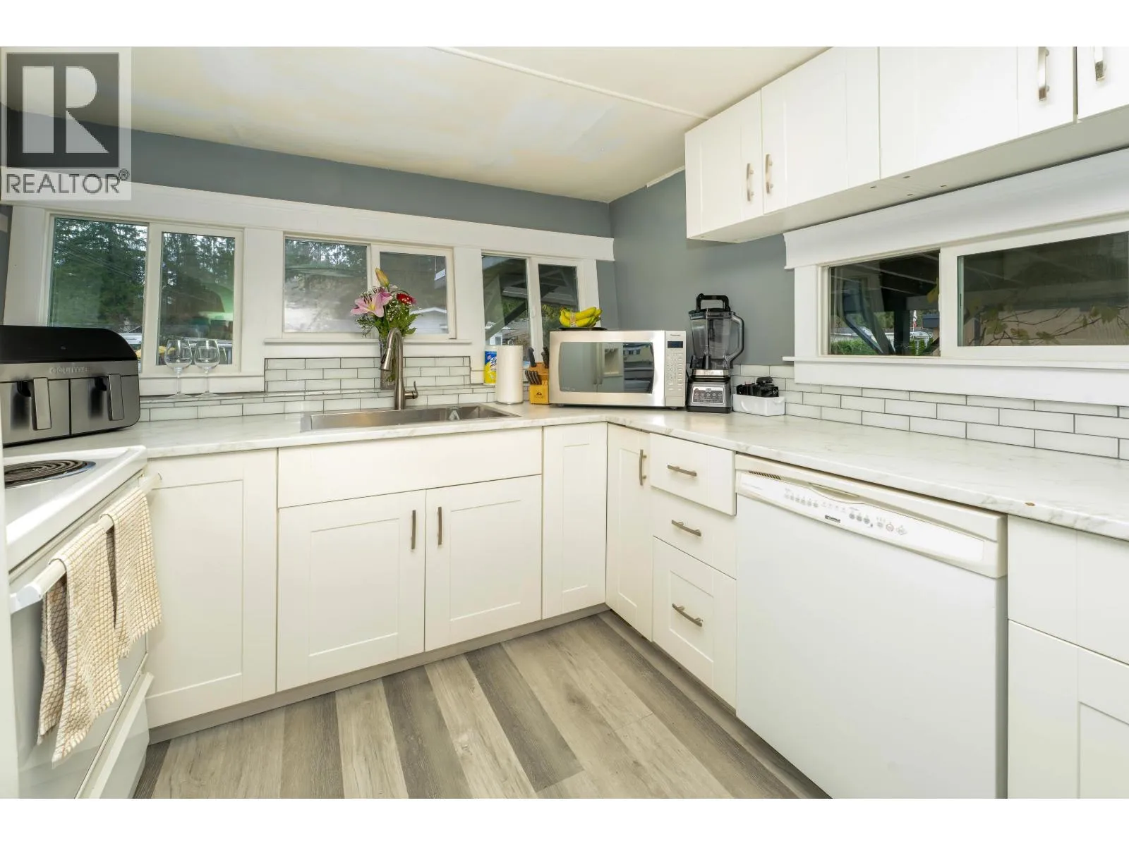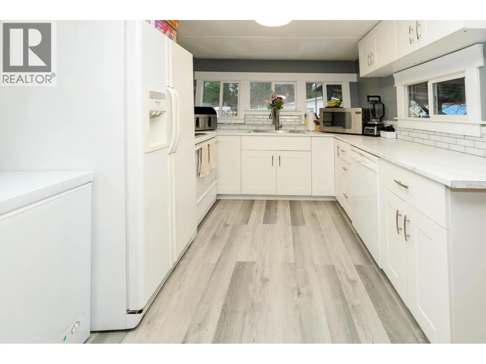 Nicely updated modular home backing onto a peaceful park! This 2-bedroom, 1-bath offers over 930 sqft of comfortable living space. Bright and inviting, it features an updated kitchen, refreshed bathroom, in-suite laundry, and plenty of storage. The large fenced yard is perfect for pets or gardening, complete with a freshly stained covered deck for year-round enjoyment. Additional perks include covered parking plus an extra parking spot. Ideally located within walking distance to transit, schools, trails, and parks. A fantastic opportunity for first-time buyers or those looking to downsize in a serene, well-connected neighborhood! (id:27476)