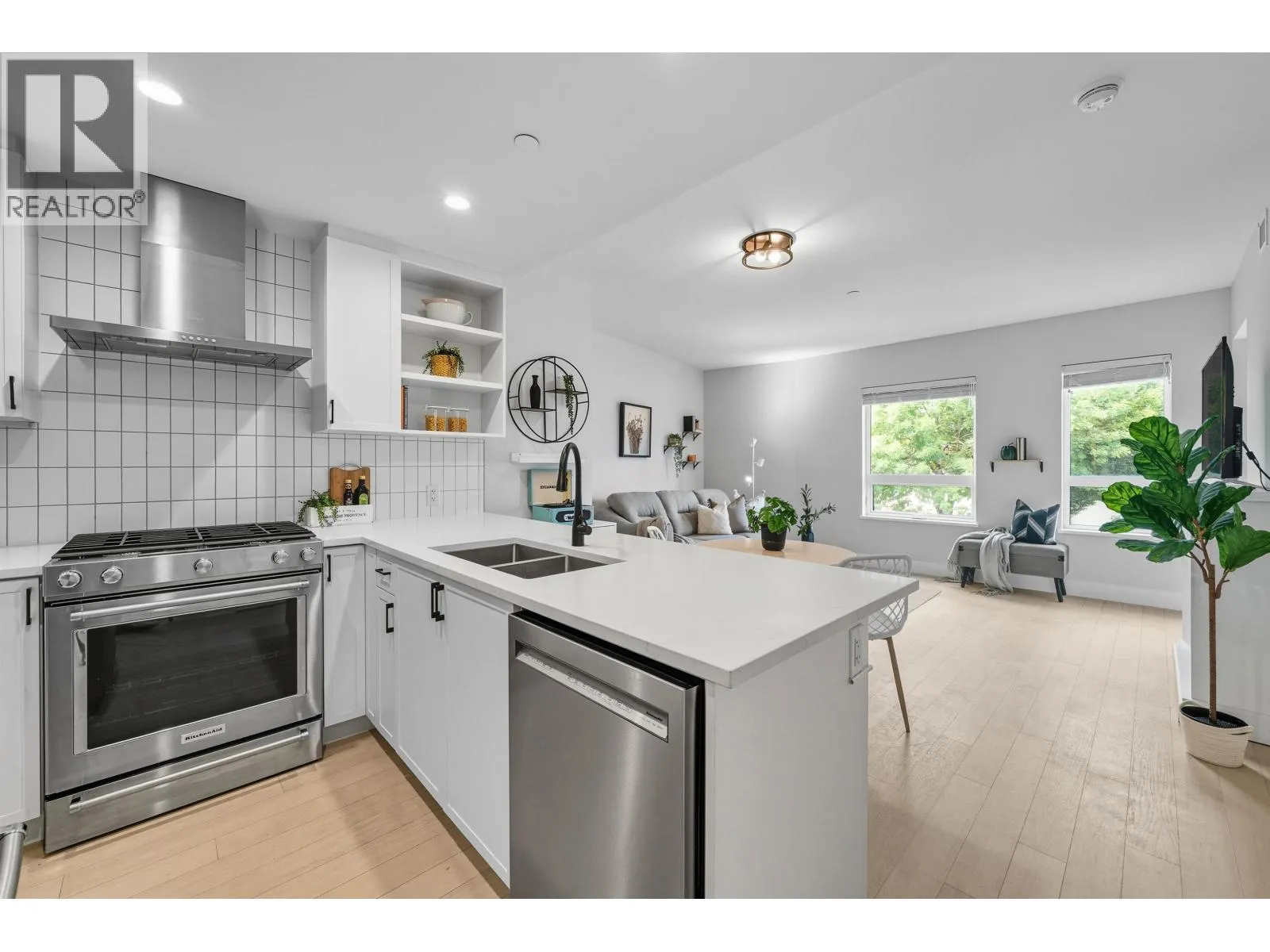 Experience modern urban living in this bright and spacious 1-bedroom + den home, offering 655 sq.ft. of thoughtfully designed interior space in the heart of Maple Ridge. Features wide-plank engineered hardwood floors, large windows, and a modern kitchen with full-size KitchenAid appliances, quartz countertops, and a breakfast bar. Stay comfortable year-round with AC and heating via an energy-efficient heat pump. Includes 1 parking stall and 1 storage locker. Pet-friendly building with premium amenities: Rooftop garden and kitchen/lounge for entertaining, a fully-equipped gym, landscaped courtyard, and kids play area. Steps from cafés, shops, parks, and Maple Ridge Leisure Centre. (id:27476)