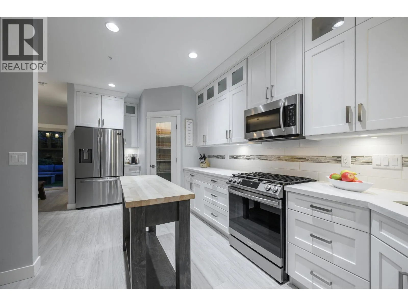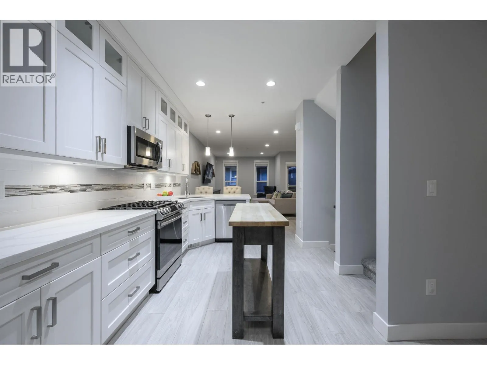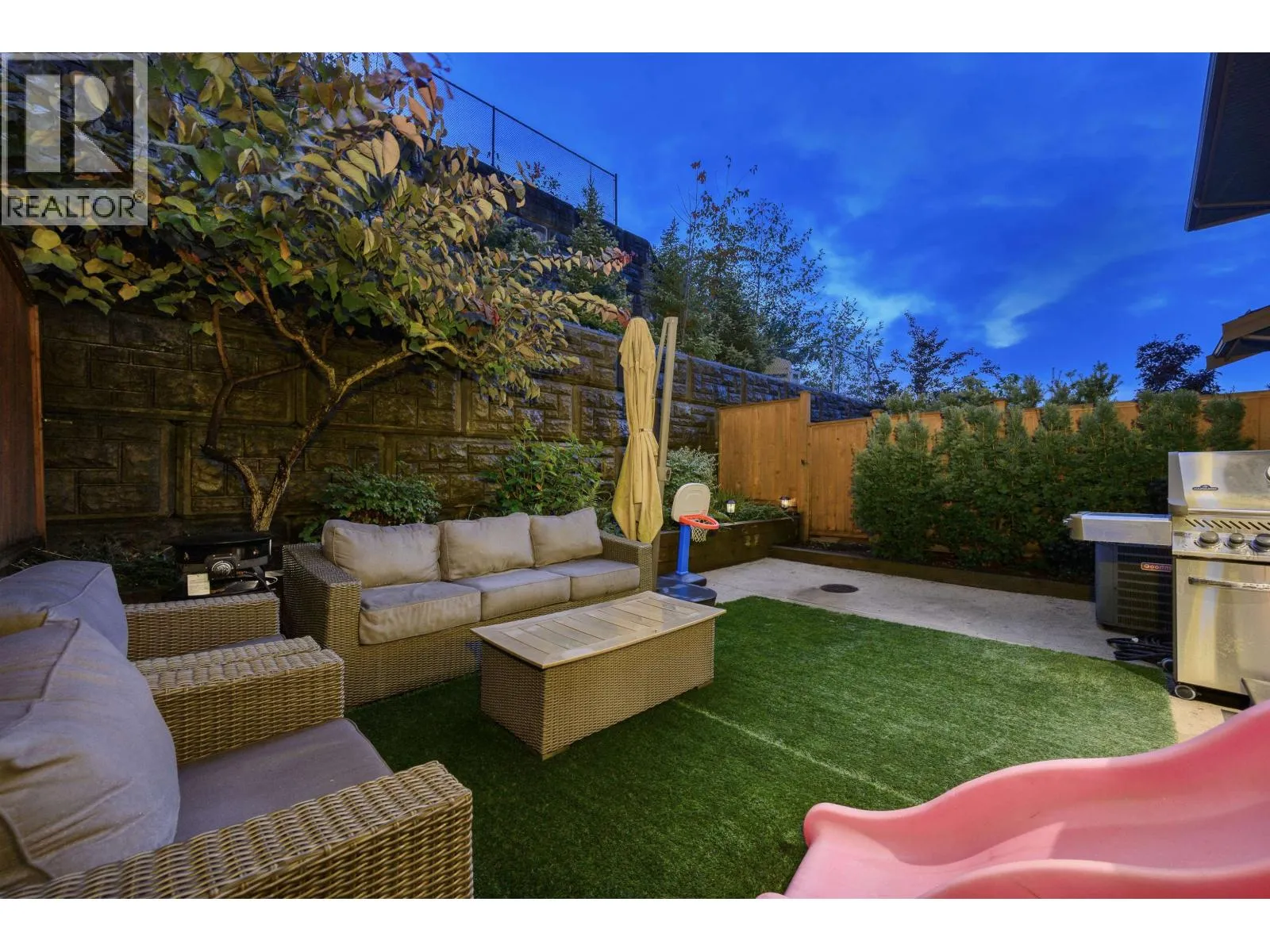 Welcome to one of the BEST locations in The Terraces II. This bright corner unit showcases incredible Golden Ears mountain views from both the living room and the primary bedroom. Off the dining area featuring a built-in bar, step directly out to your private backyard, backing onto peaceful green space with a deck and BBQ hookup. The kitchen offers quartz countertops, stainless steel appliances, a gas stove and a large walk-in pantry. Upstairs, all bedrooms are generously sized; the primary bedroom includes a walk-in closet and ensuite. The lower level features a versatile bedroom with full bath, ideal for guests, an office or media room. Bonus: air conditioning. Close to parks, trails and schools. (id:27476)