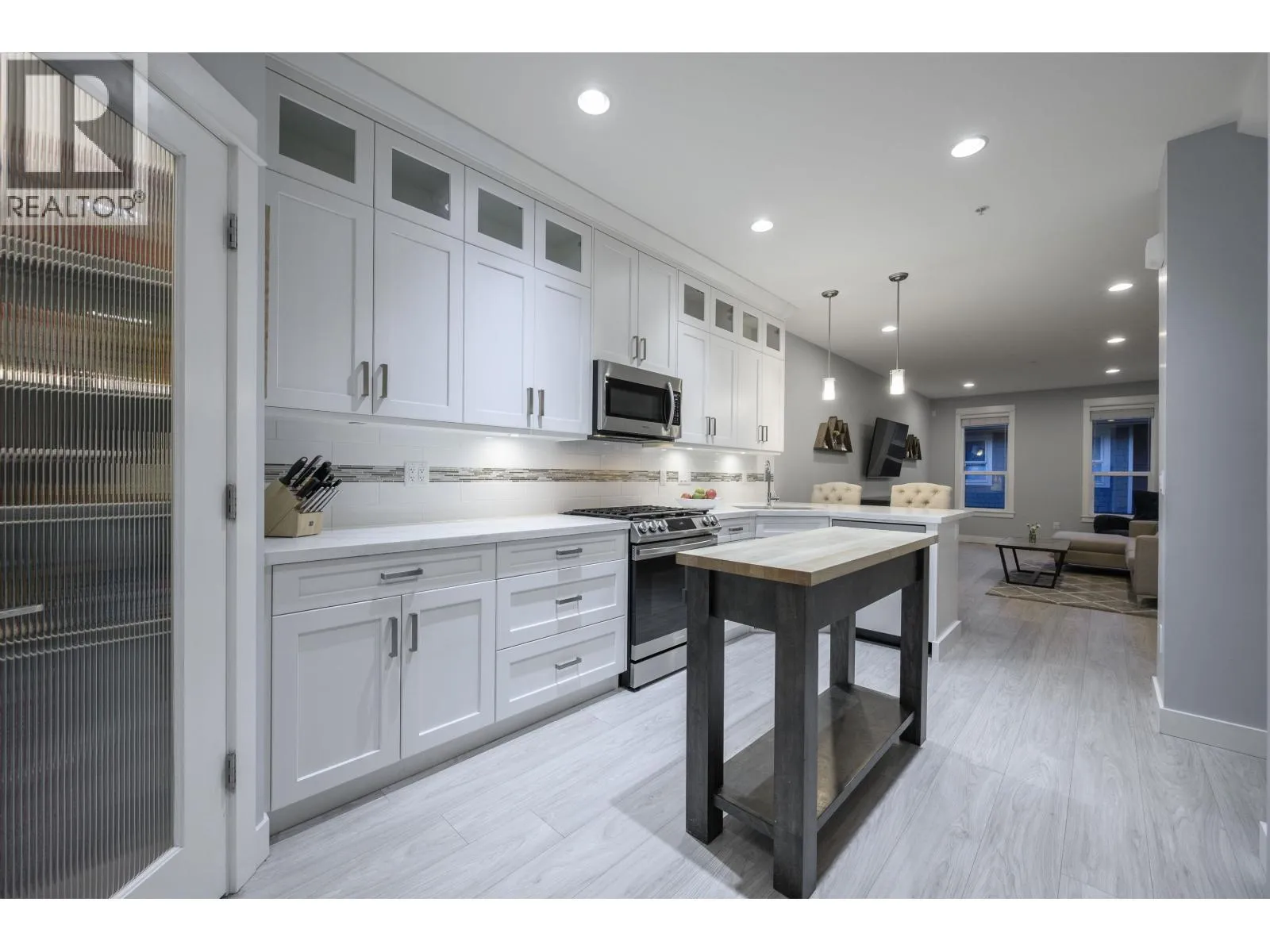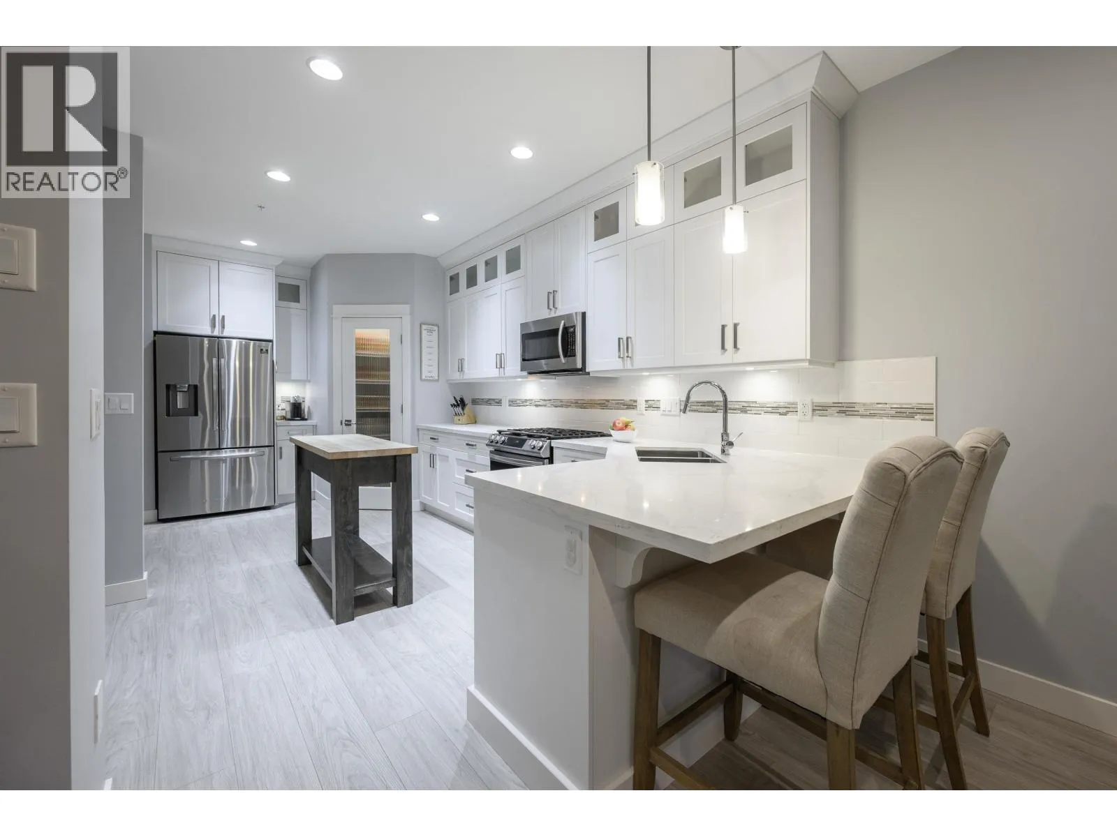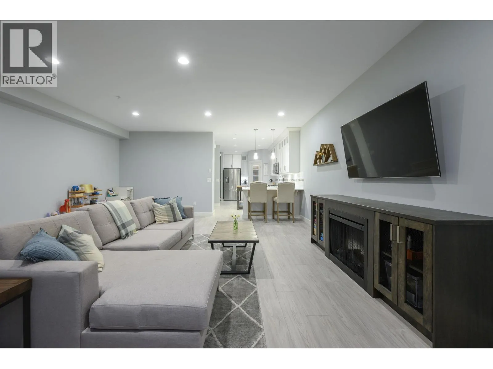 Welcome to one of the BEST locations in The Terraces II. This bright corner unit showcases incredible Golden Ears mountain views from both the living room and the primary bedroom. Off the dining area featuring a built-in bar, step directly out to your private backyard, backing onto peaceful green space with a deck and BBQ hookup. The kitchen offers quartz countertops, stainless steel appliances, a gas stove and a large walk-in pantry. Upstairs, all bedrooms are generously sized; the primary bedroom includes a walk-in closet and ensuite. The lower level features a versatile bedroom with full bath, ideal for guests, an office or media room. Bonus: air conditioning. Close to parks, trails and schools. (id:27476)